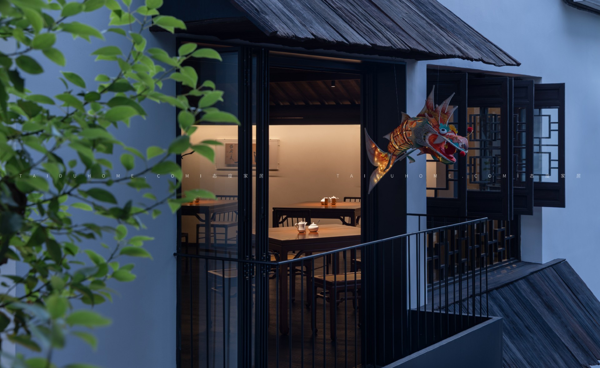 白墙黑瓦,木花窗,没有华丽的装饰,只有最质朴的原木温润。推窗而望,纸龙悬窗与石板街景交相辉映,仿佛时光倒流。坐下来,品尝一碗面,感受时光流转,回味这座城市的千年文化。