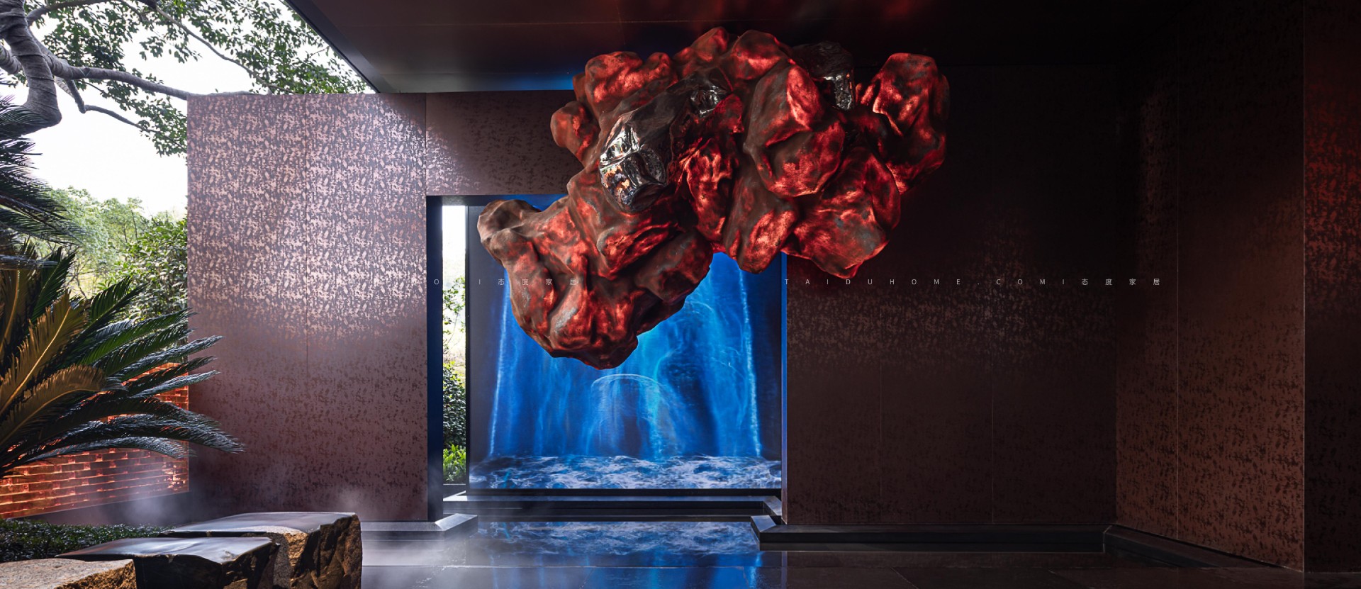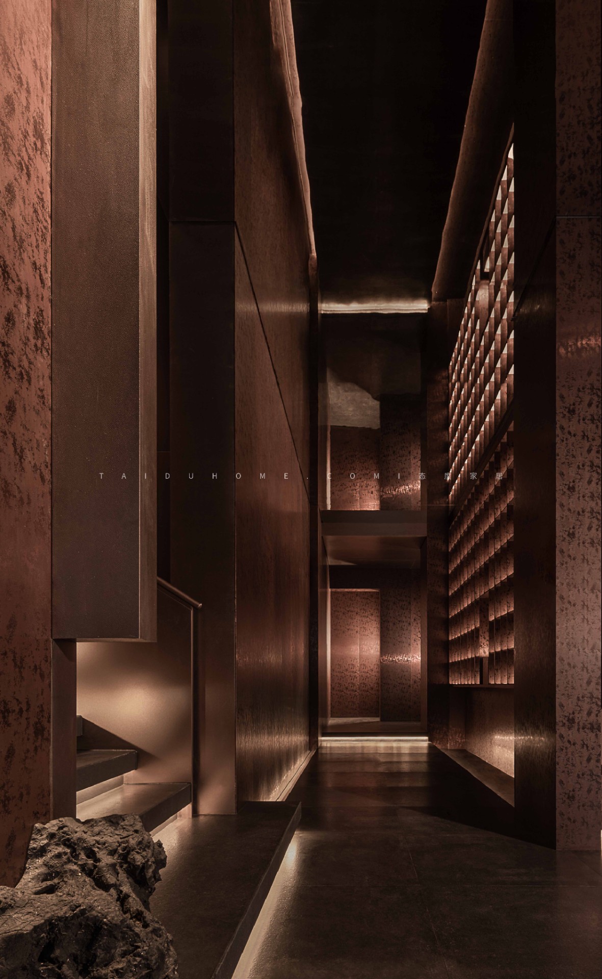 借他山之石,构建空间叙事。郴州,山水画卷之城,亦是有色矿之都。设计以这片土地的地貌与矿脉为起点,从矿石之形、丹霞之质与山体之势中汲取灵感,将自然山水转译为空间叙事的结构语言。