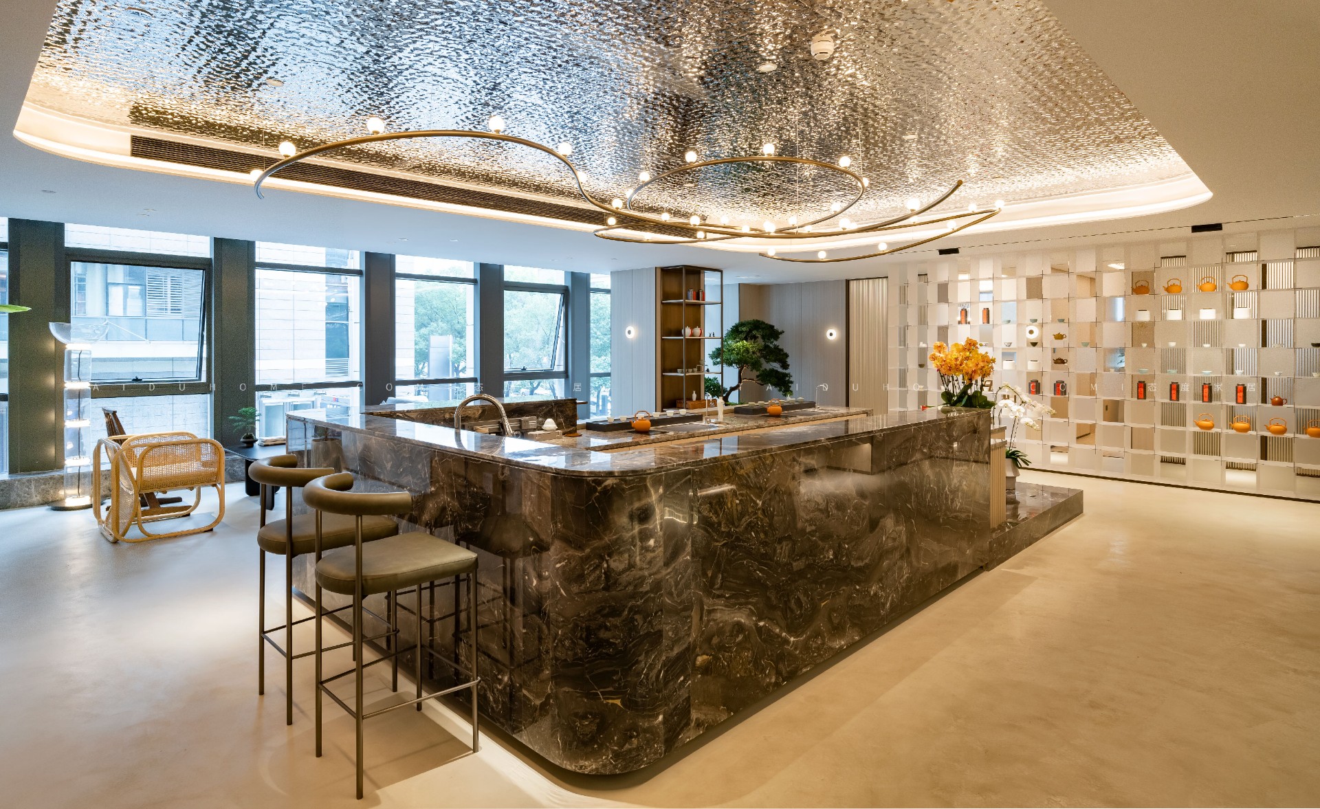 If you want to choose the space that best interprets the philosophy of Eastern culture, the tea room must not give up. Drinking tea is a Chinese philosophy of life, and the place that carries this activity is also endowed with cultural significance and spiritual value beyond its function. Ailike has built tea spaces into its office environment, allowing users to experience space and time in both work and leisure, and explore traditional cultural expressions in contemporary contexts.