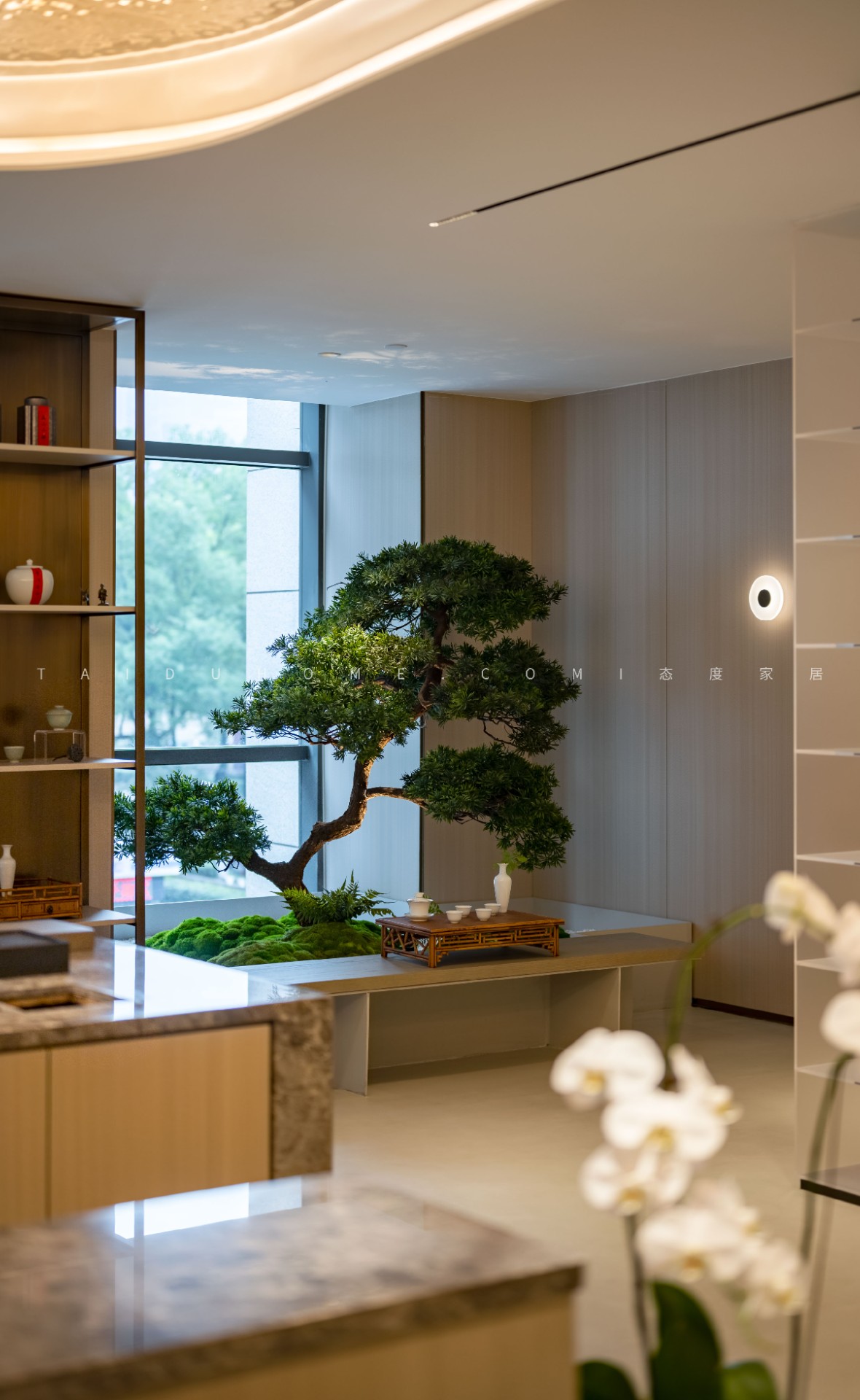 美的建筑是隐于自然之中的,为了在办公环境中也能感受到舒适自如,我们尝试把建筑与自然景观装进室内空间,从空间体验和精神意义双重层面上建立人与空间的自然关系。
