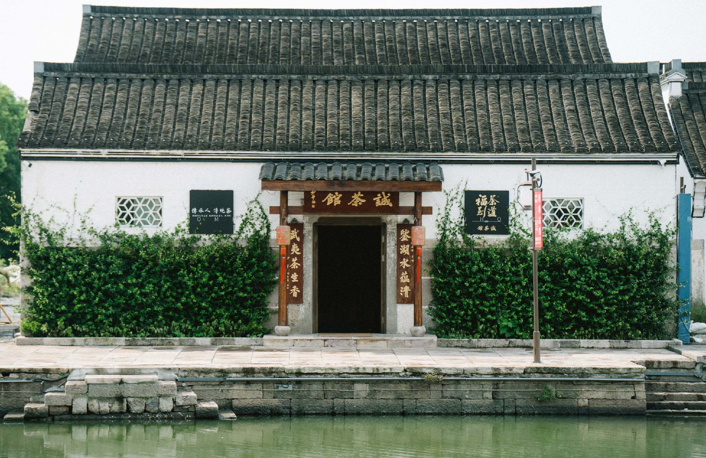 诚茶馆位于浙江绍兴柯桥古镇。一条小河贯穿东西,南北侧形成了沿河的自然建筑。大片的河景让整个区域沉浸在随四季变化的景致中。柯桥历史的见证者,典型的江南水乡风光,这将成为珍贵的历史照片。