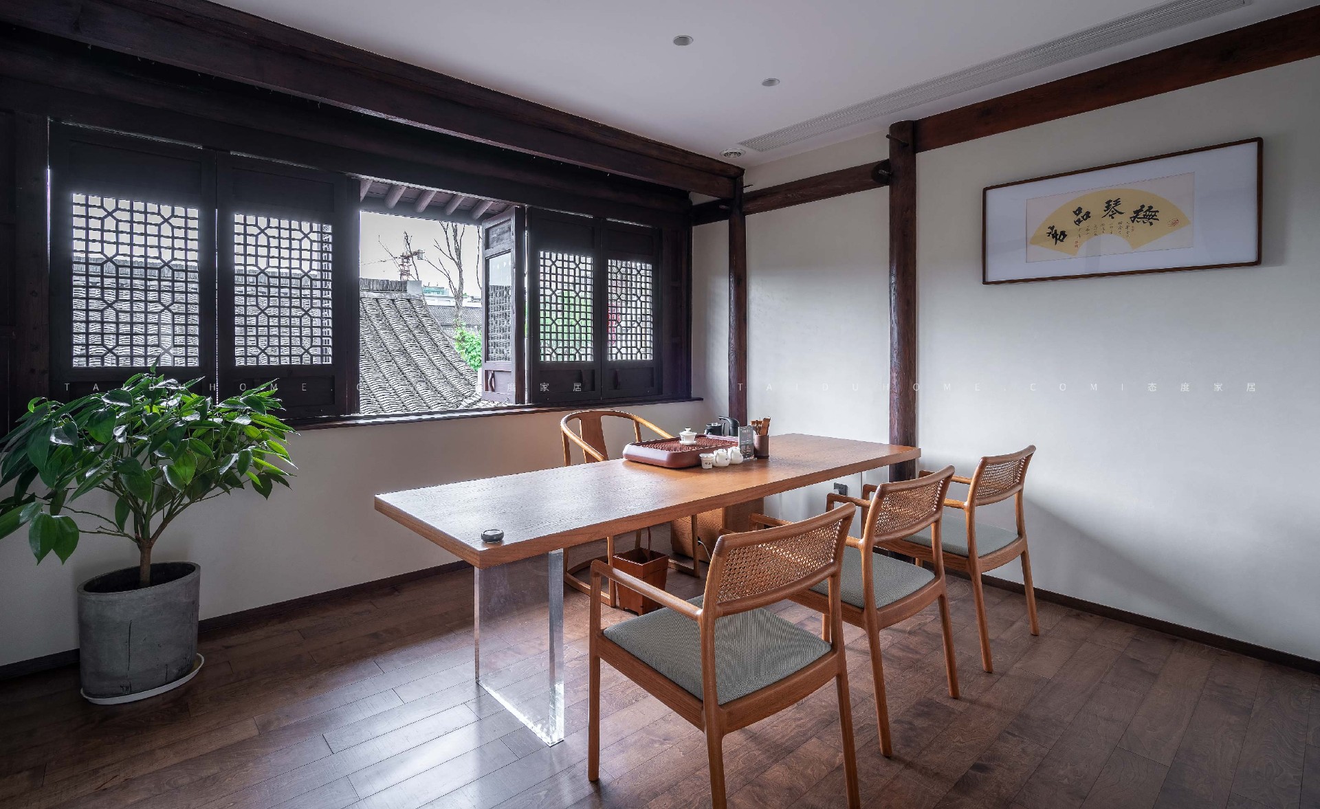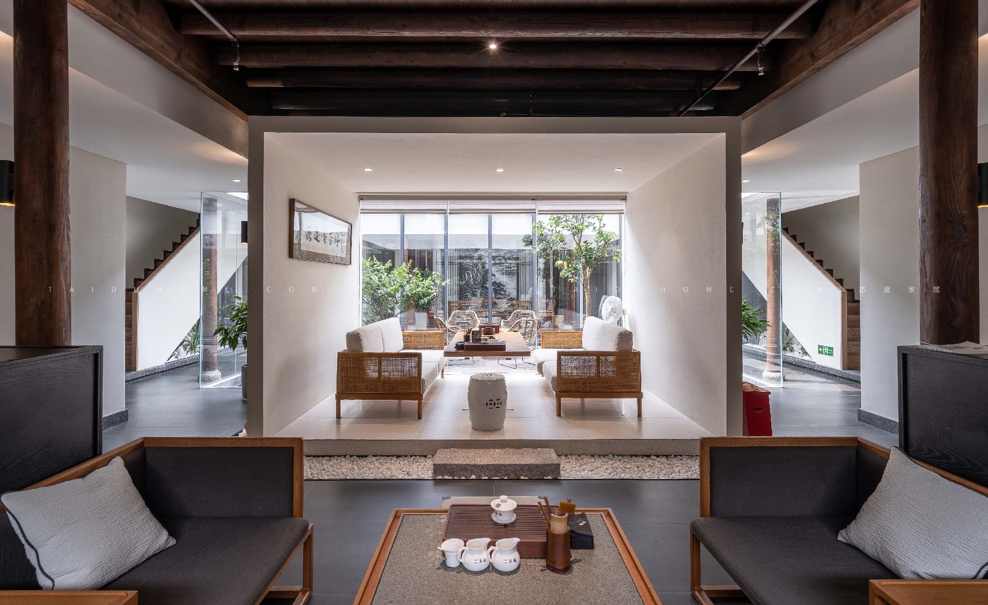 By creating a natural atmosphere through design, applying architectural design techniques to the interior, emphasizing the presentation of details, and using the most primitive material wood from the ancient town as the main texture of the building, the sense of scale of the building space is enhanced. The belief in rooting trees and coexisting with nature. With this philosophy, Cheng Tea House upholds tradition, looks back on thousands of years, and incorporates traditional tea culture in a natural way.