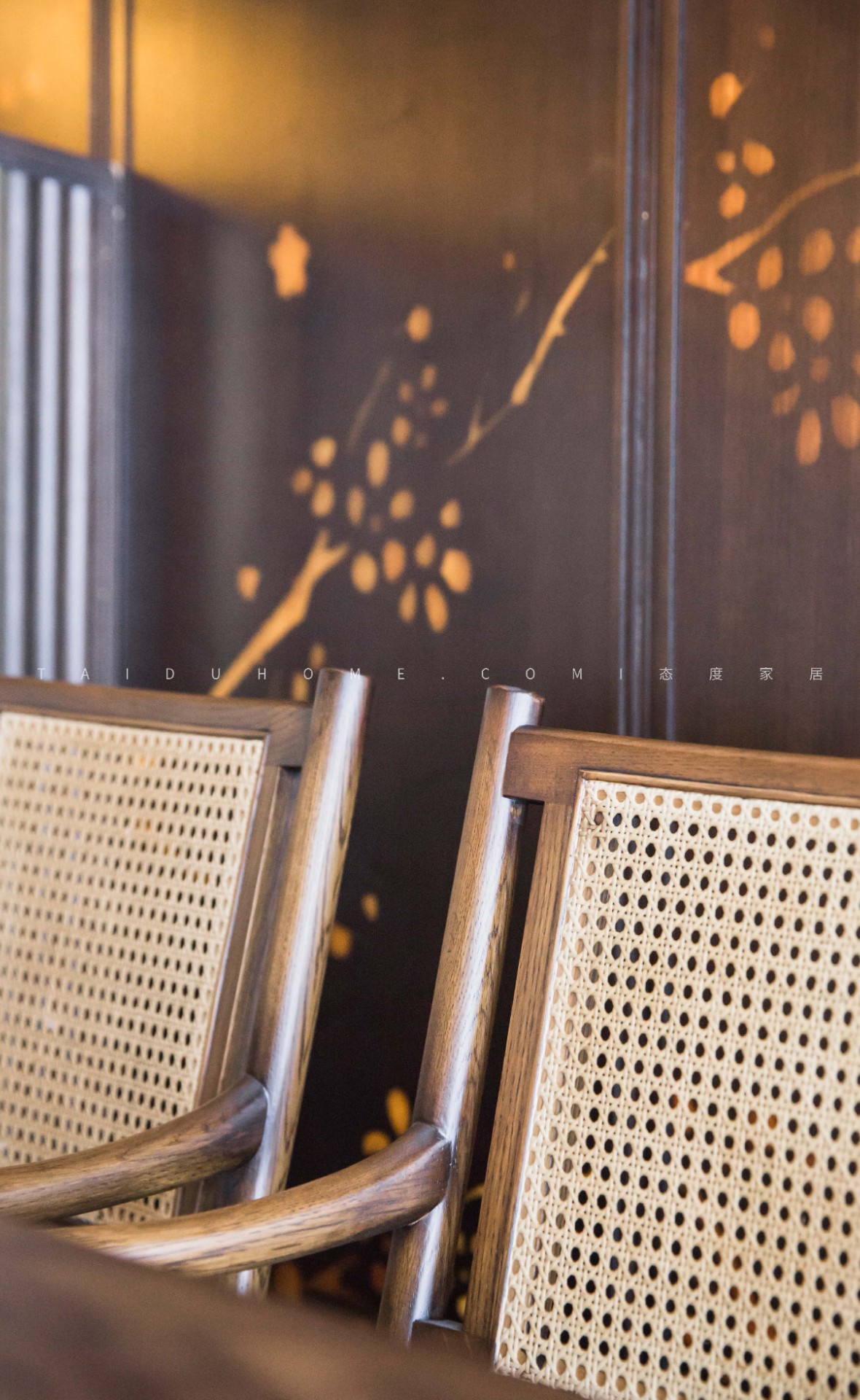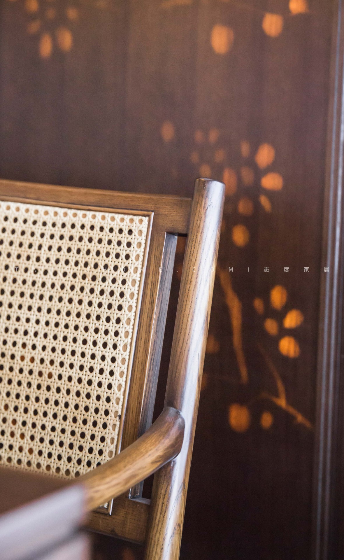 In order to make the intention of Jiangnan water town more vivid. Attitude Home has chosen materials gifted by nature to add color to the space. Furniture materials such as black walnut and rattan back are chosen, and the design is simple and smooth, without branches or vines, simple and round.