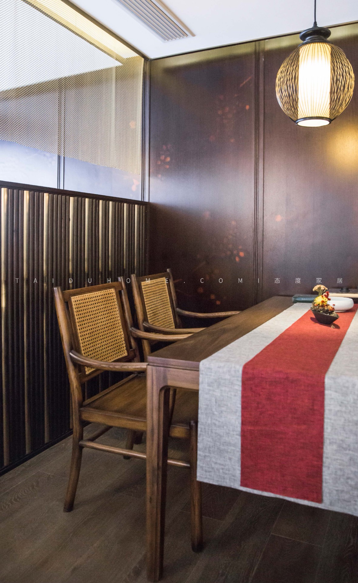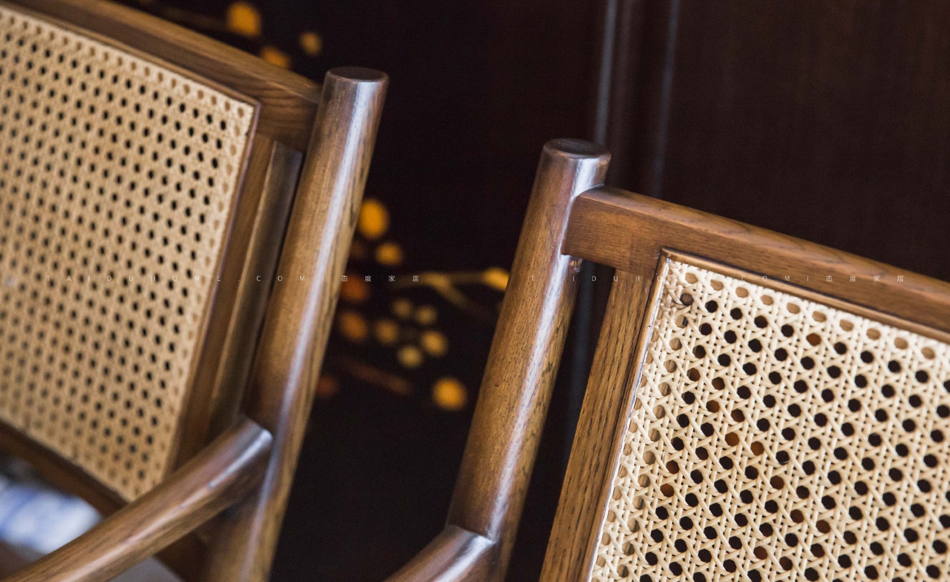 为了让江南水乡的意向更为生动。态度家居选择了来自大自然馈赠的材质来给空间增色,家具材质选择黑胡桃木、藤编背面等,造型上则简洁流畅,不枝不蔓,朴直圆通。