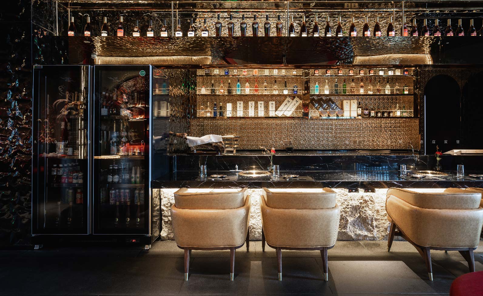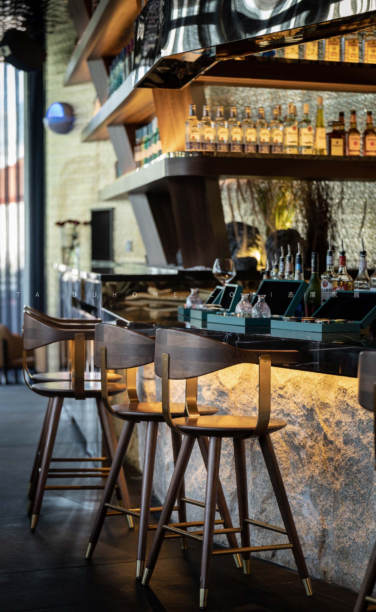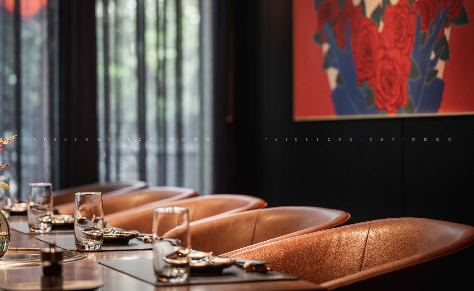 The combination of diverse spaces, the private rooms surround the gathering wine guests with neon sounds, and the decorative pleated metal carried by the top device also fills the regional space with a dreamy atmosphere. The circular sofa gives a comfortable wrapping feeling, and the dark brown leather art, combined with the overall color tone and artistic hanging paintings, creates a retro and modern style.