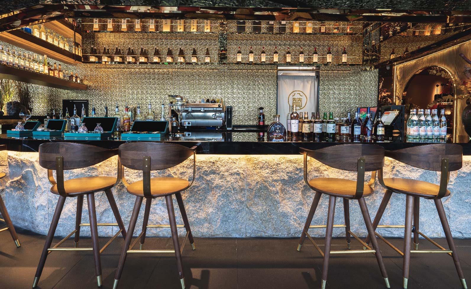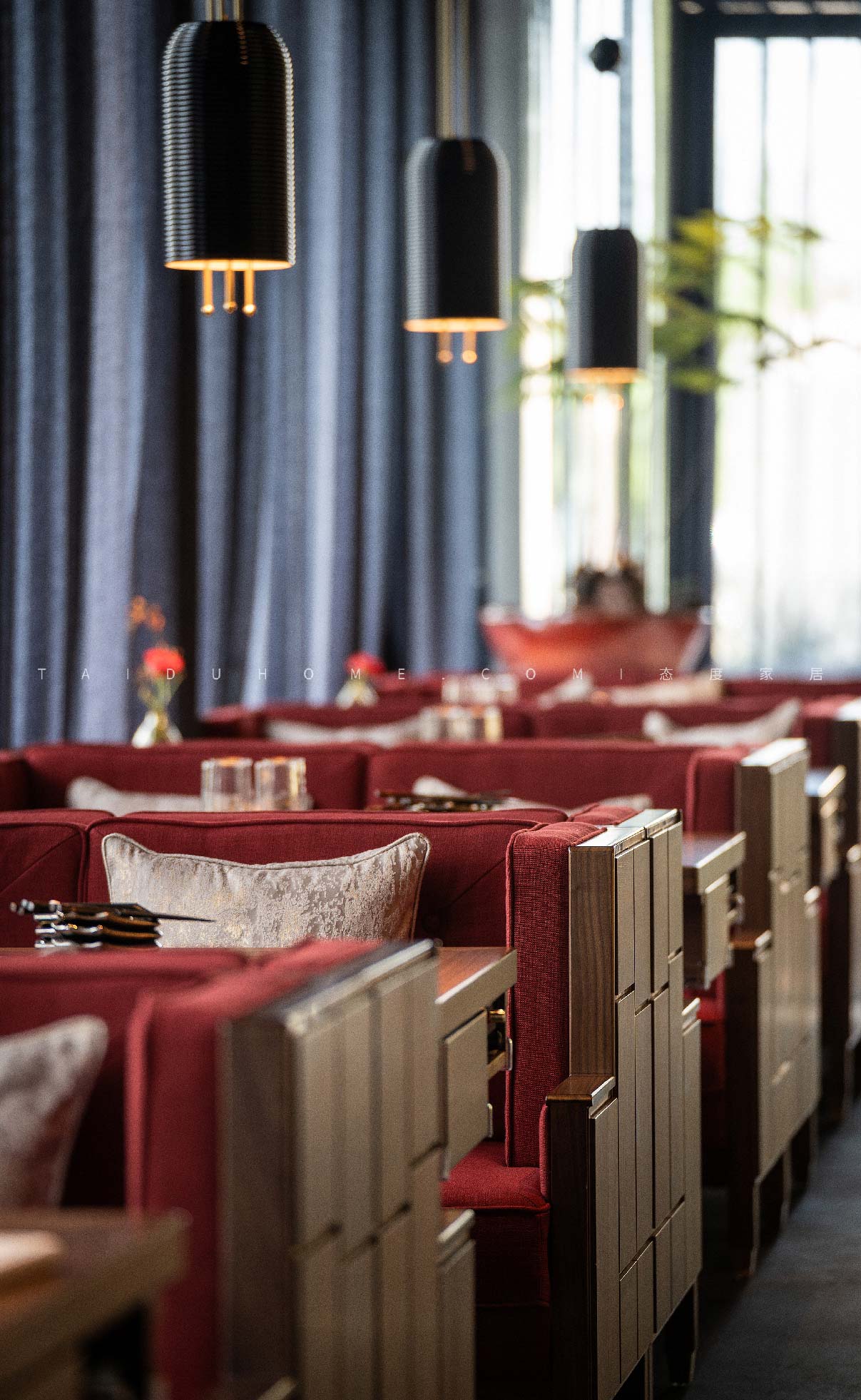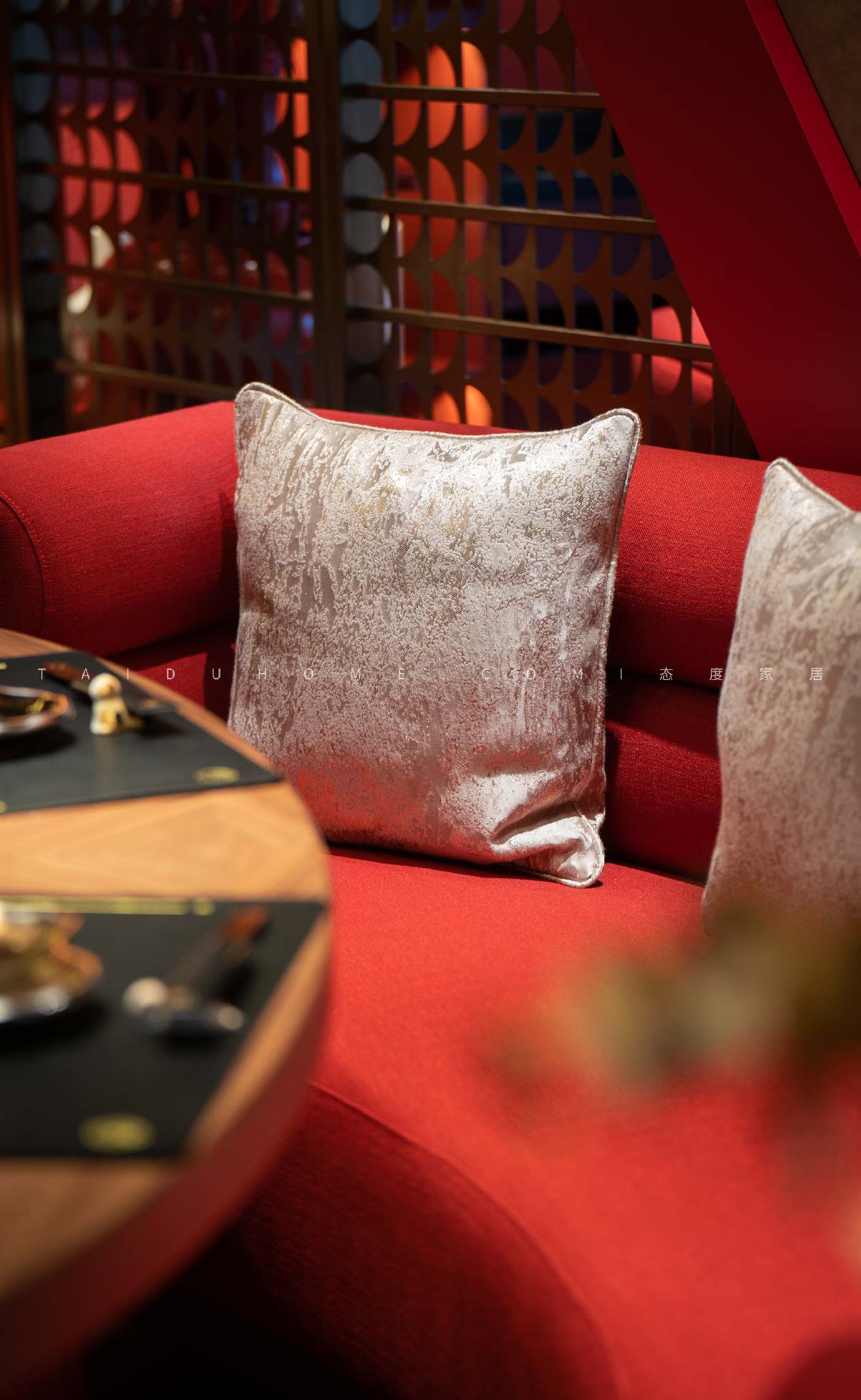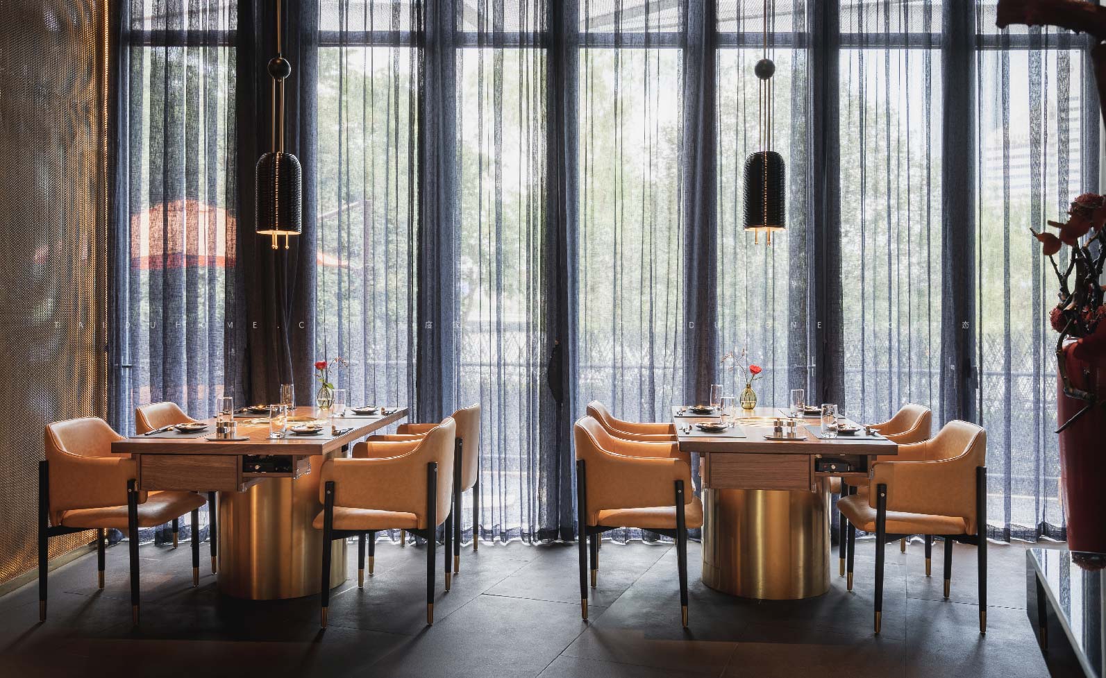The combination of diverse spaces, the private rooms surround the gathering wine guests with neon sounds, and the decorative pleated metal carried by the top device also fills the regional space with a dreamy atmosphere. The circular sofa gives a comfortable wrapping feeling, and the dark brown leather art, combined with the overall color tone and artistic hanging paintings, creates a retro and modern style.
