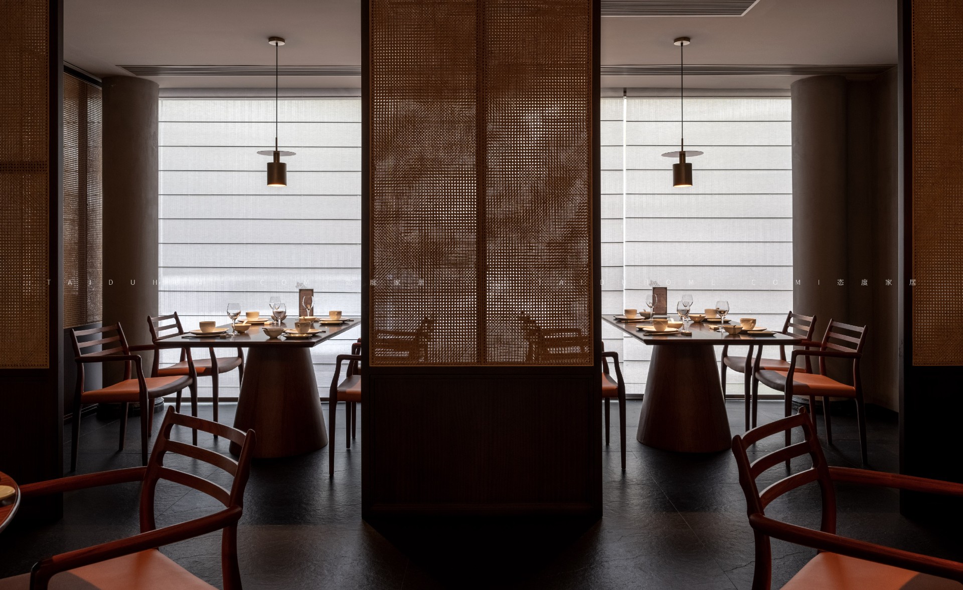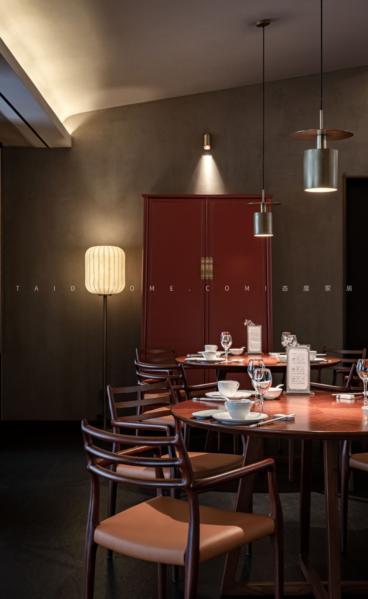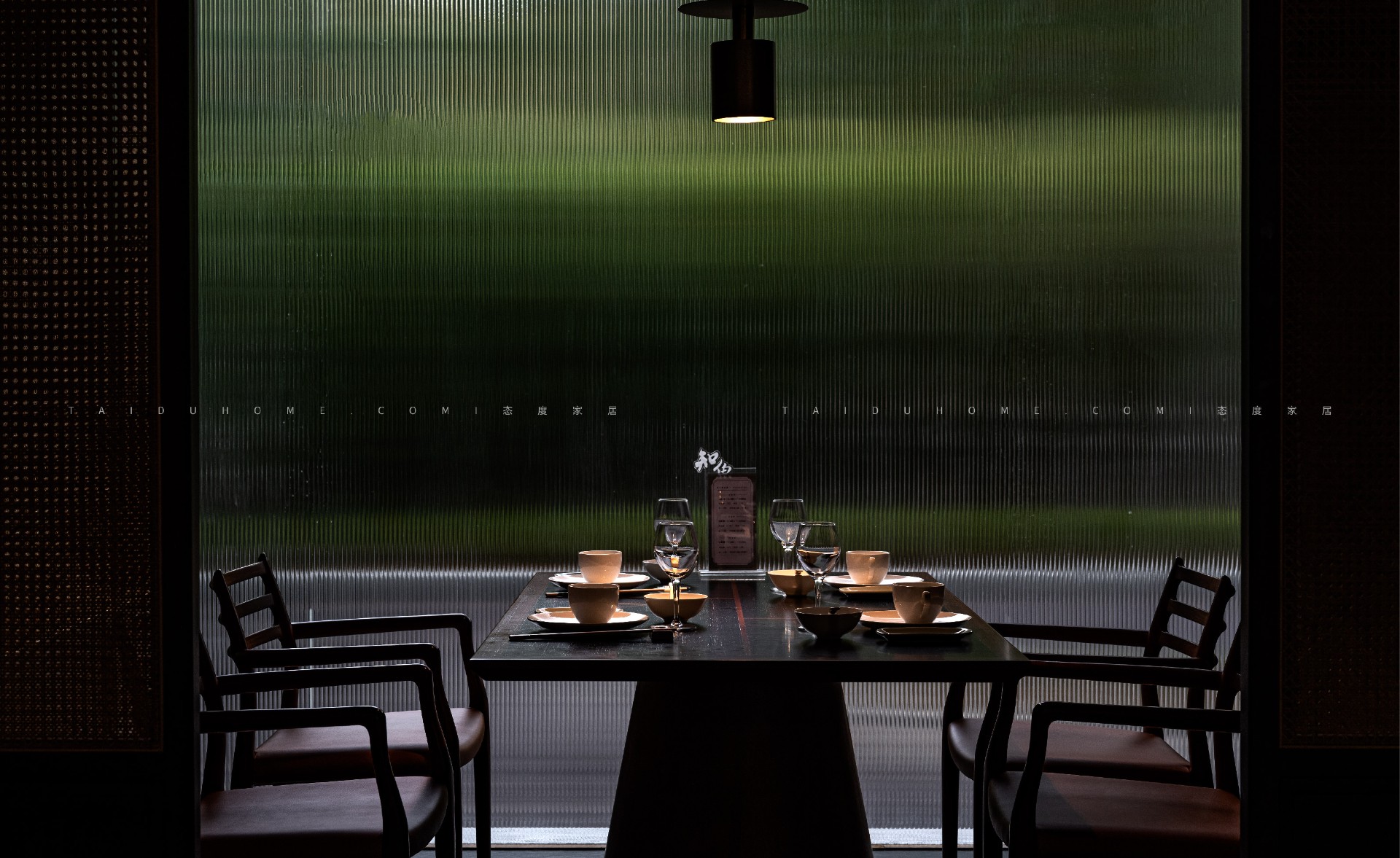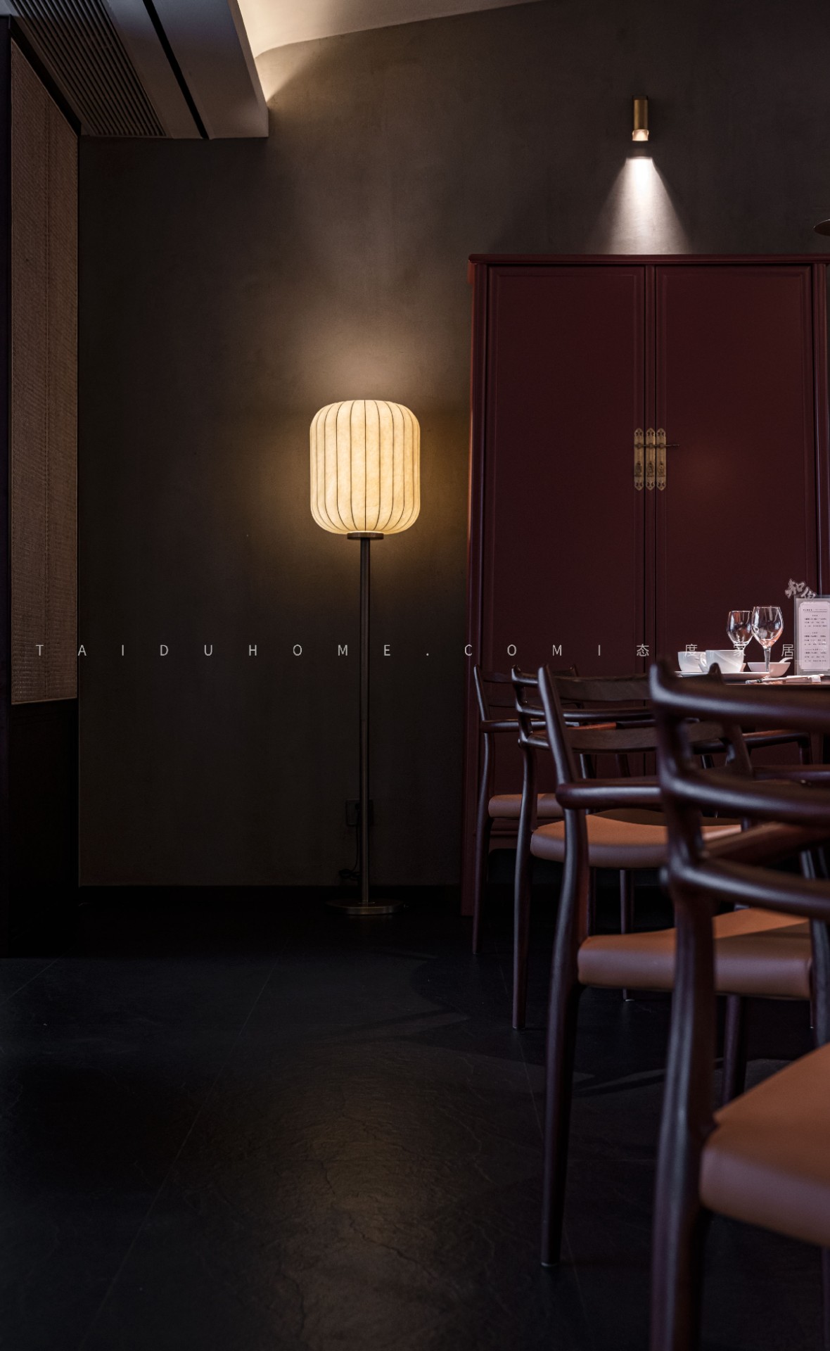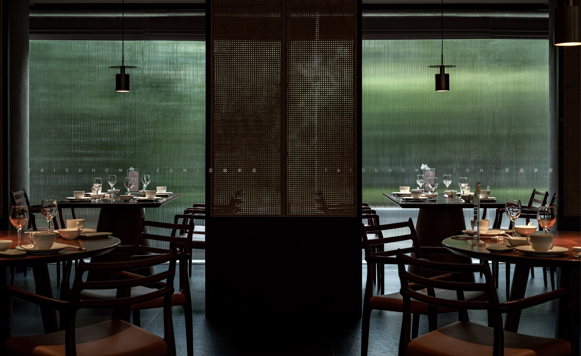 As night falls, the floating light first appears, hiding a unique and beautiful scenery in this secluded place. The fusion of light and shadow reveals the beauty of tranquility. Paired with delicate and delicate objects, replace the dullness and boredom of a single tone space with a humble and melancholic beauty. Paired with the natural texture of the walls and floors, it simplifies complexity and creates a comfortable, natural, and simple dining environment for the space.