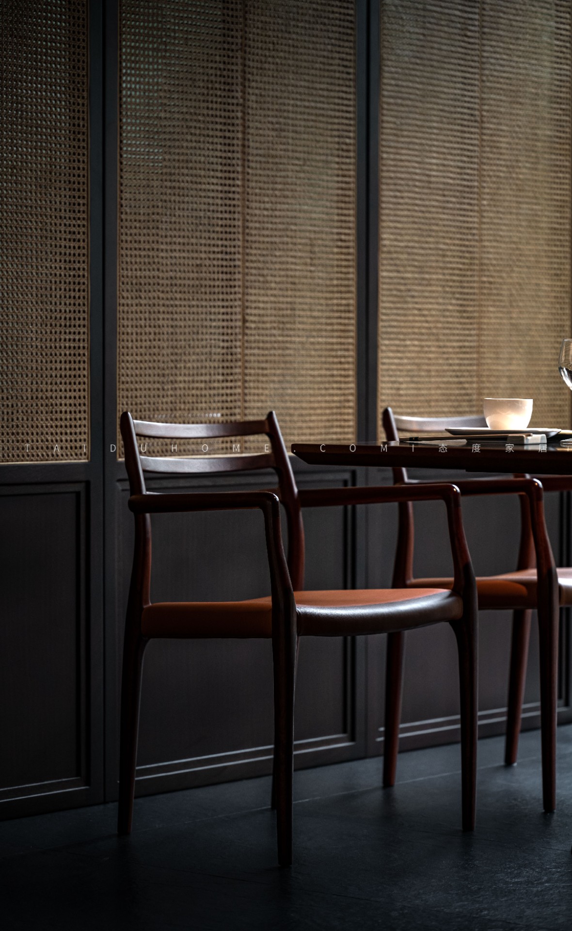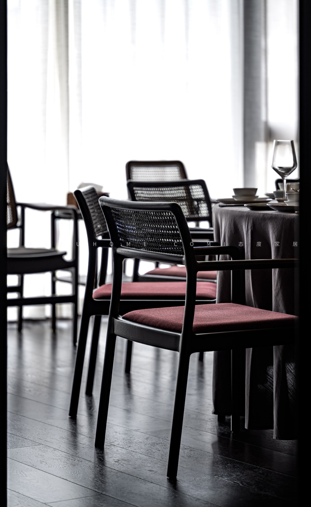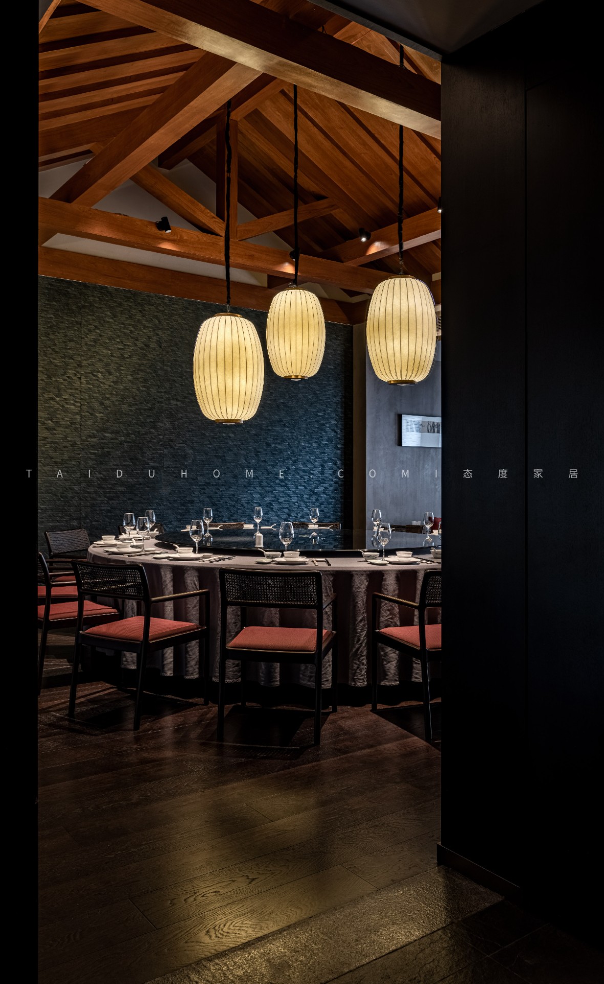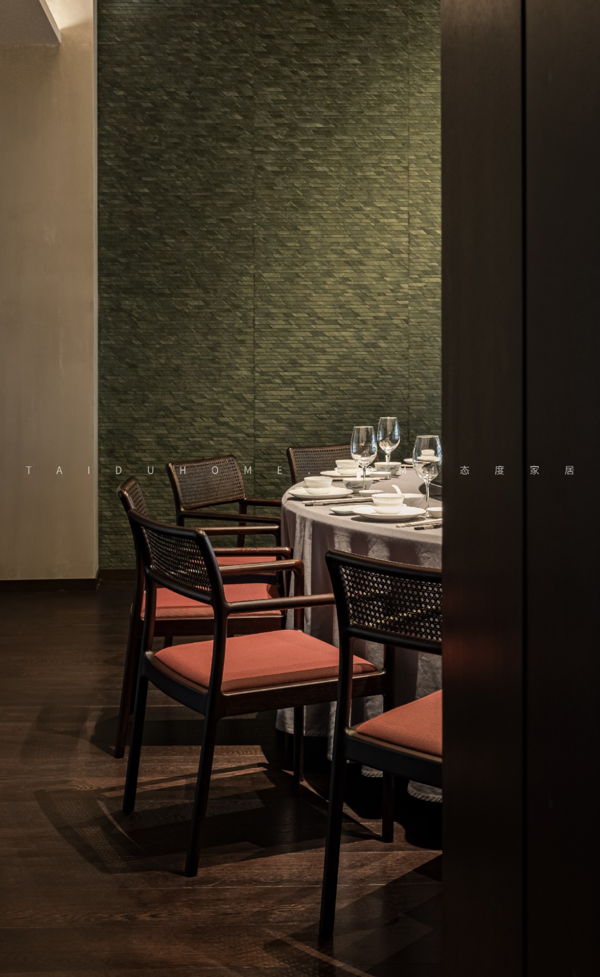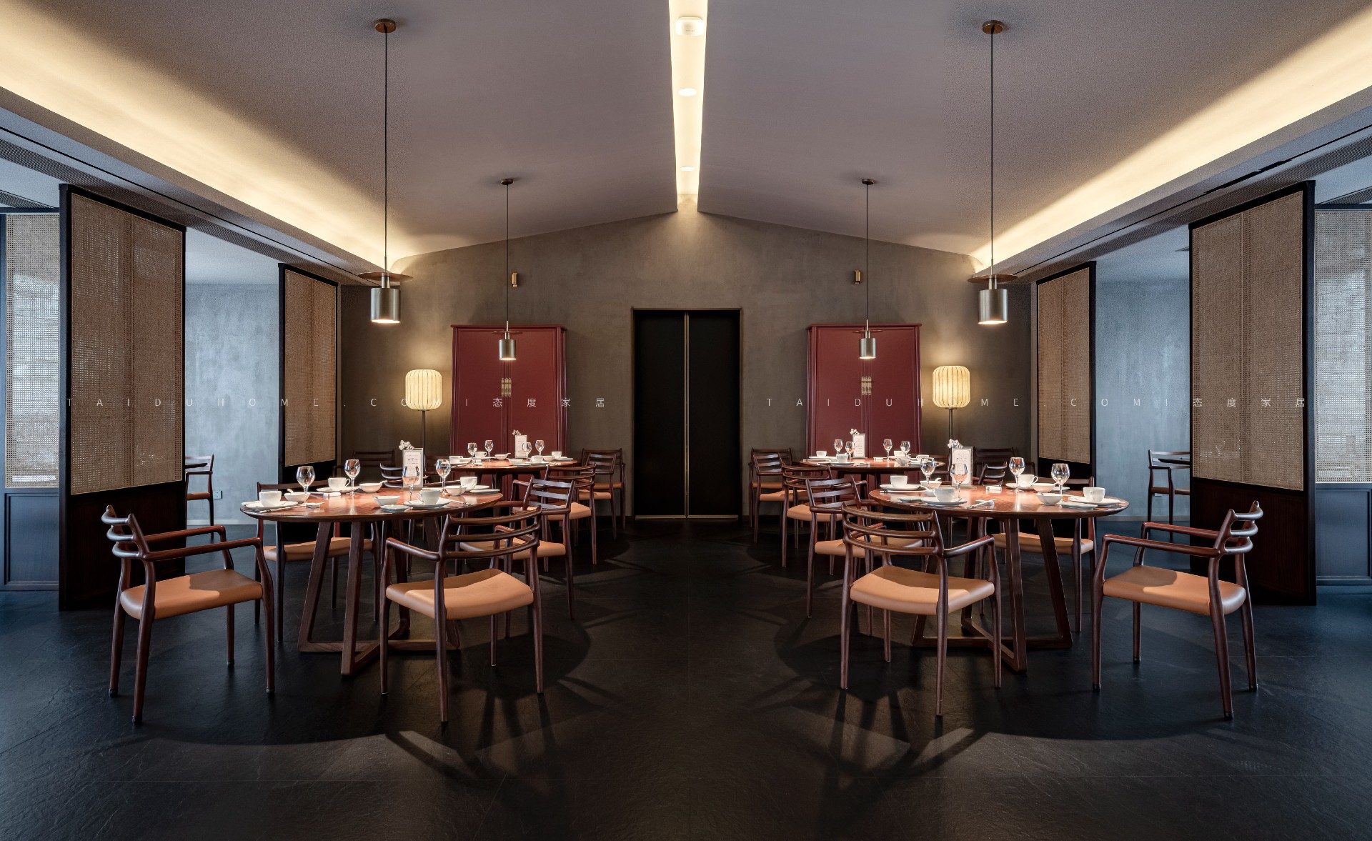 As night falls, the floating light first appears, hiding a unique and beautiful scenery in this secluded place. The fusion of light and shadow reveals the beauty of tranquility. Paired with delicate and delicate objects, replace the dullness and boredom of a single tone space with a humble and melancholic beauty. Paired with the natural texture of the walls and floors, it simplifies complexity and creates a comfortable, natural, and simple dining environment for the space.