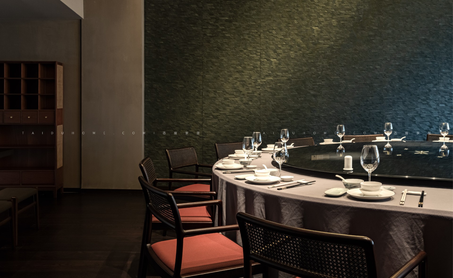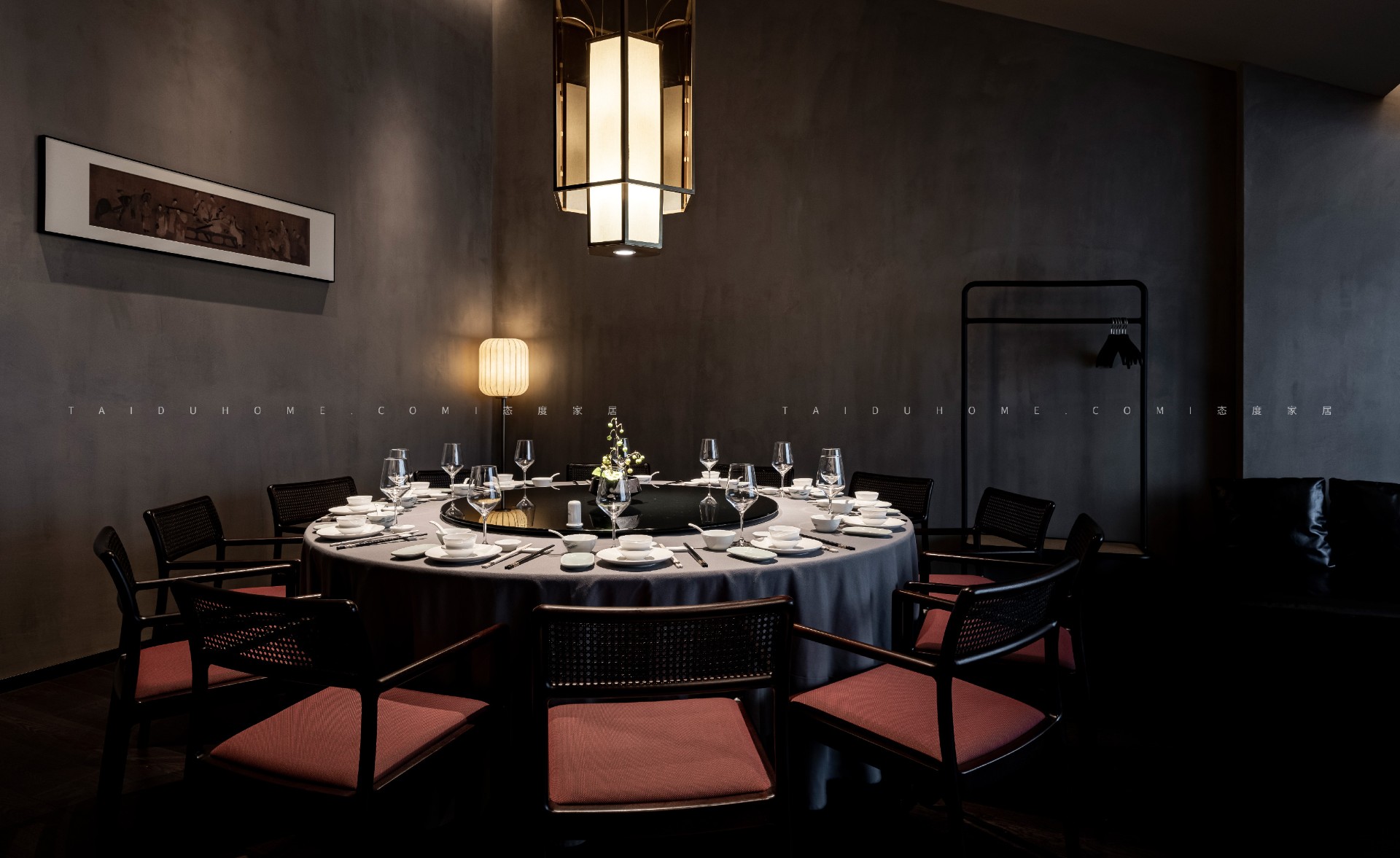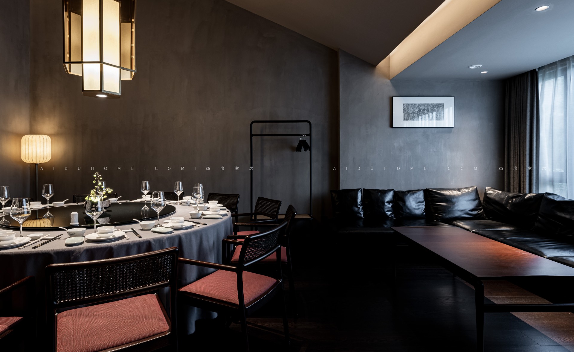 夜幕降临,浮光初现,在这世隐之处,藏一绝味佳境。光与影的融合,尽显侘寂之美。搭配精致而细腻的器物,用谦逊的黯然之美取代单一色调空间的沉闷和乏味。搭配墙面地面的自然肌理,化繁为简,为空间营造一种舒适、自然、简朴的就餐环境。