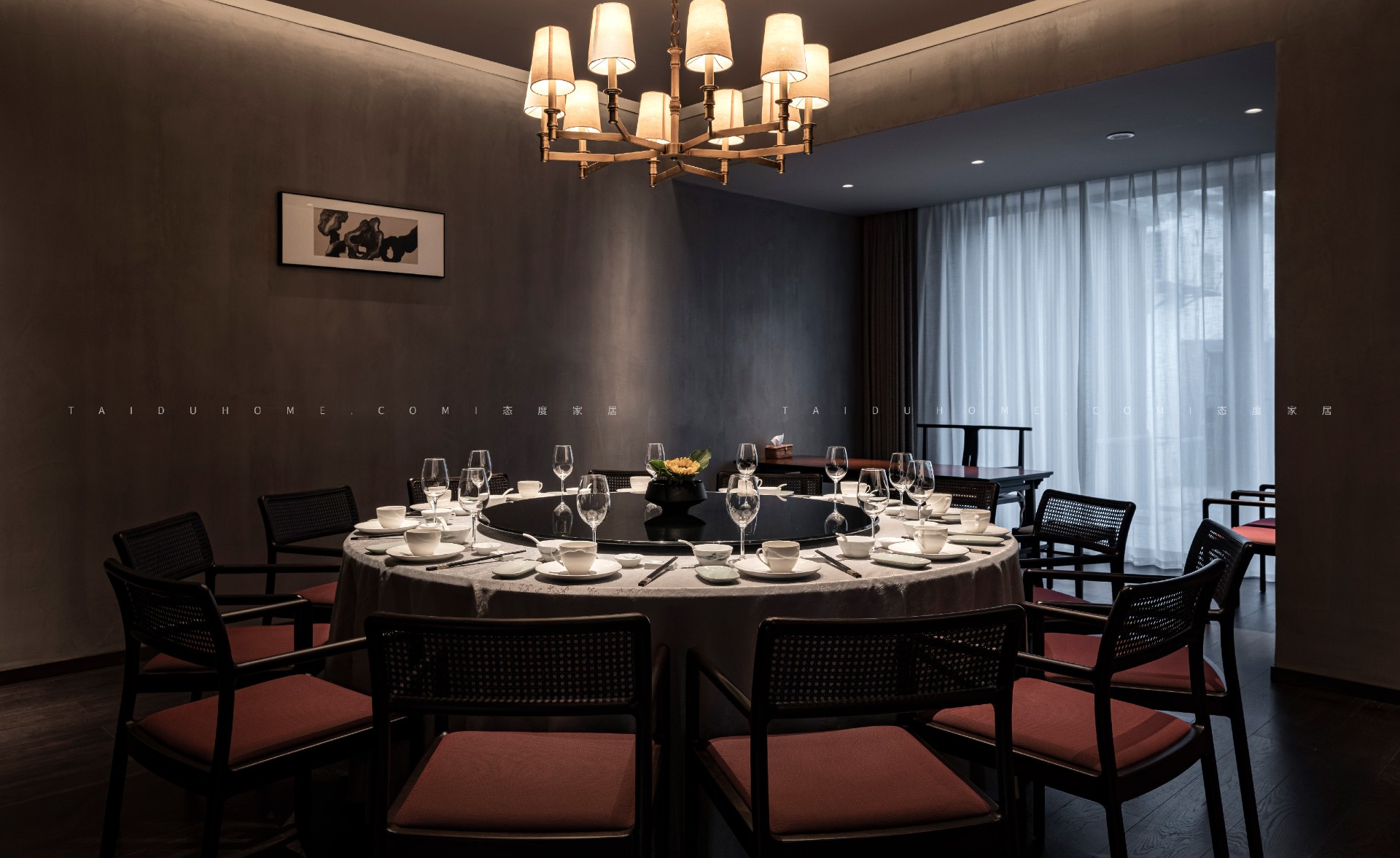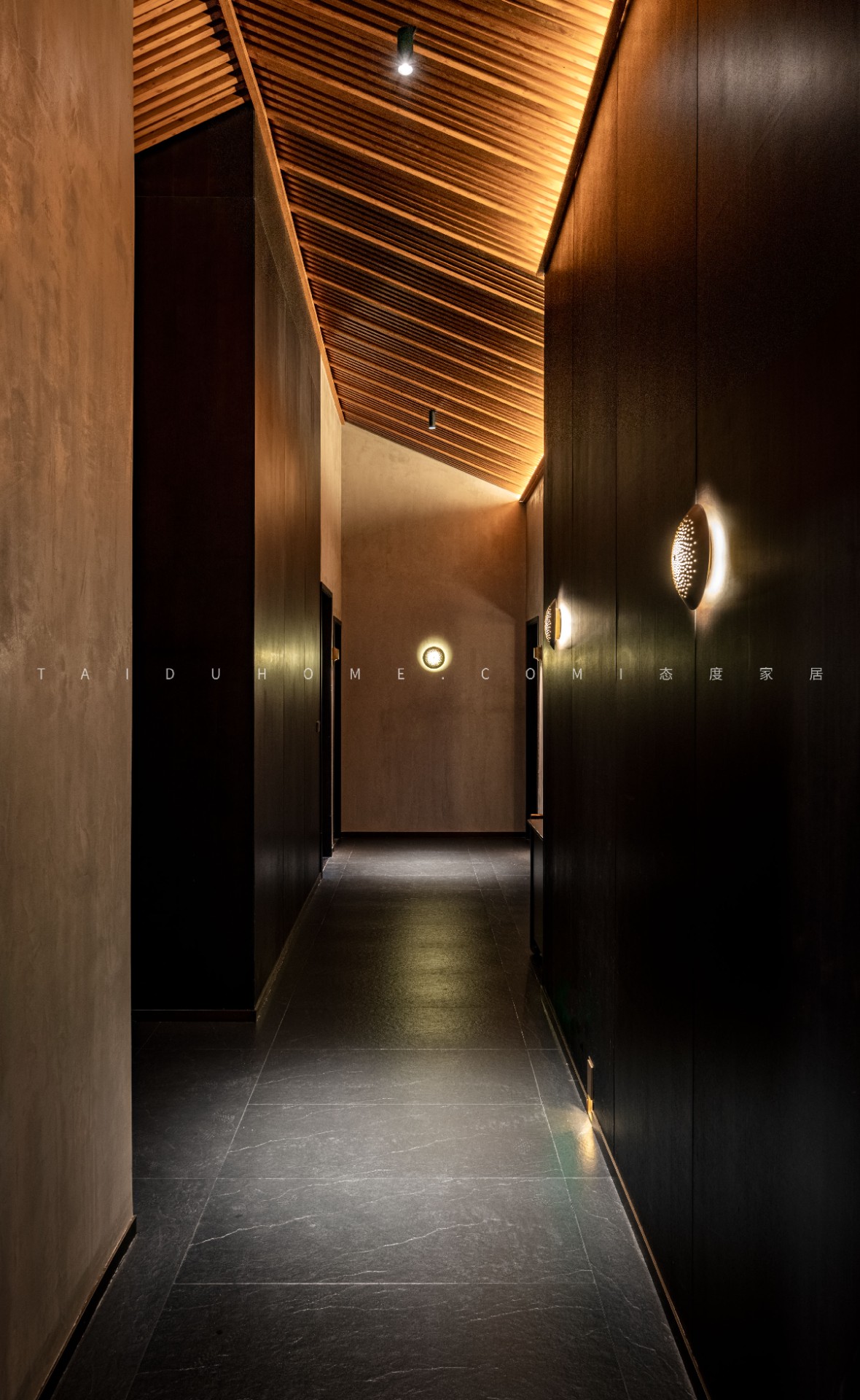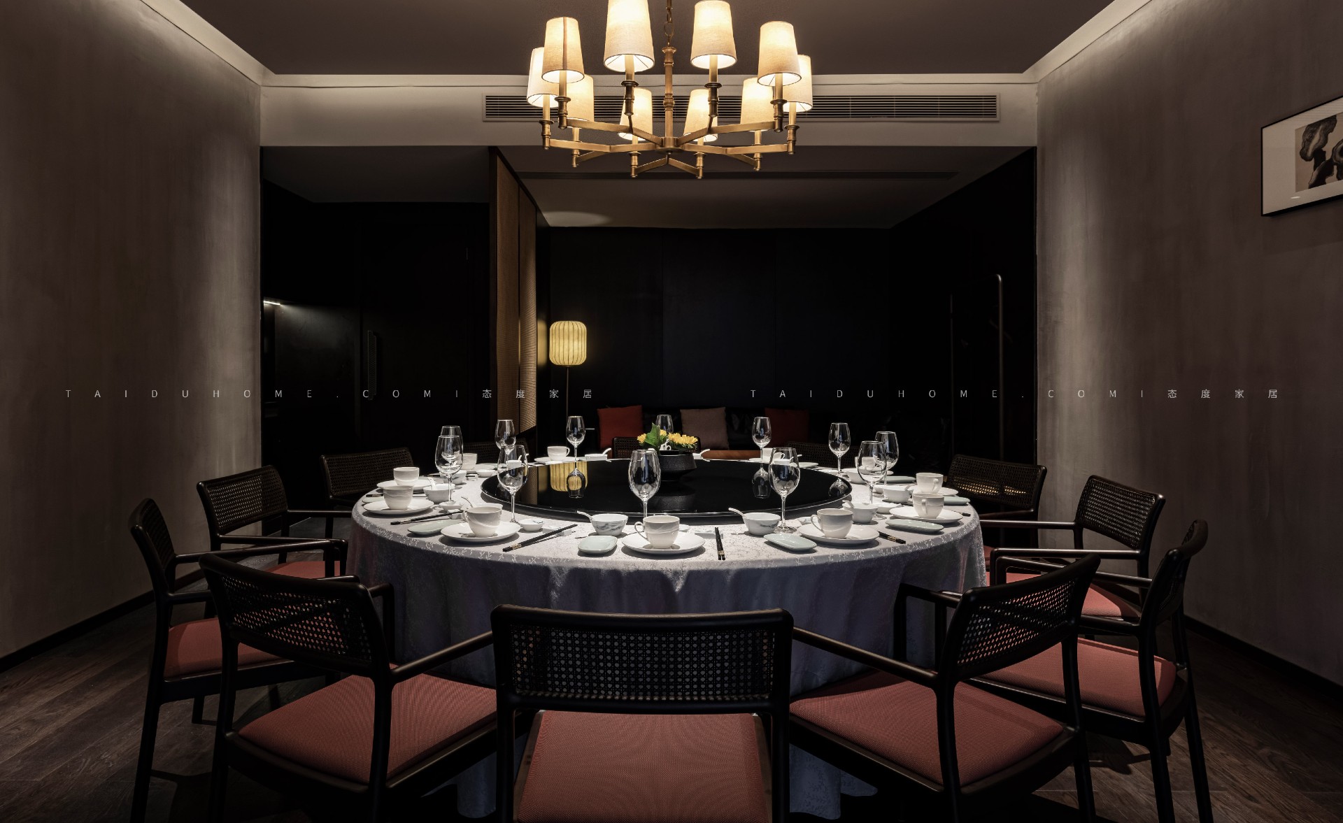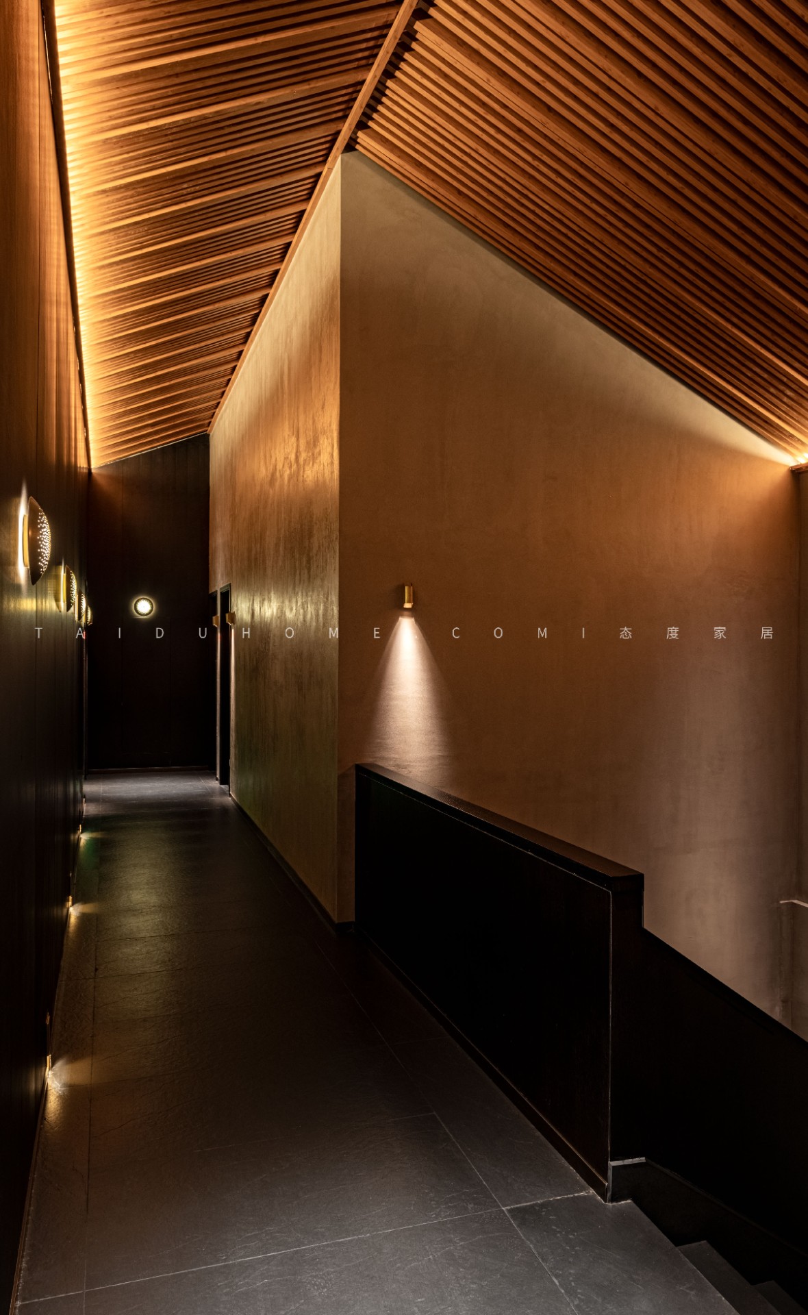 夜幕降临,浮光初现,在这世隐之处,藏一绝味佳境。光与影的融合,尽显侘寂之美。搭配精致而细腻的器物,用谦逊的黯然之美取代单一色调空间的沉闷和乏味。搭配墙面地面的自然肌理,化繁为简,为空间营造一种舒适、自然、简朴的就餐环境。