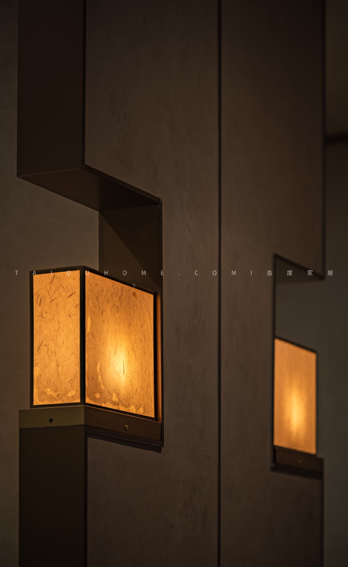 Abandoned common Japanese elements such as "white lanterns, bold calligraphy, and bamboo plaques.". Instead, it is made of metal with burn marks like texture, covering the surface with warm tones, ambiguous atmosphere, and retro fireworks, while enriching the Japanese silence with a mottled and textured feel.