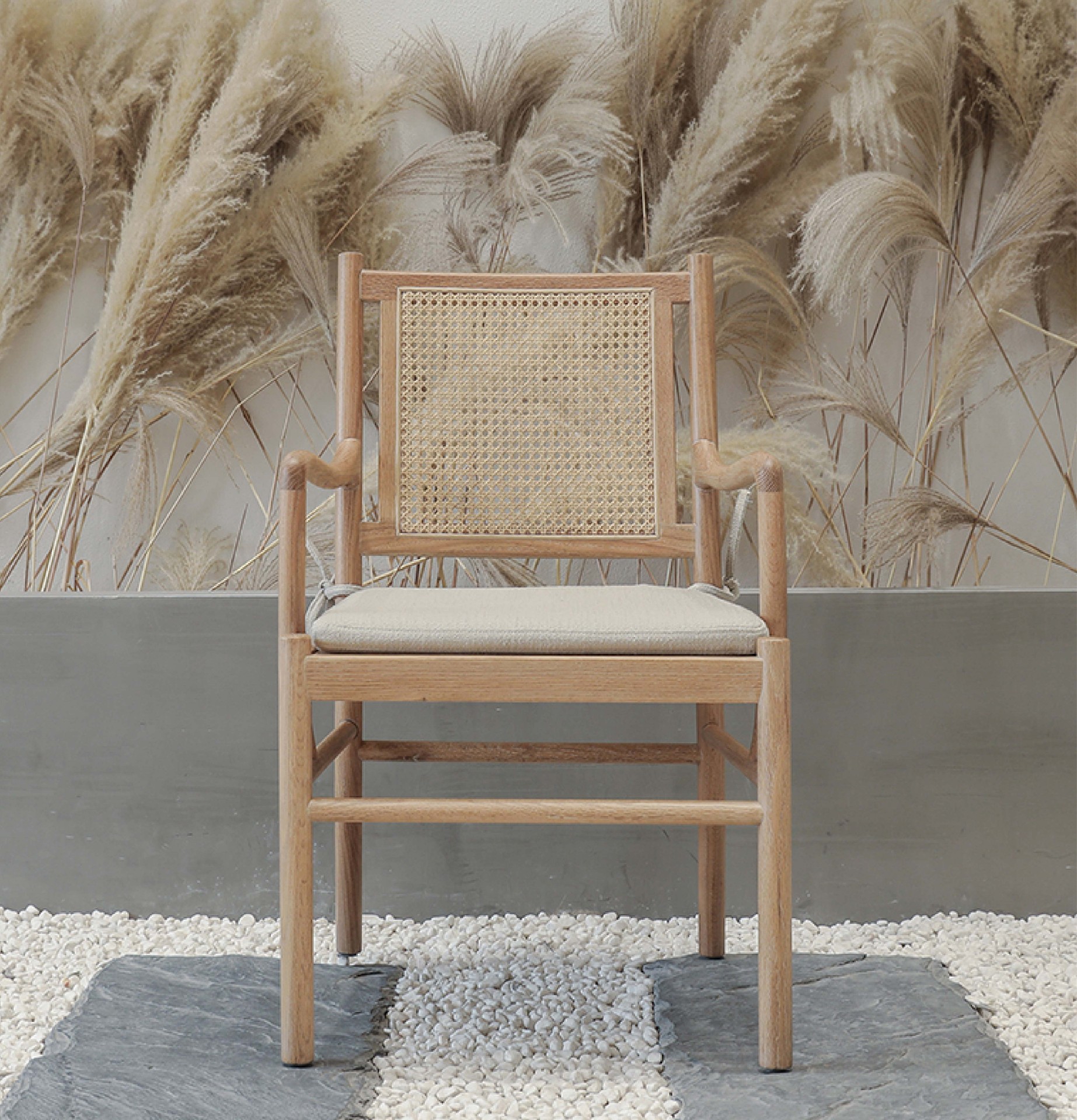 产品介绍 | Product Introduction我们想要一把多用百搭的椅子,无论是餐厅、茶空间还是休闲区都能轻轻松松解决。在不同的风格空间都能融入的刚刚好。设计元素致敬了四出头宫帽椅,扶手处受到北欧风格的影响流畅婉转。We want a versatile chair that can be easily used in restaurants, tea spaces, and leisure areas. It fits perfectly in different styles and spaces. The design elements pay tribute to the four head palace hat chair, and the armrests are smooth and graceful influenced by Nordic style.
