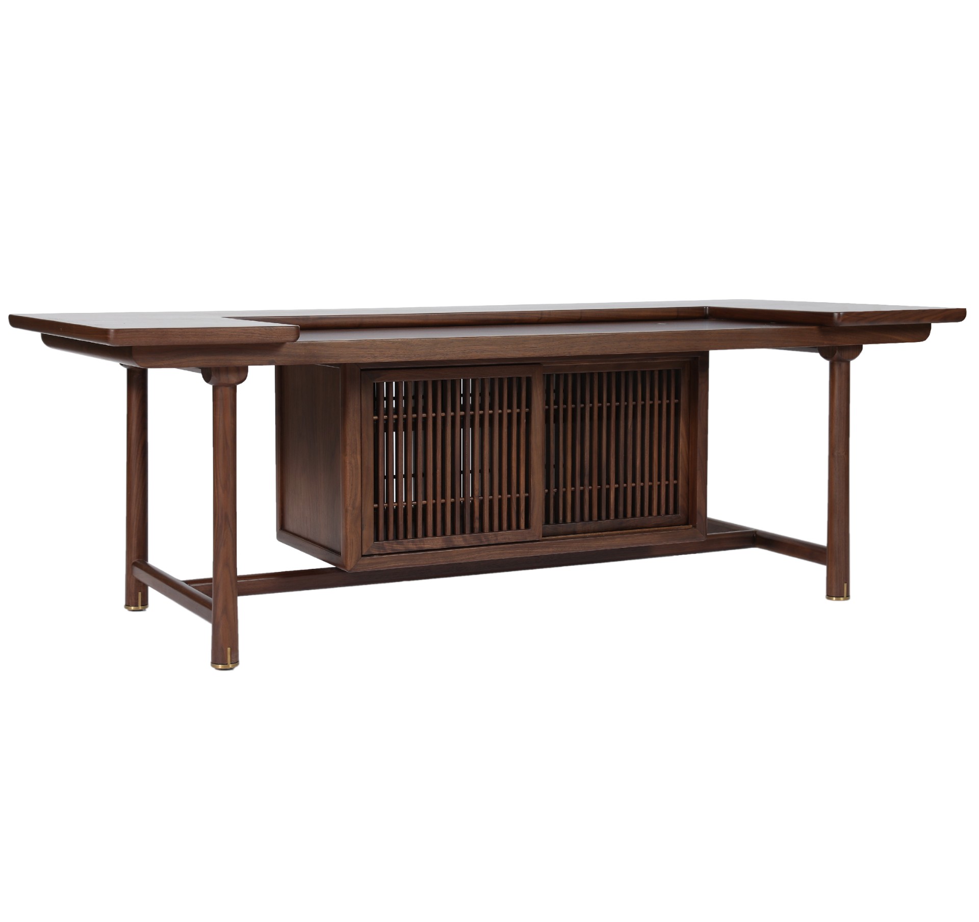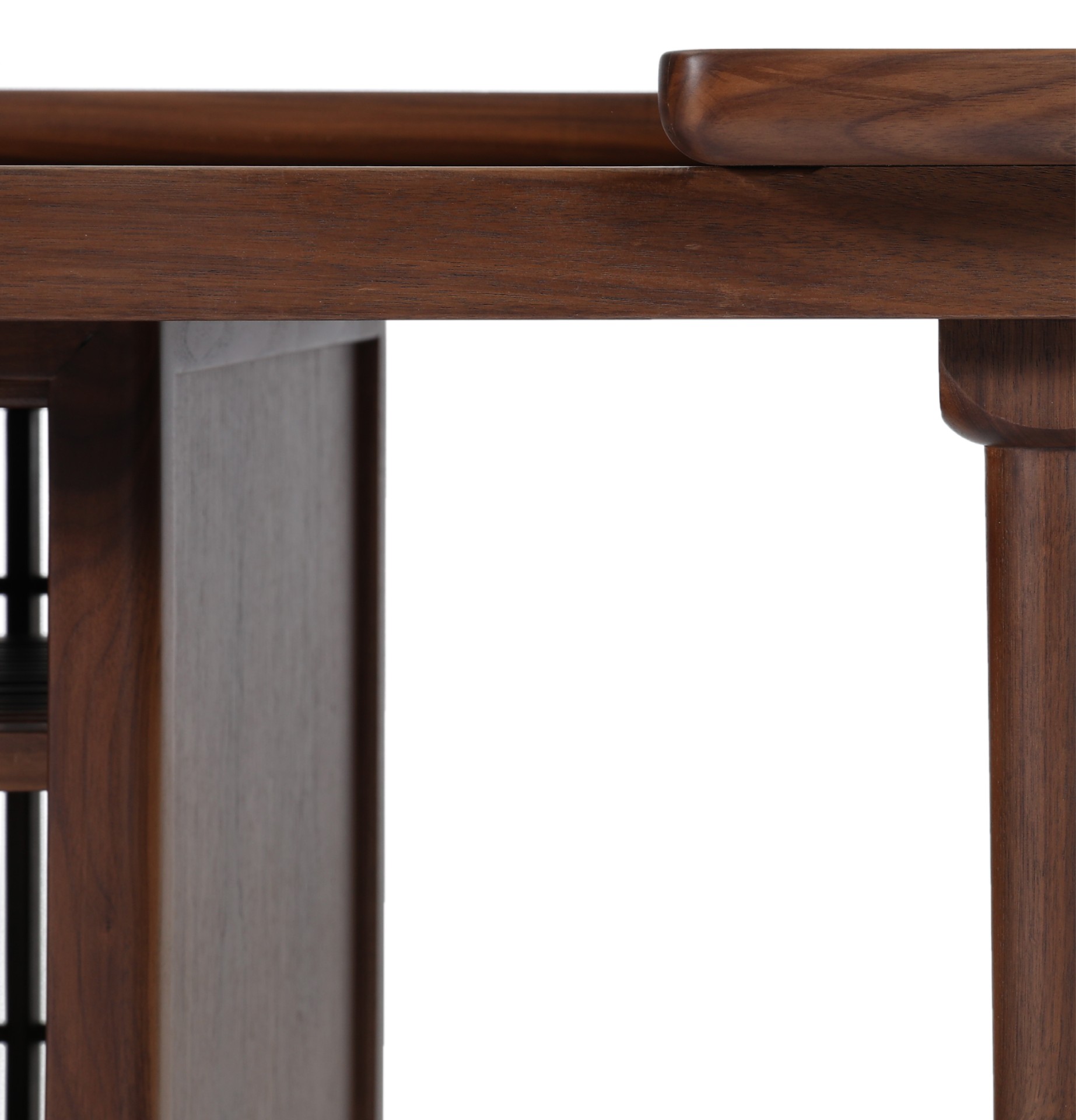 产品介绍 | Product Introduction曲径通幽,山光潭影,古寺高林。在设计上,独特的造型恰似山间的庙宇,黑胡桃的沉稳和坚毅造就了这一张富有禅意,有态度的语庙茶几。The winding path leads to a secluded place, with mountains shining and pools reflecting, and ancient temples towering in the forest. In terms of design, the unique shape resembles a temple in the mountains, and the calmness and perseverance of the black walnut create this Zen rich and attitude oriented Yu Temple coffee table.