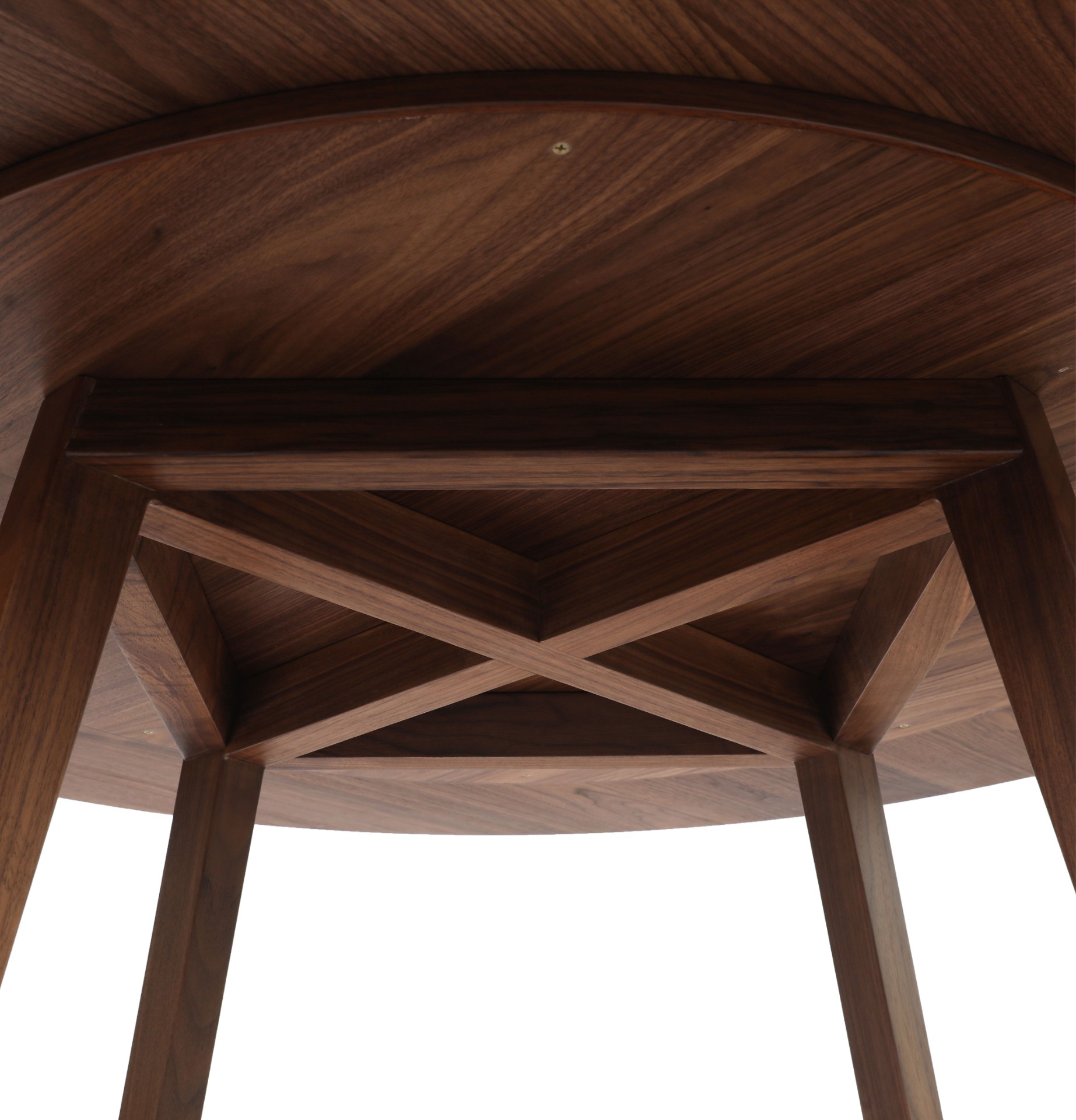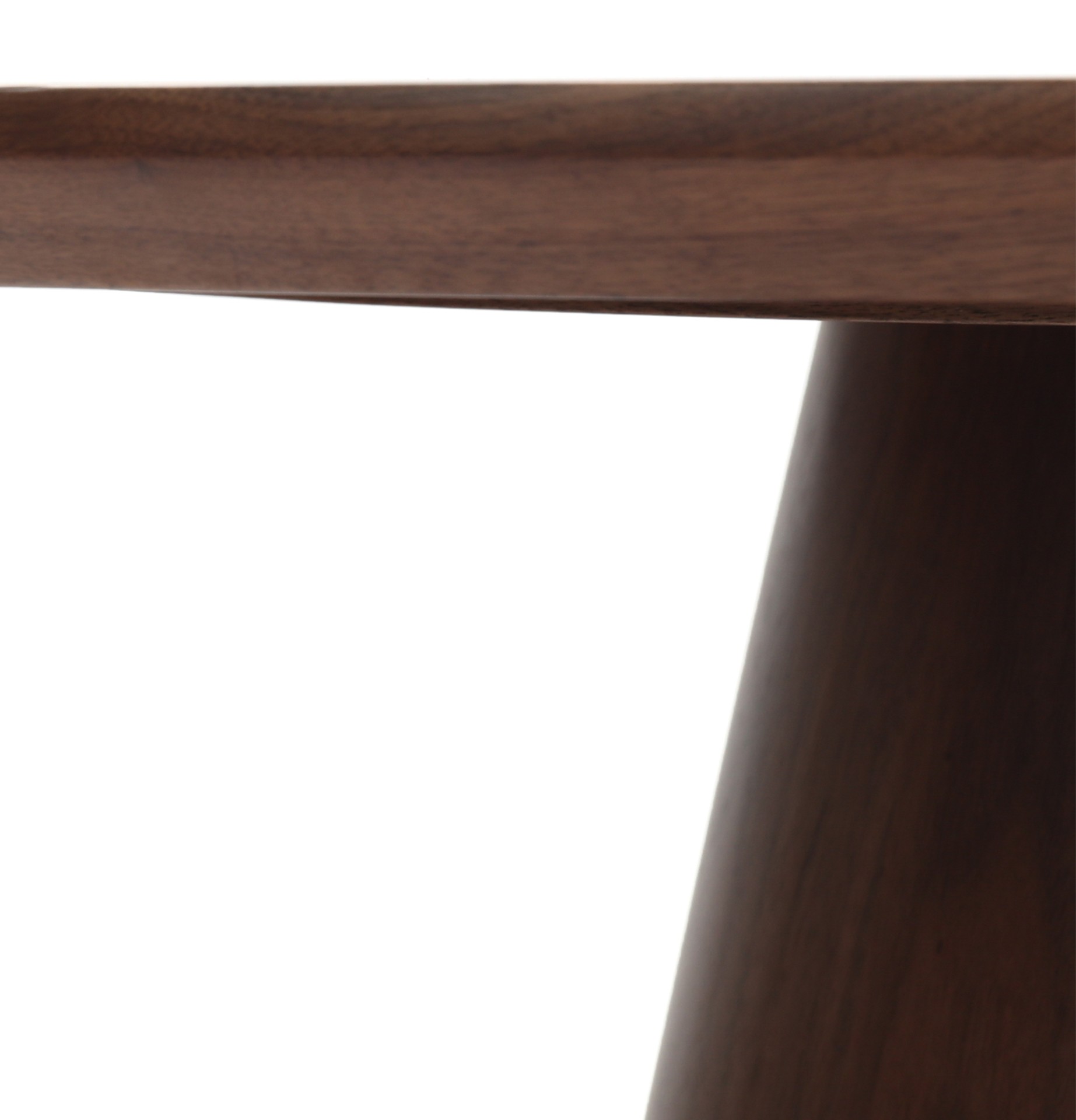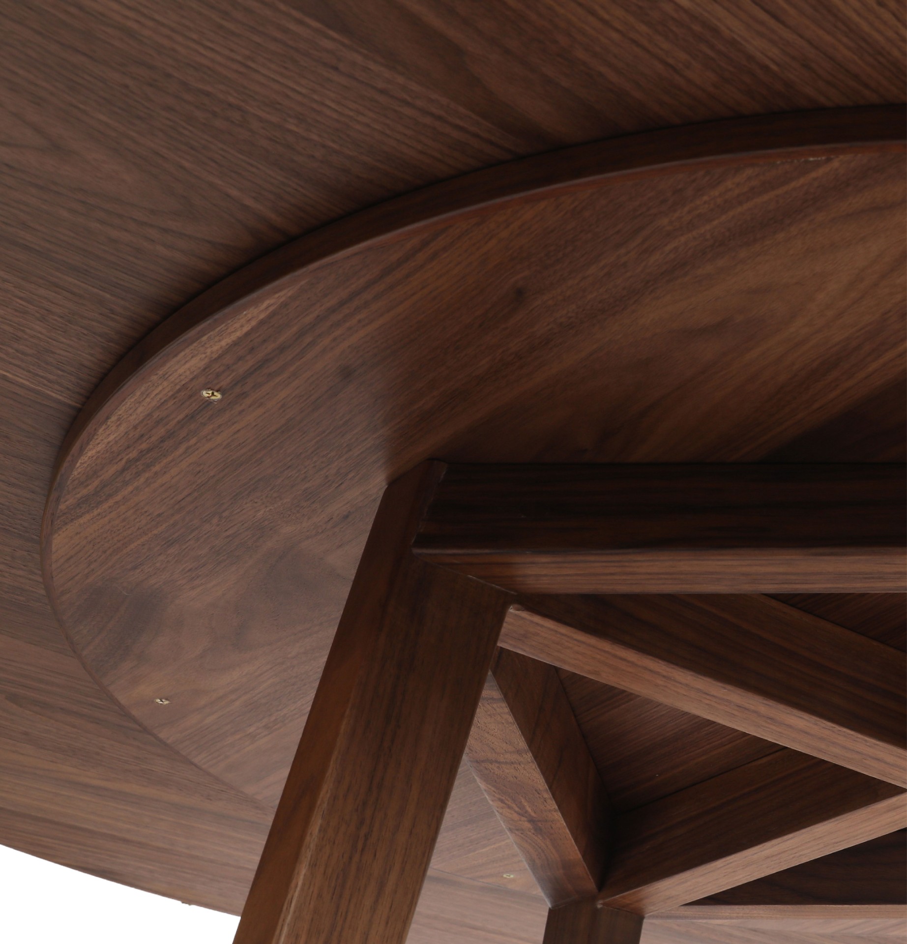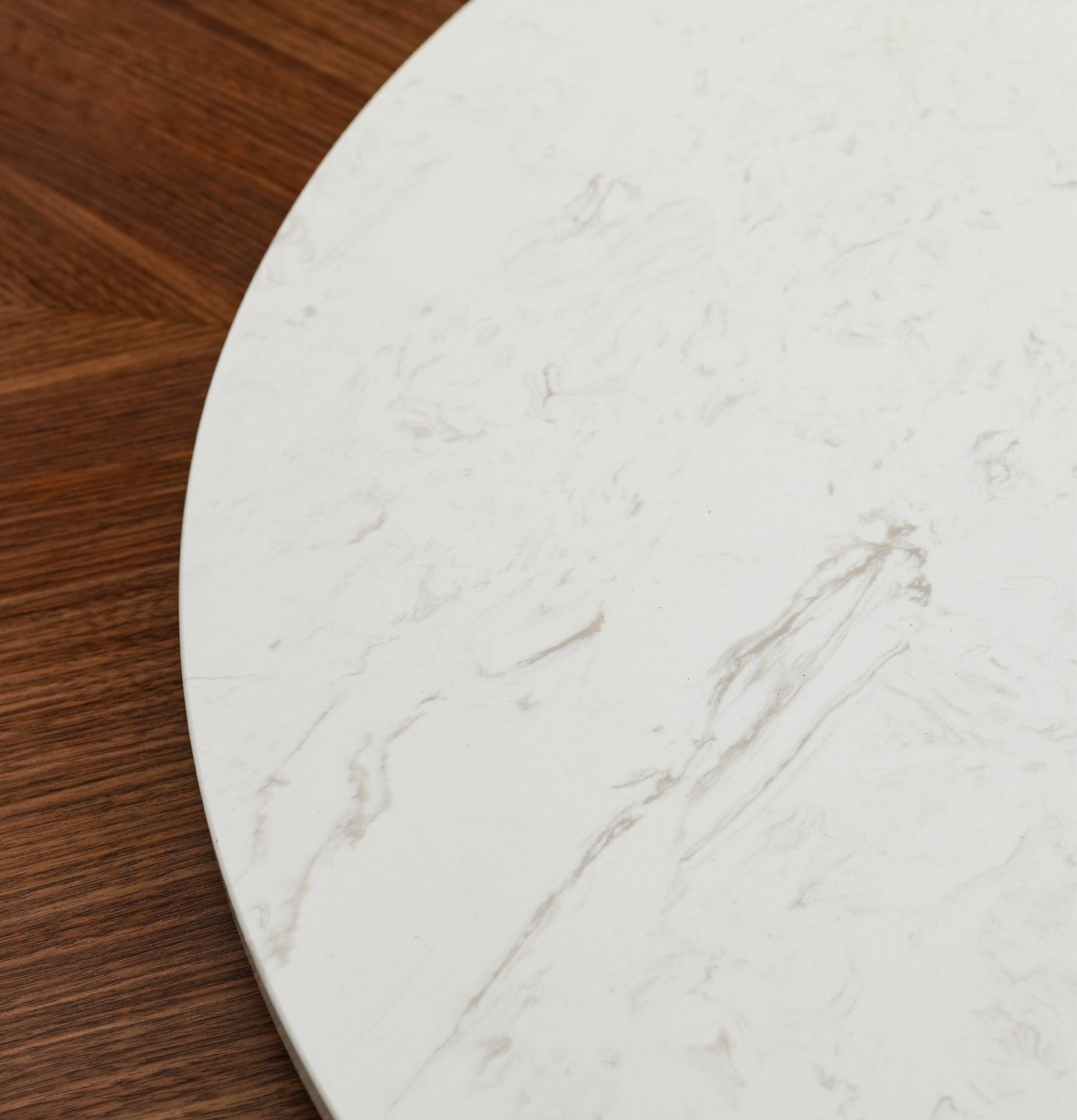产品介绍 | Product Introduction白色的大理石转盘像一汪池水,映照着天上的一轮圆月,石与木的搭配,清爽简洁、富有诗意。黑胡桃木细腻的打磨,给家里增添自然气息,圆桌添加转盘,方便就餐取用,桌腿交叉支撑,既稳固又美观。The white marble turntable is like a pool of water, reflecting a round moon in the sky. The combination of stone and wood is refreshing, simple, and poetic. The delicate polishing of black walnut wood adds a natural atmosphere to the home, and the round table is equipped with a turntable for convenient dining access. The legs of the table are cross supported, which is both stable and beautiful.