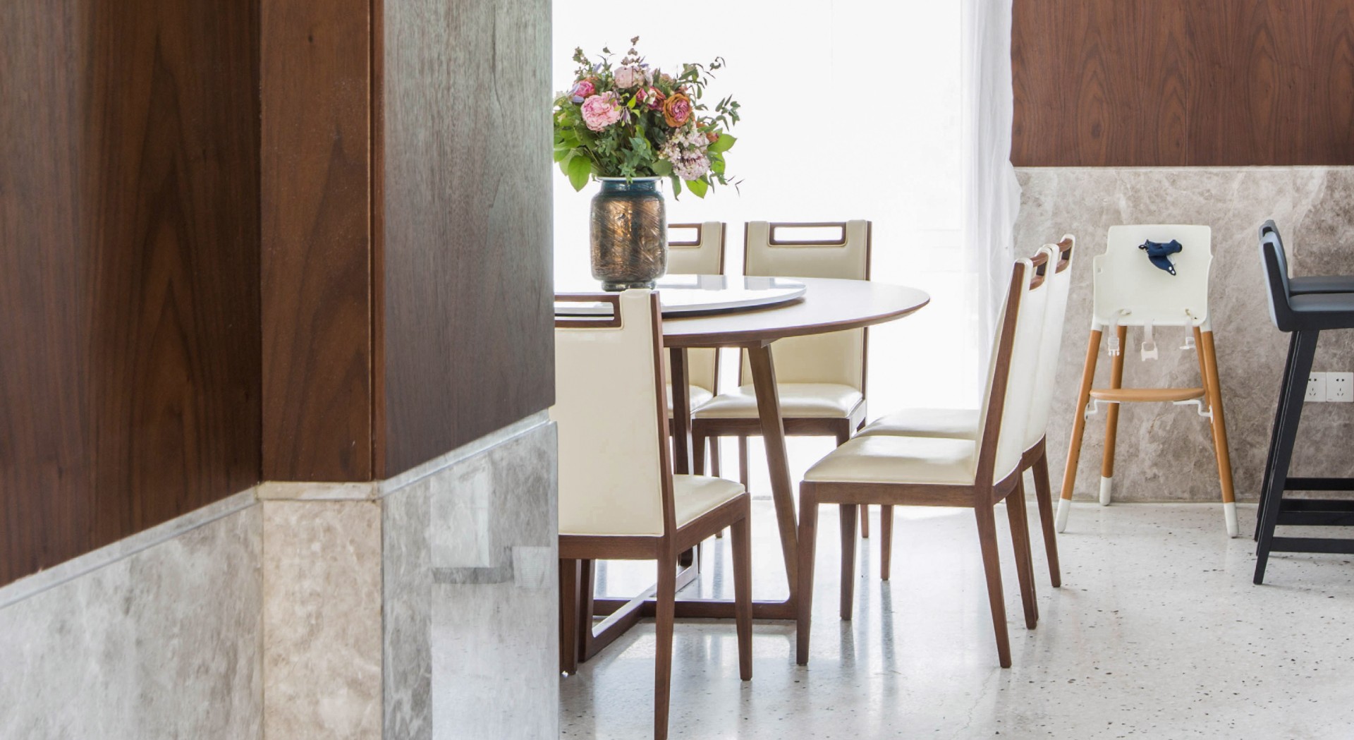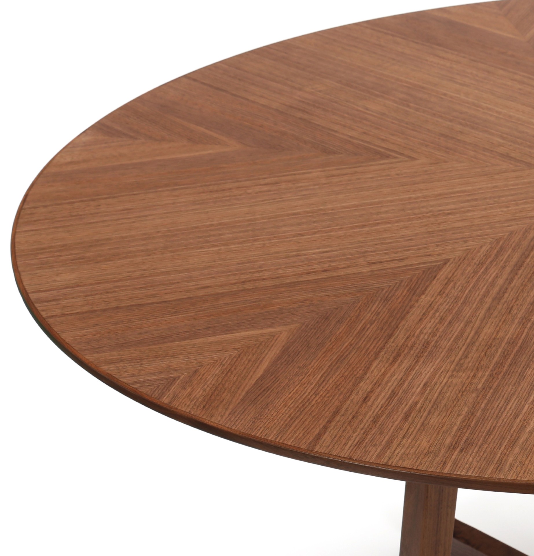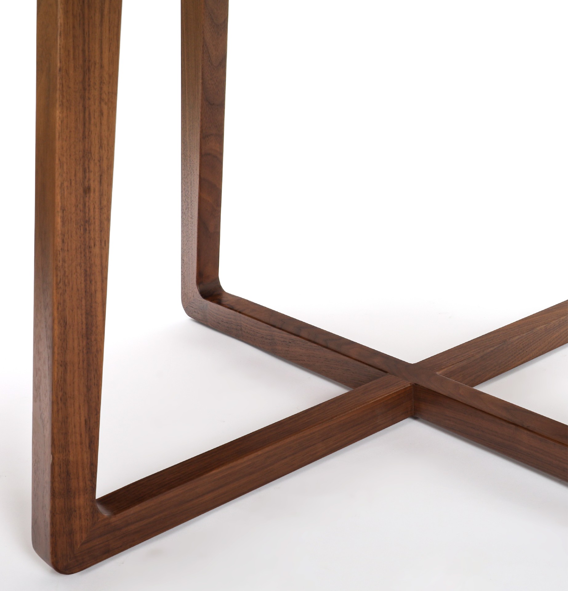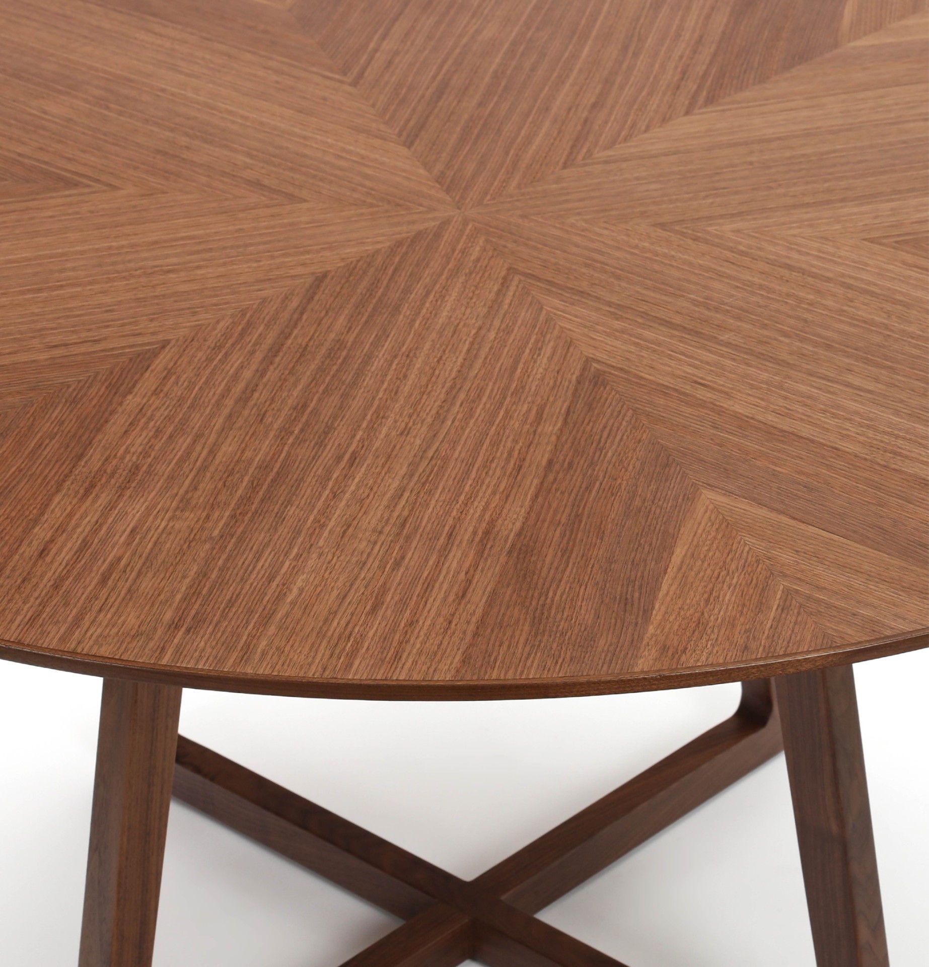 产品介绍 | Product Introduction白色的大理石转盘像一汪池水,映照着天上的一轮圆月,石与木的搭配,清爽简洁、富有诗意。黑胡桃木细腻的打磨,给家里增添自然气息,圆桌添加转盘,方便就餐取用,桌腿交叉支撑,既稳固又美观。The white marble turntable is like a pool of water, reflecting a round moon in the sky. The combination of stone and wood is refreshing, simple, and poetic. The delicate polishing of black walnut wood adds a natural atmosphere to the home, and the round table is equipped with a turntable for convenient dining access. The legs of the table are cross supported, which is both stable and beautiful.