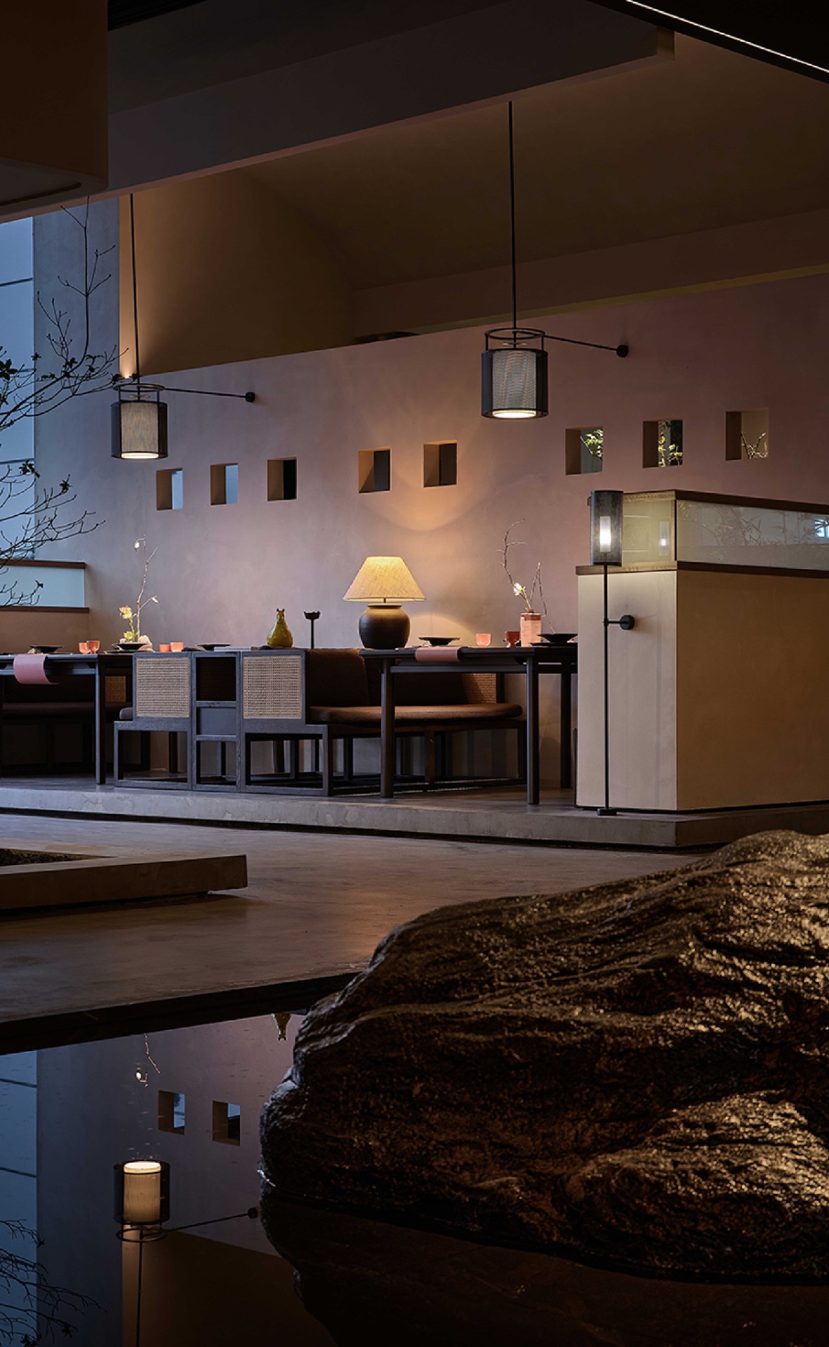 The environment of the Sanqiu Dongyan Restaurant is like a delicate painting, warm and unique, filled with the poetry and elegance of the East.