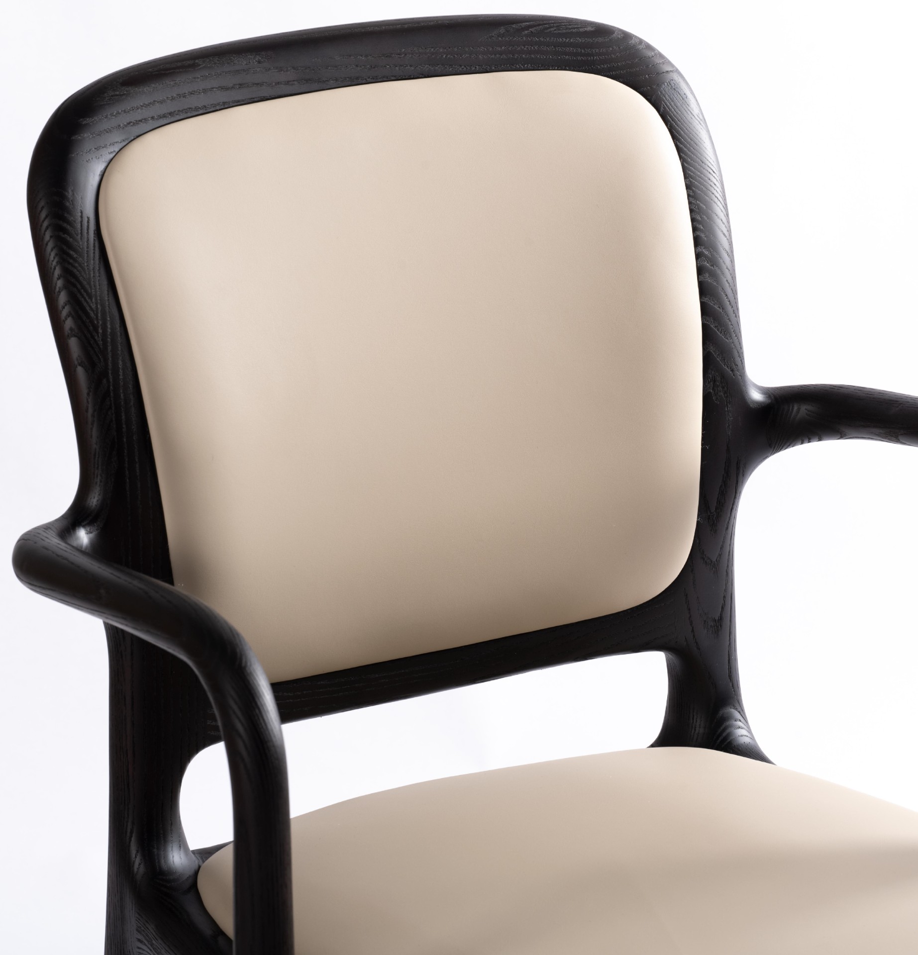 产品介绍 | Product Introduction企企鹅椅独特的弧形扶手设计比传统直扶手更宽敞,提升坐感舒适度,加上其卓越的支撑力,适合长时间使用。优雅的木质表面展现自然美感,巧妙融入东方元素设计,完美结合经典与现代美学,展现传统工艺与现代设计的和谐统一,为餐厅增添独特魅力。The unique curved armrest design of the penguin chair is more spacious than traditional straight armrests, enhancing sitting comfort. Coupled with its excellent support, it is suitable for long-term use. The elegant wooden surface showcases natural beauty, cleverly incorporating Eastern elements in design, showcasing the harmonious unity of traditional craftsmanship and modern design, adding unique charm to the restaurant.