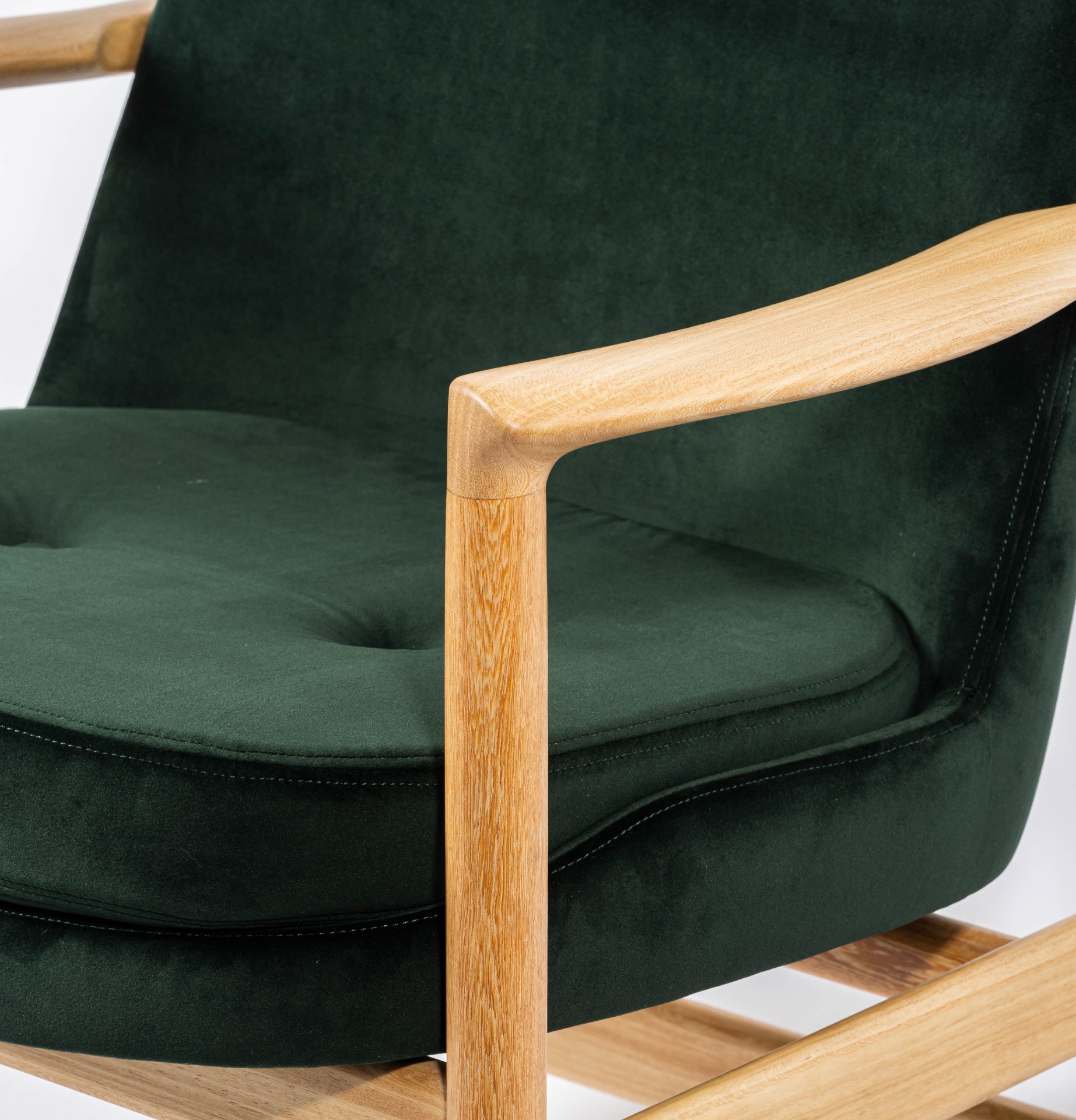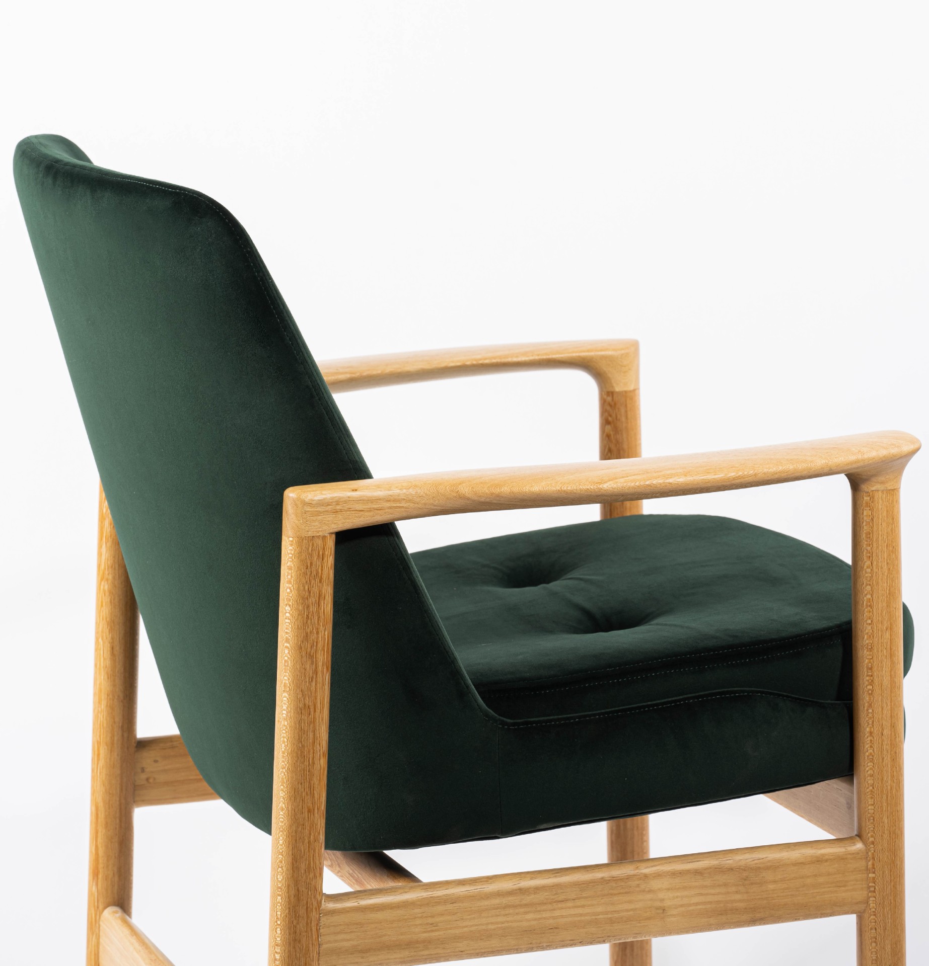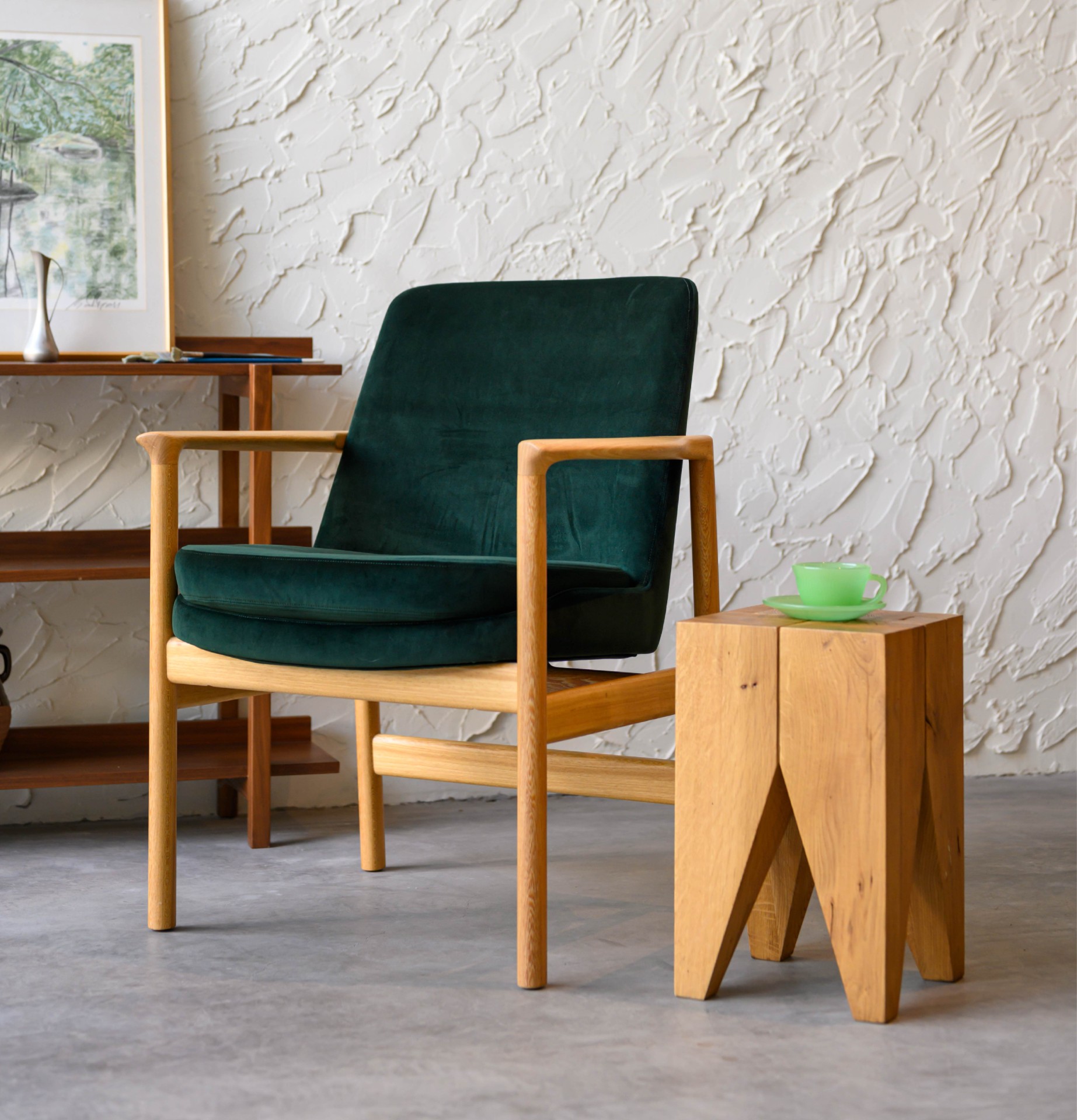 产品介绍 | Product Introduction黛绿椅,如同一抹静谧的绿意,细腻而温暖。其简约的中世纪现代风格,天然木质框架与温润色调交织,营造出宁静优雅的氛围,能轻松融入各种家居环境。The Daze Green Chair is like a serene touch of green, delicate and warm. Its minimalist mid-century modern style, combined with a natural wooden frame and soft hues, creates a tranquil and elegant atmosphere that effortlessly blends into various home environments.