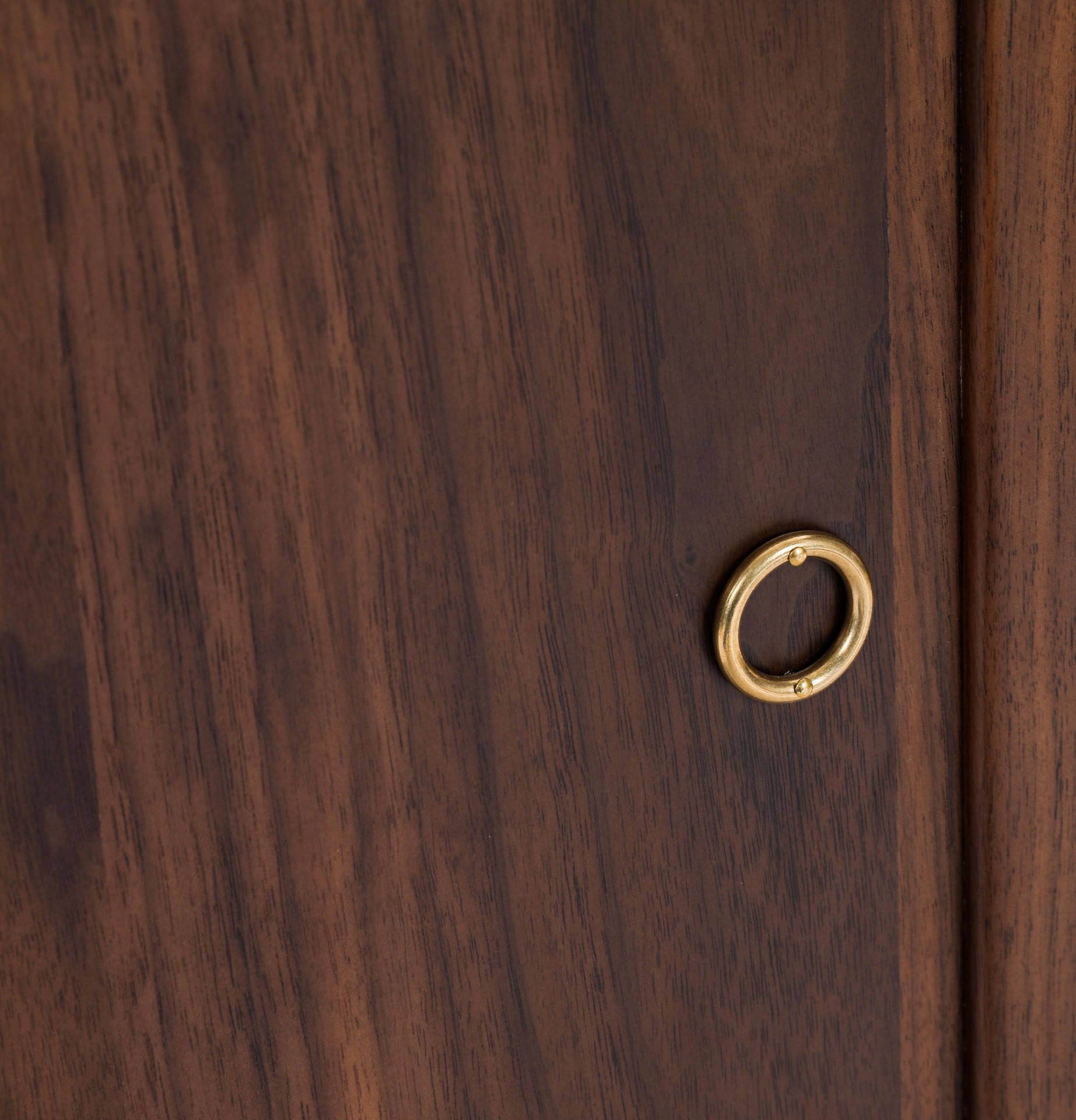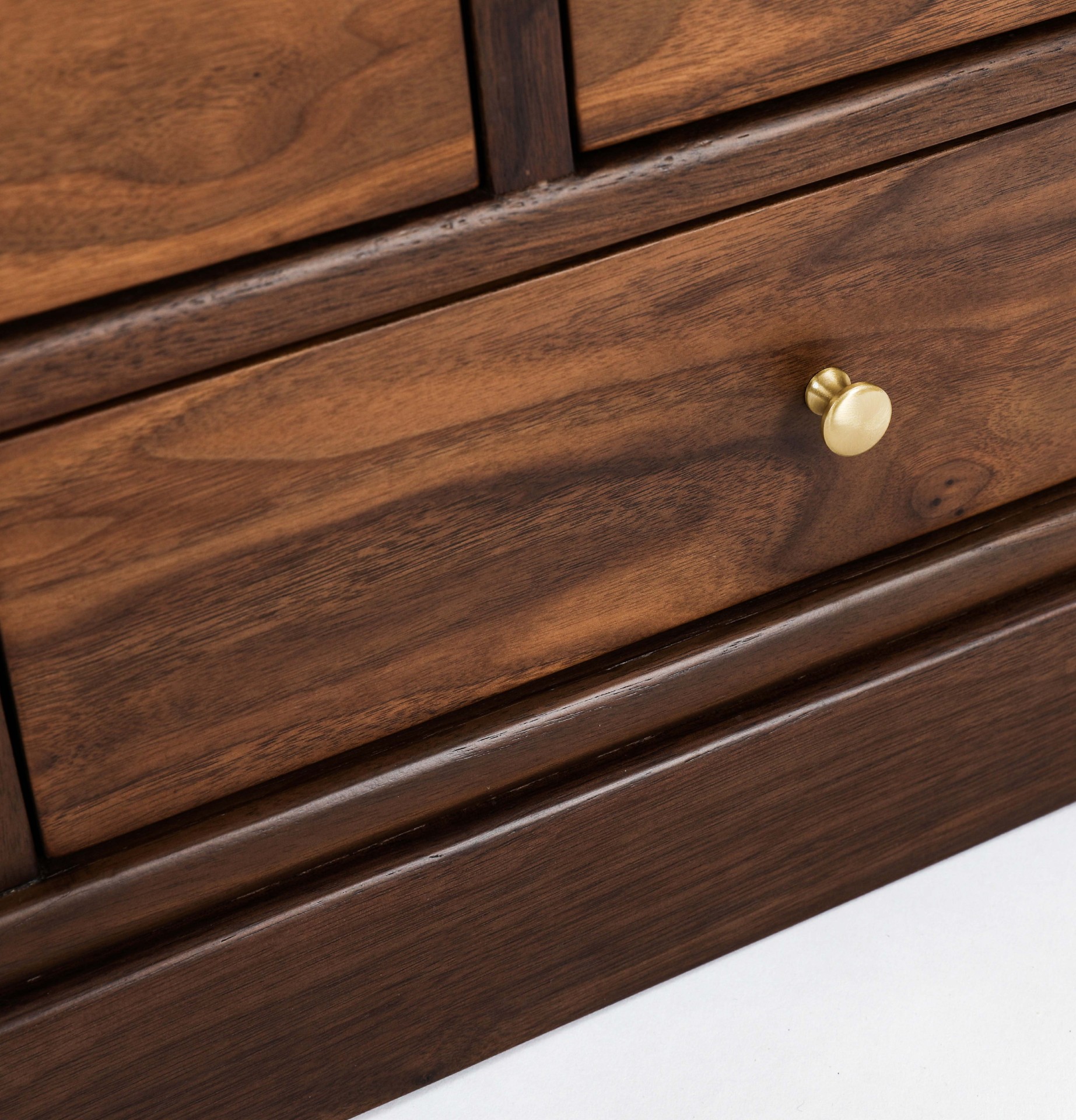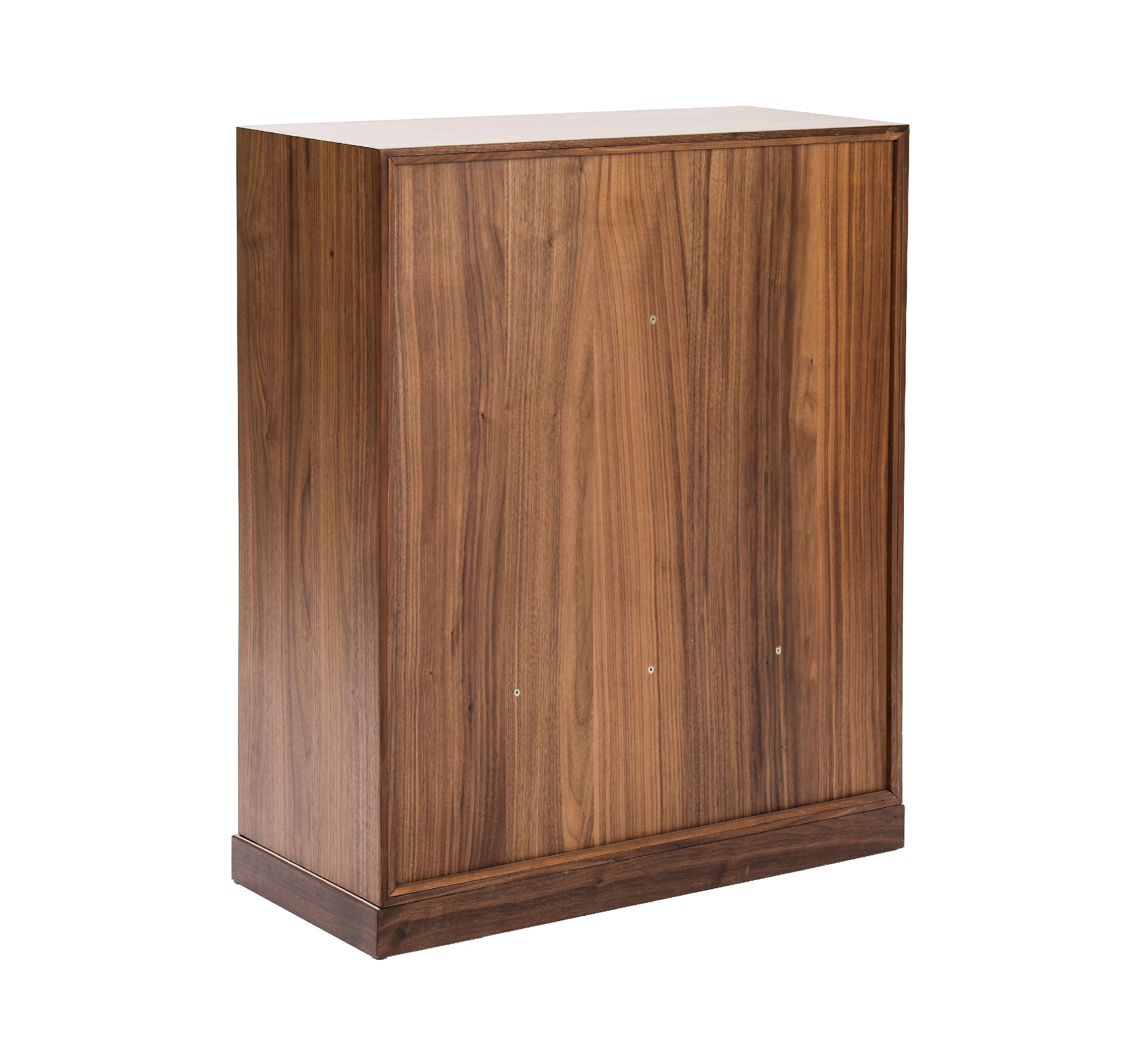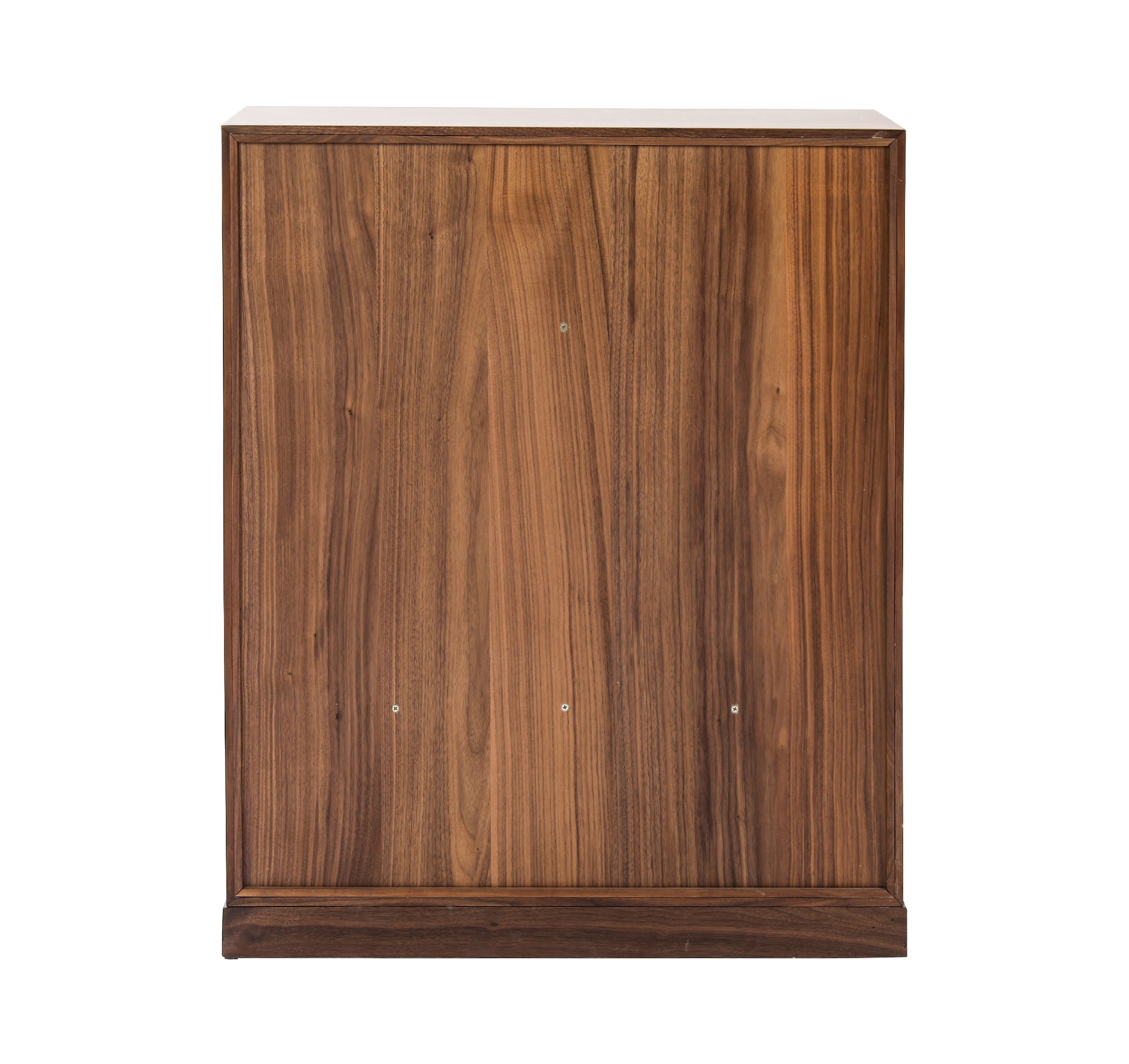 产品介绍 | Product Introduction光影斑驳,博古通今。通体北美黑胡桃打造的暗格茶柜,尺寸小巧,可以放置榻上或茶桌边收纳茶壶、茗碗、茶叶之类的茶道具。柜顶为平壤,方便放置盆栽之类的小景,柜格门板整木对剖而成,花纹对称、近乎孪生,可见用料之奢、选料之严。Light and shadow are mottled, covering the past and present. The concealed tea cabinet made of North American black walnut is compact in size and can be placed on a couch or at a tea table to store tea utensils such as teapots, tea bowls, and tea leaves. The top of the cabinet is made of Pyongyang, and the cabinet grid door panels are made of solid wood with symmetrical patterns.