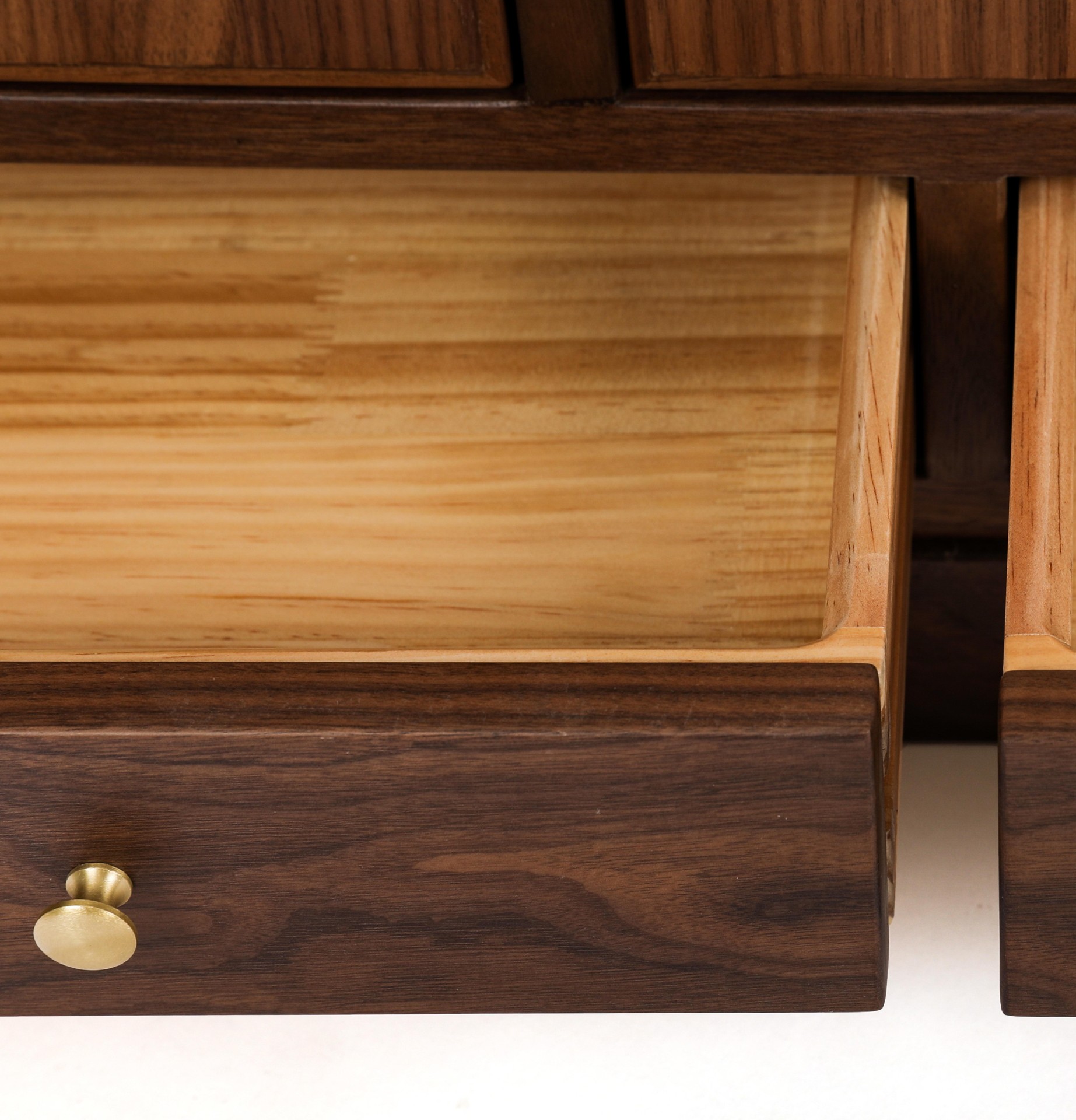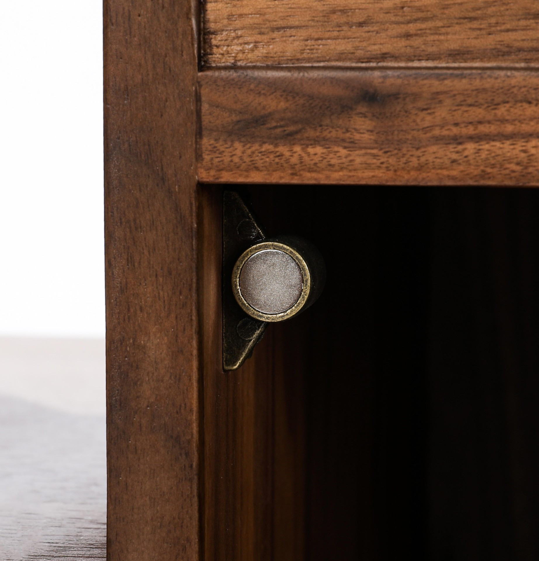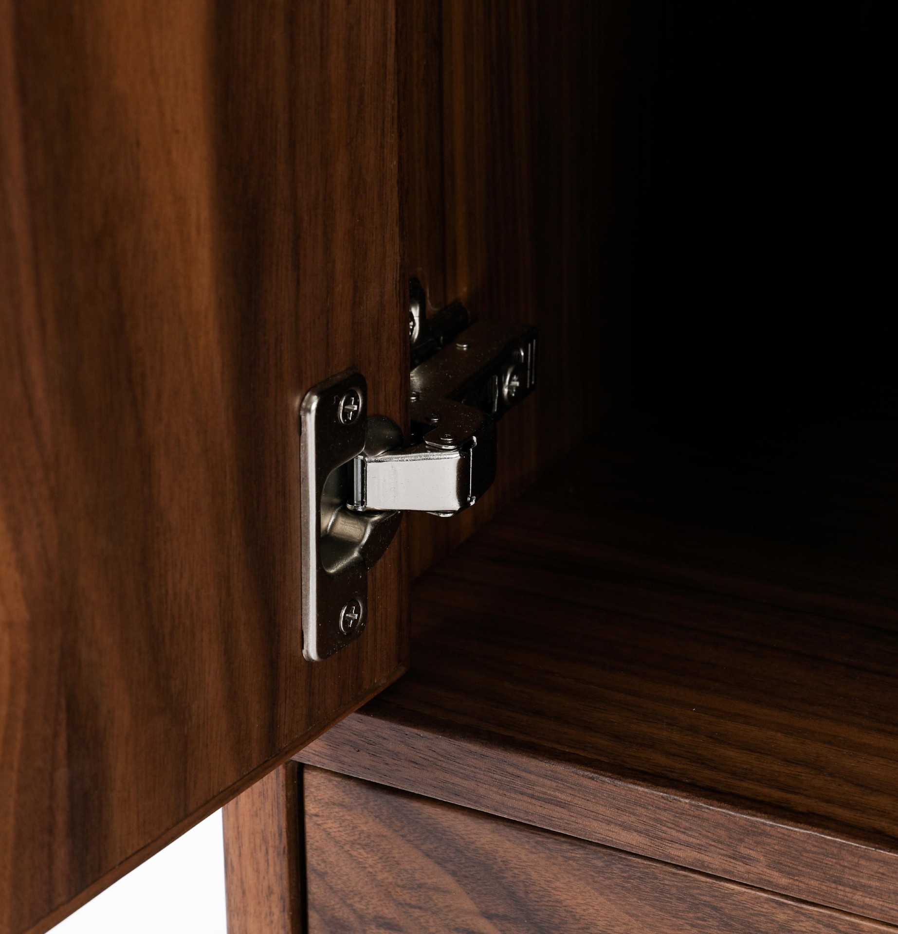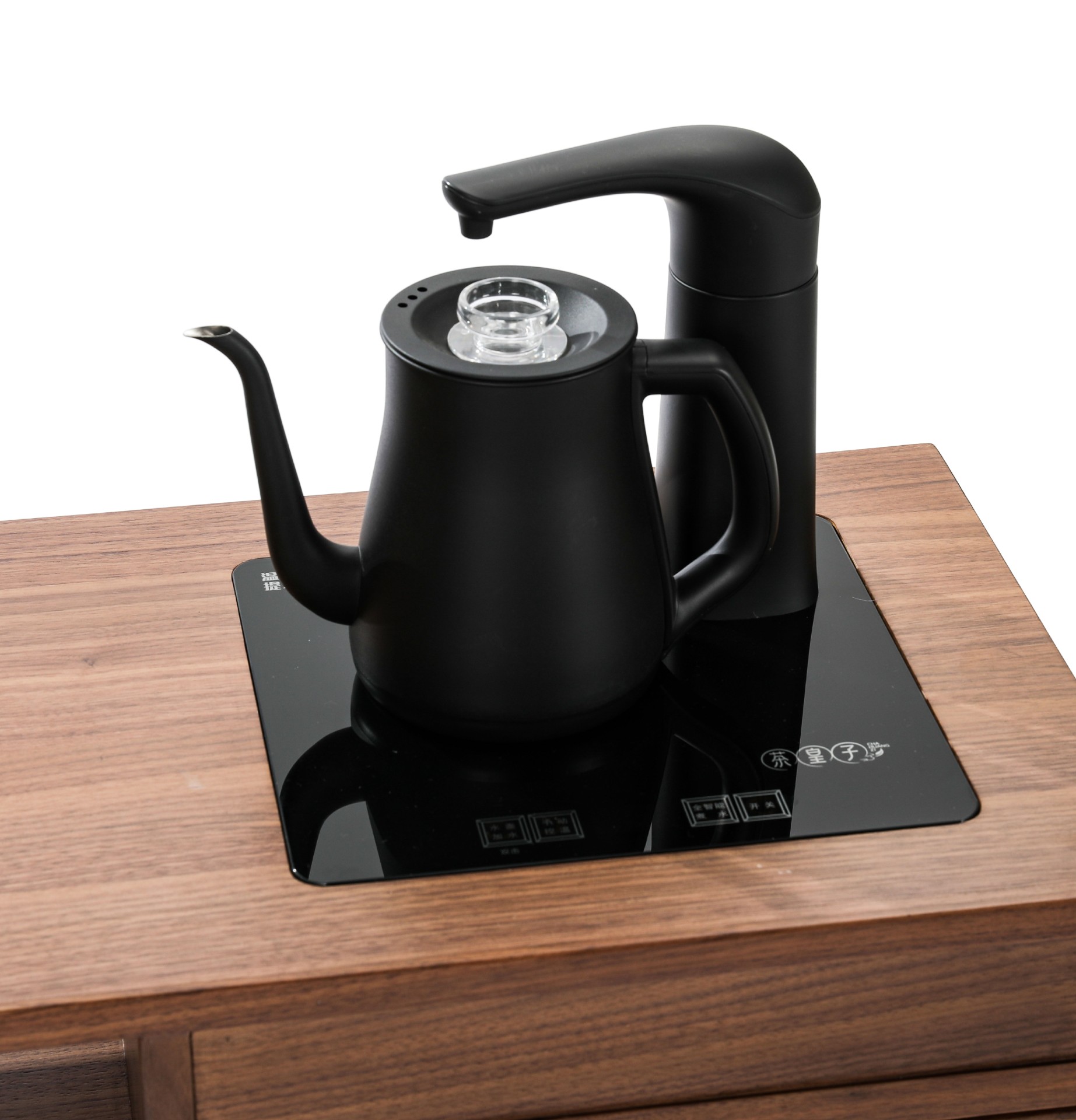 产品介绍 | Product Introduction光影斑驳,古今融合。选用北美黑胡桃,通过两种工艺展现光影变化。古朴茶柜设计与现代电煮水功能相结合,方便快捷。明格可收纳常用茶器,暗格可藏茶叶防潮防灰,右侧大柜门隐藏水桶,既美观又便捷。底部小抽屉增加额外收纳,打造整洁雅致的饮茶空间。Blending two crafting techniques to showcase the play of light and shadow, the traditional tea cabinet design integrates modern electric kettle functionality for added convenience. Open compartments store tea utensils, while hidden drawers protect tea leaves from moisture. A large cabinet door on the right cleverly conceals the water container, and small drawers at the bottom offer additional storage, creating a tidy and elegant tea-drinking space.