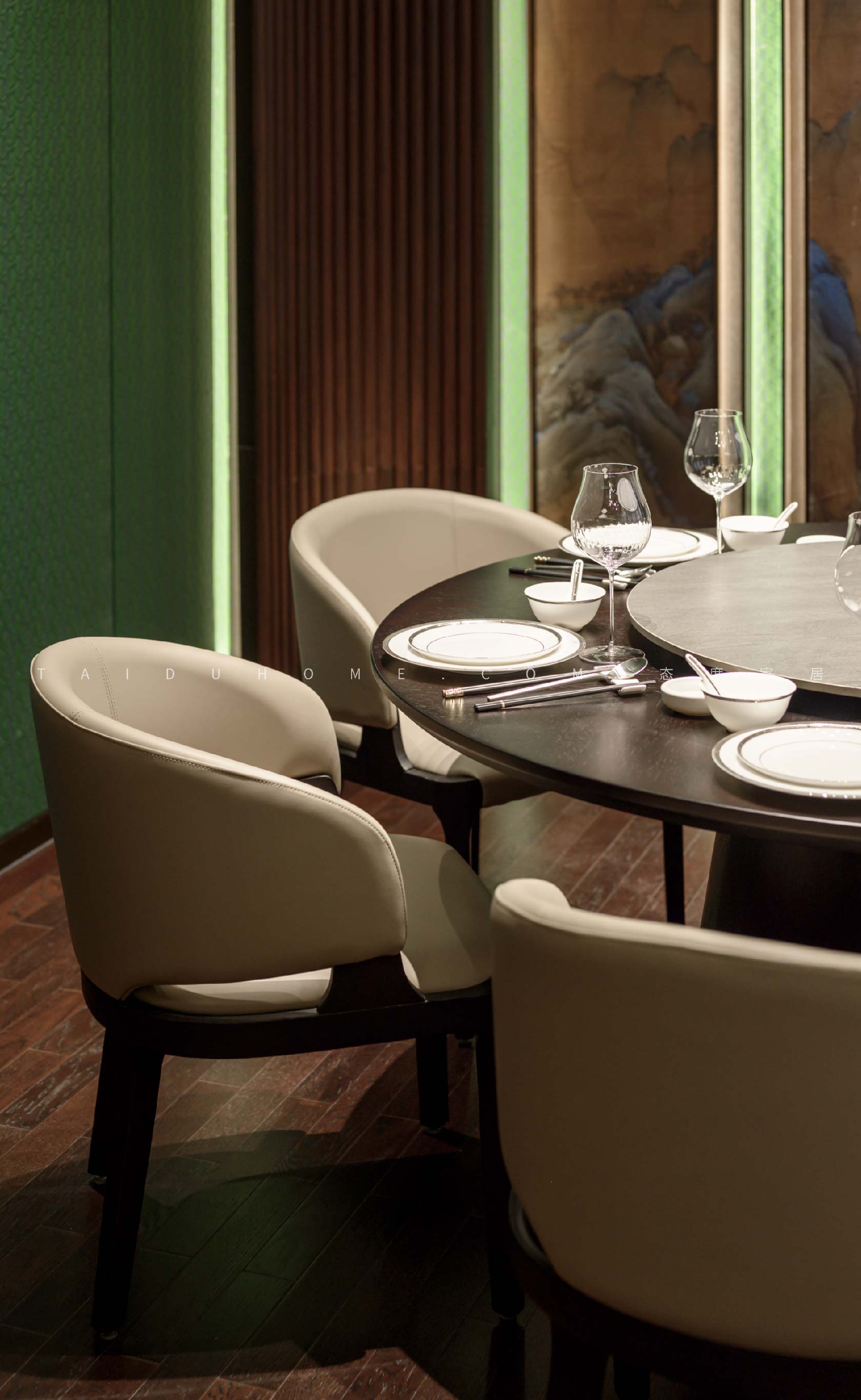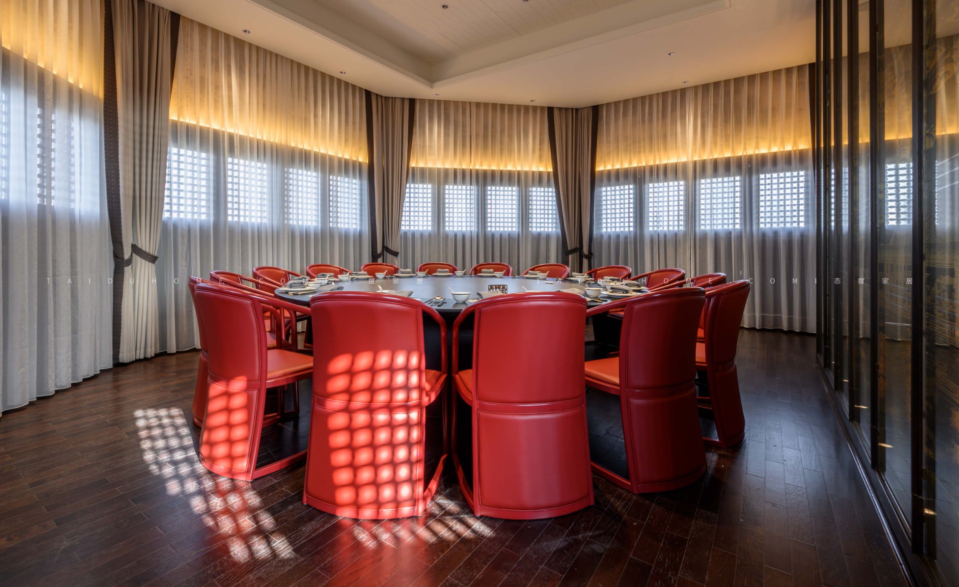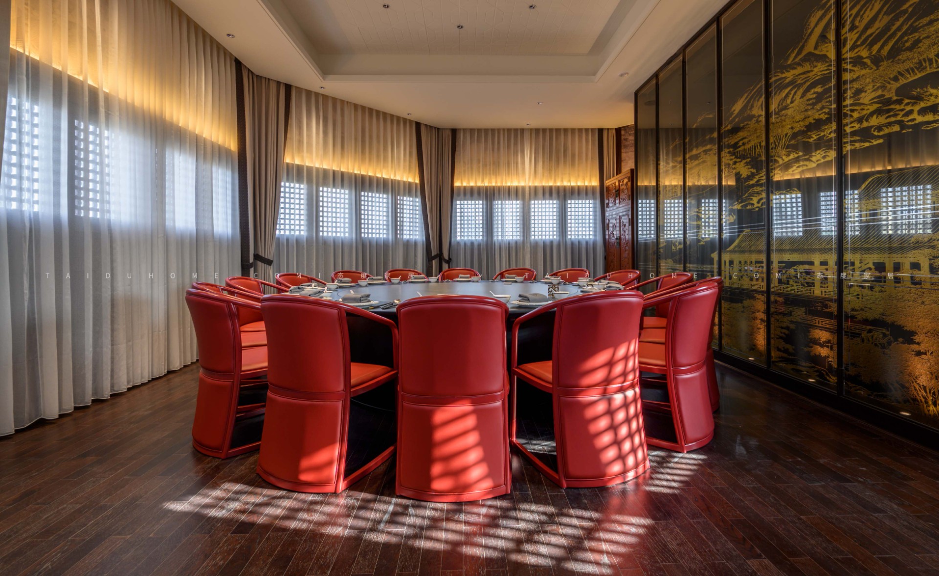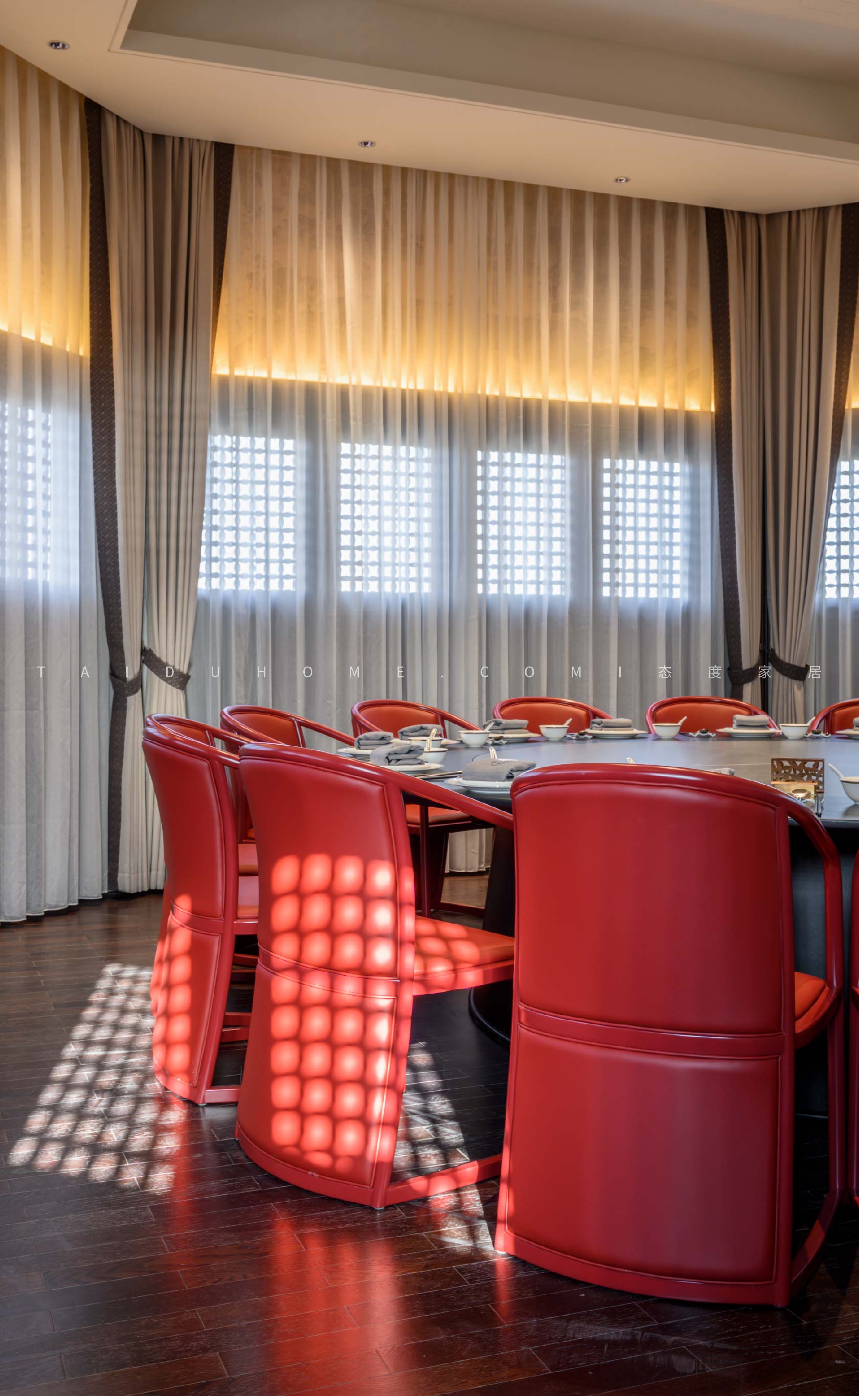 Paired with beige Kaiser leisure chairs in the Songhua green private room, green represents freshness and life, as well as health and vitality.The red Chuandu chair, providing a unique experience in terms of sensory, visual, and comfort.