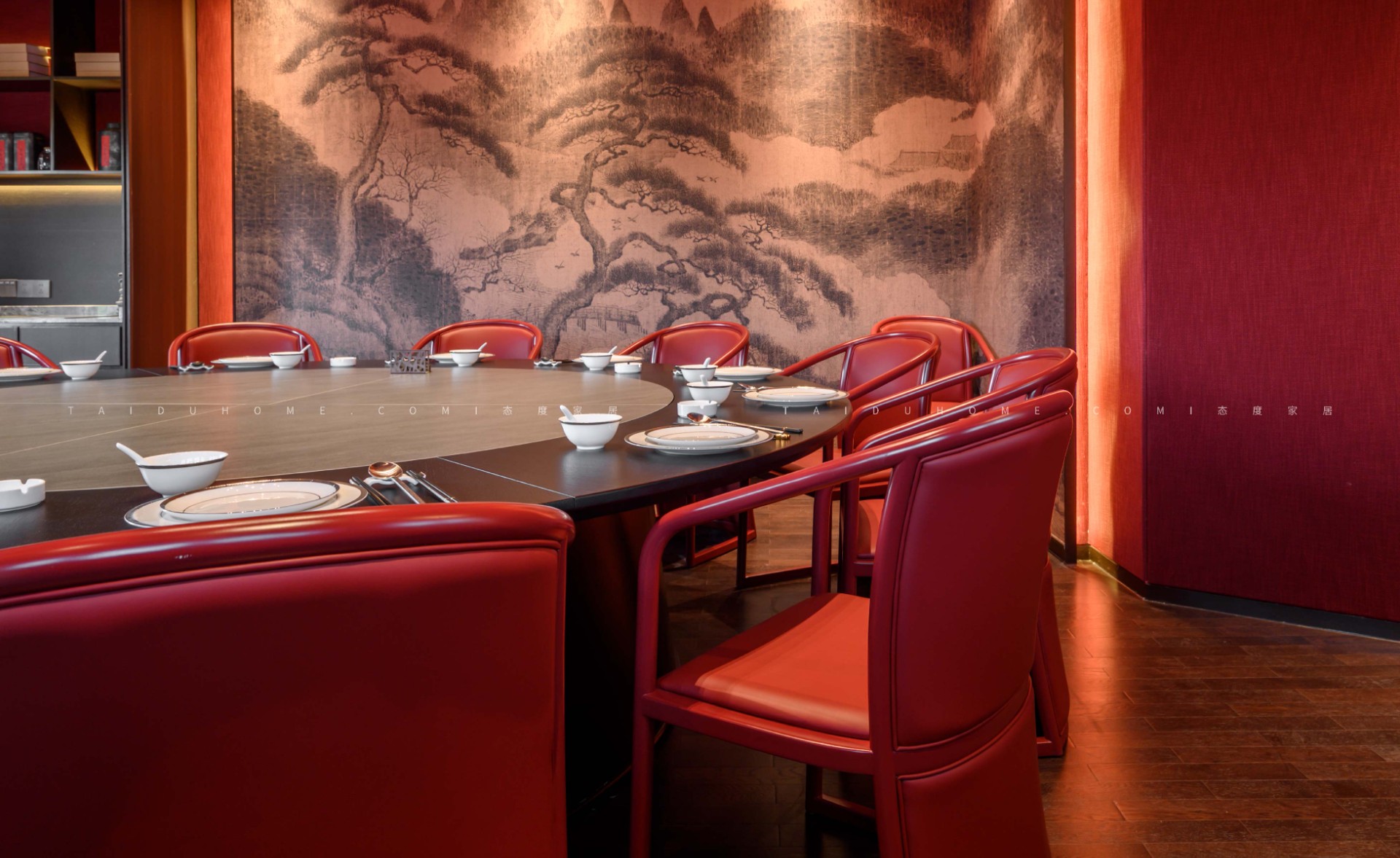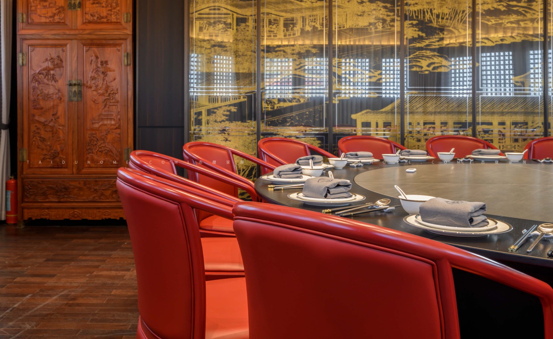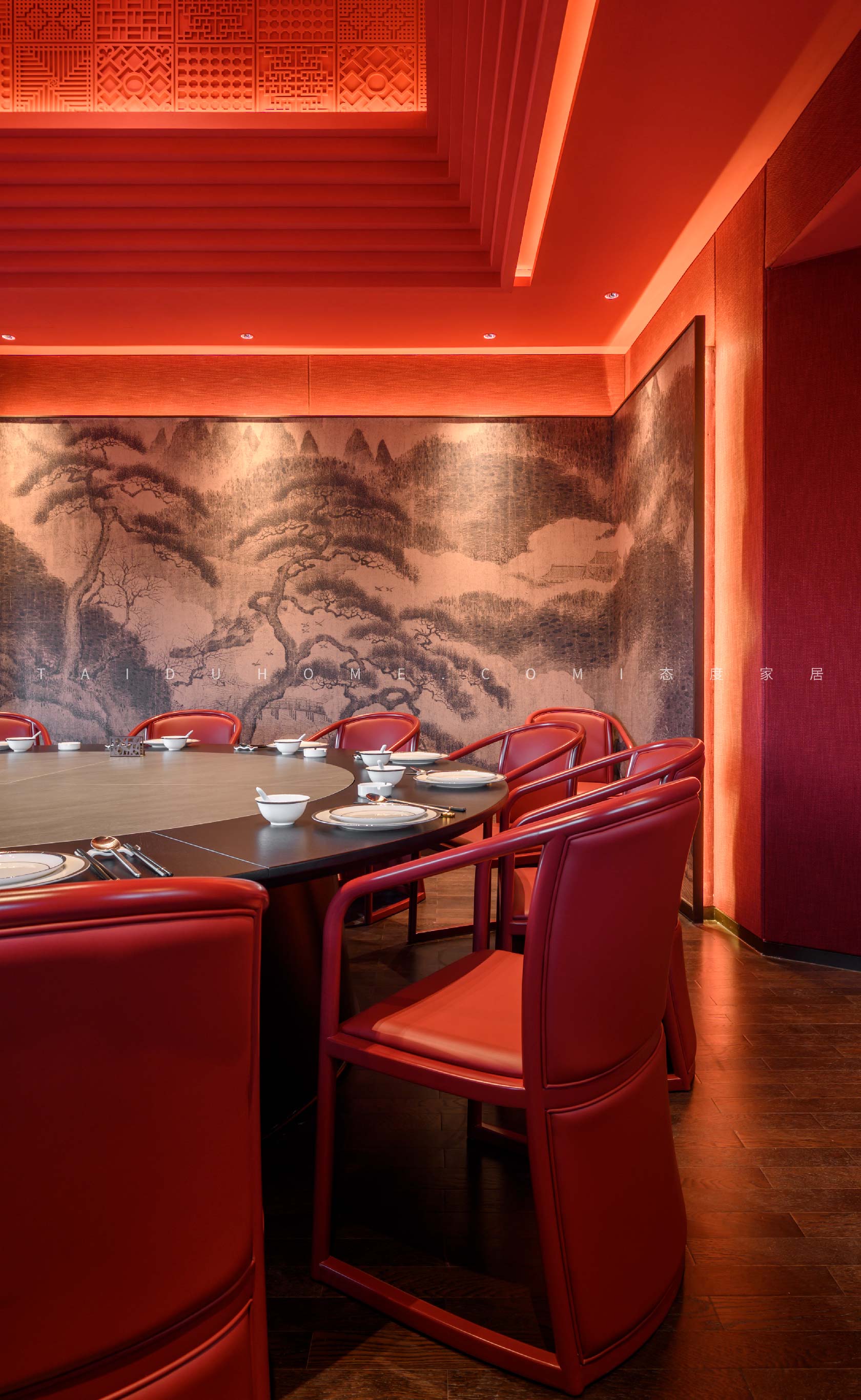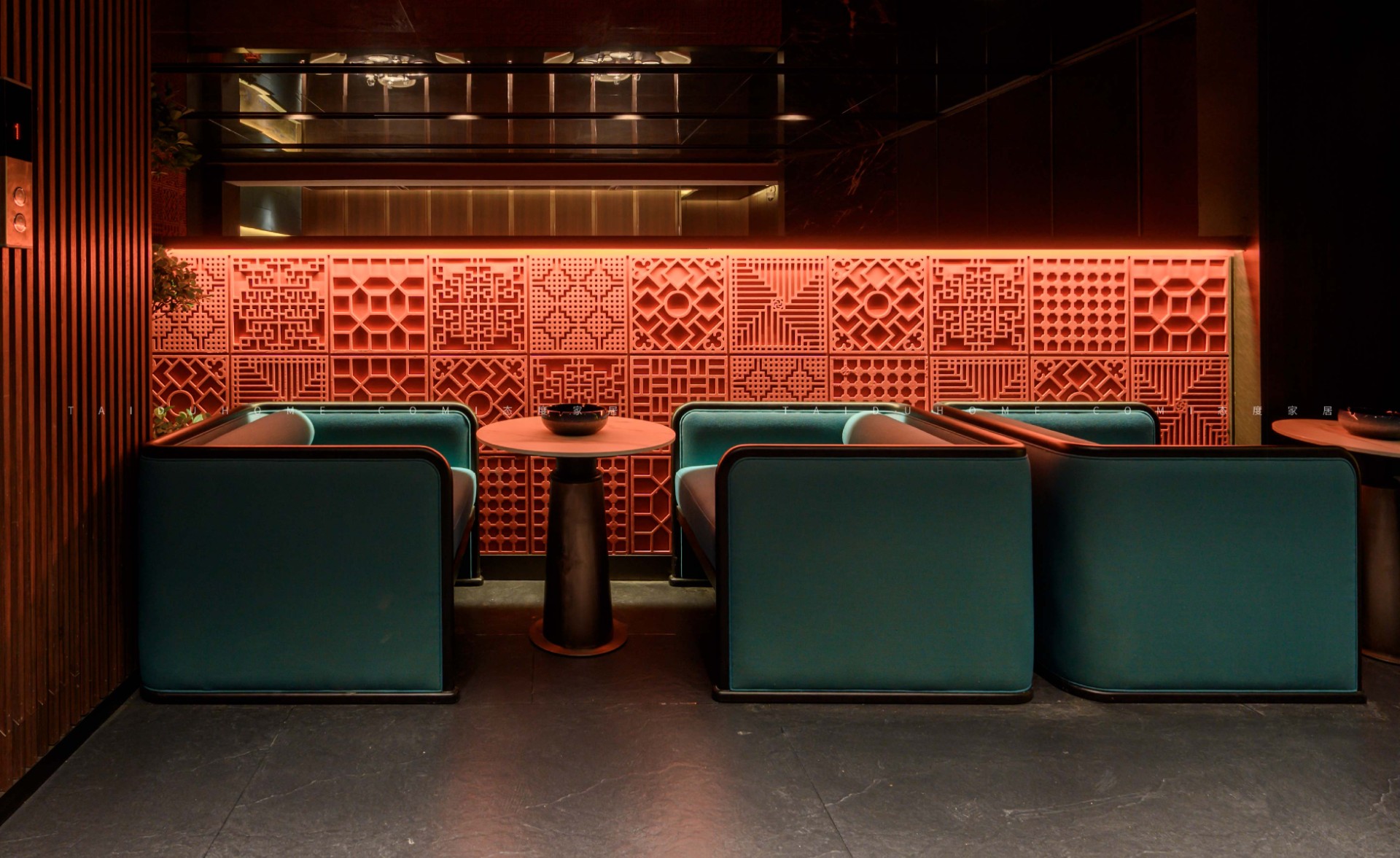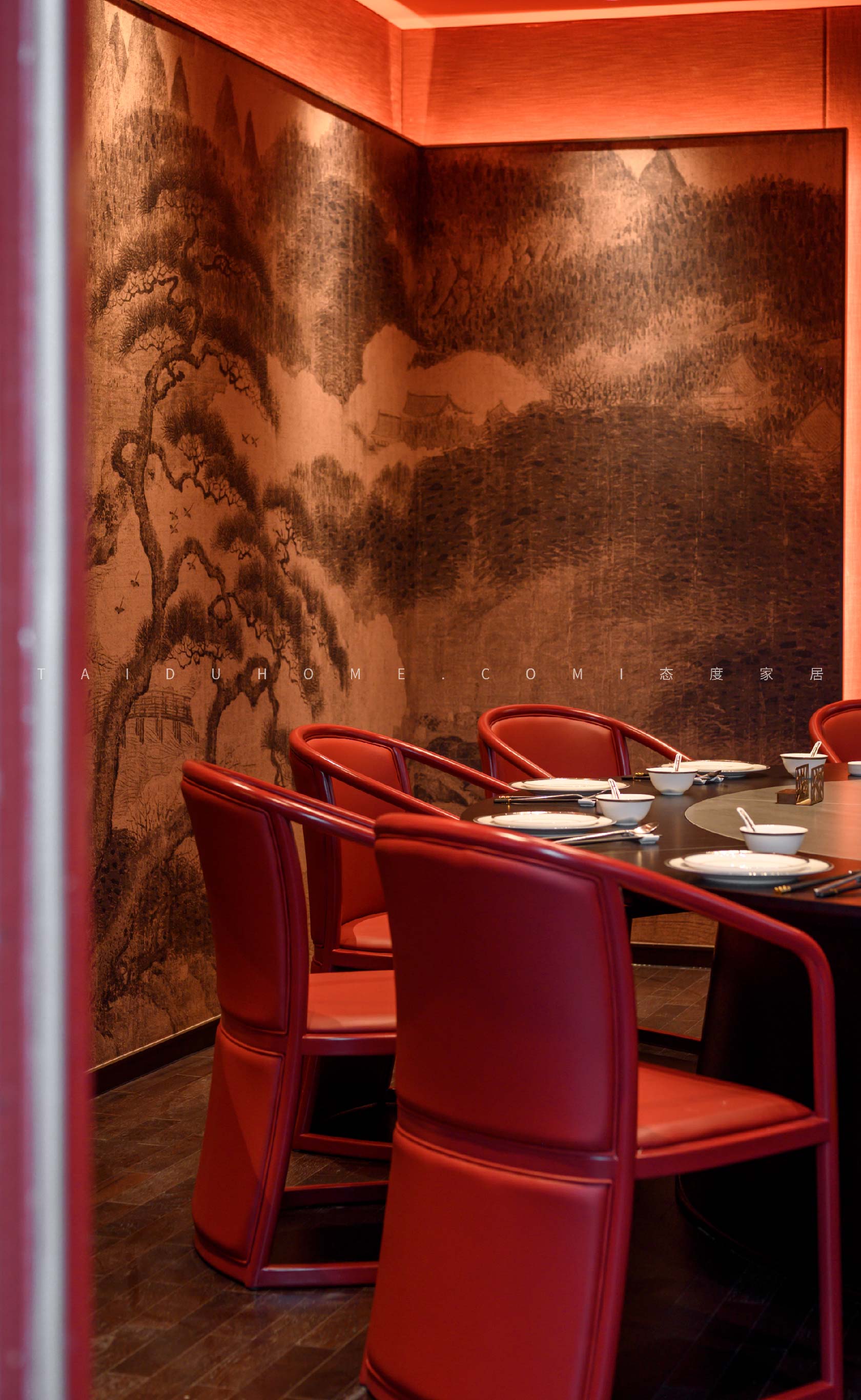 Paired with beige Kaiser leisure chairs in the Songhua green private room, green represents freshness and life, as well as health and vitality.The red Chuandu chair, providing a unique experience in terms of sensory, visual, and comfort.