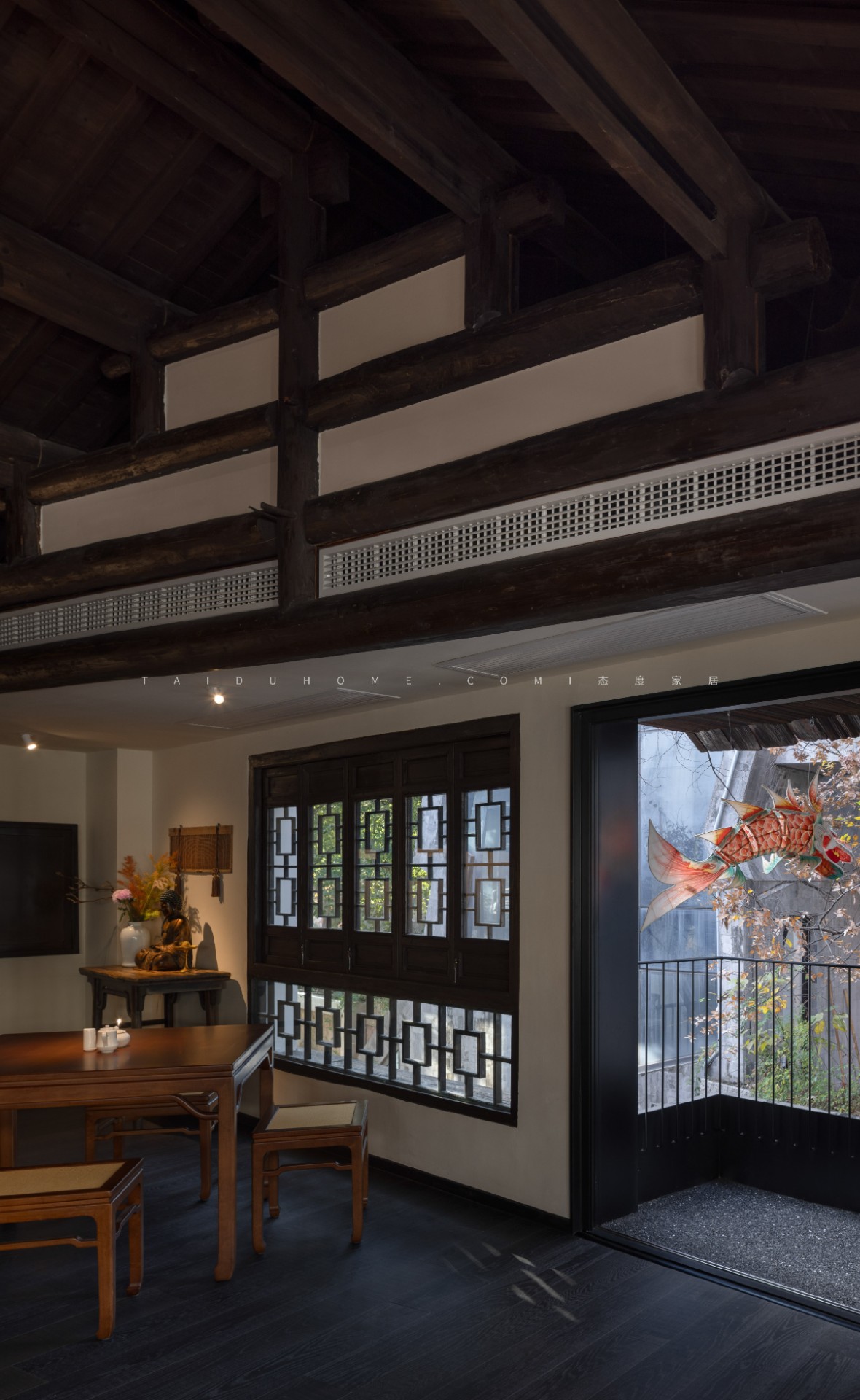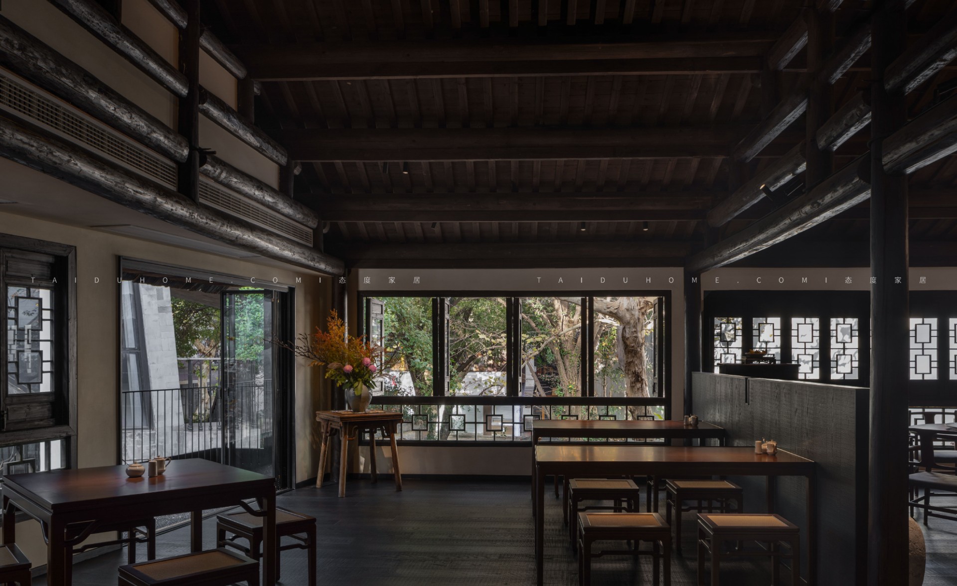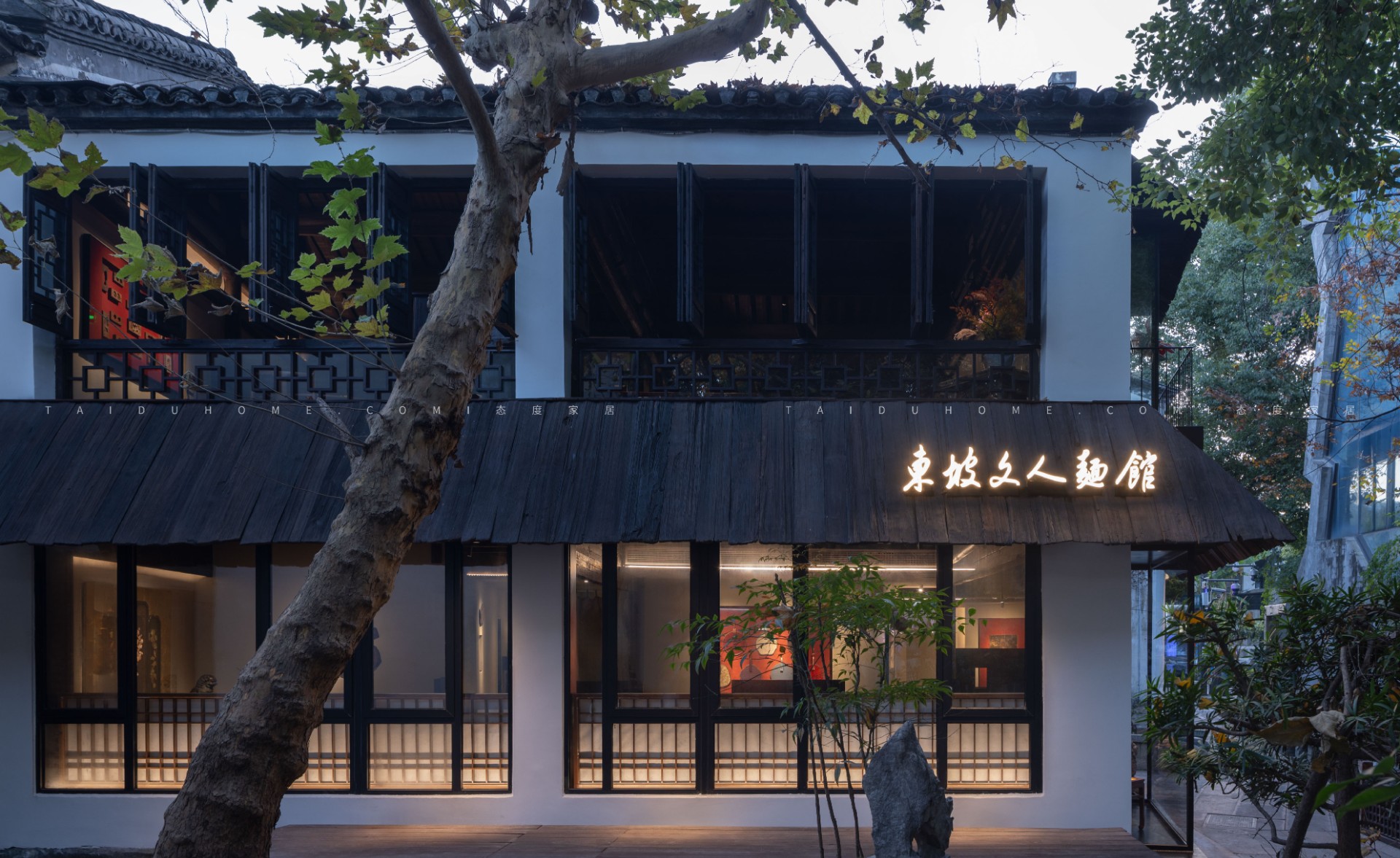 白墙黑瓦,木花窗,没有华丽的装饰,只有最质朴的原木温润。推窗而望,纸龙悬窗与石板街景交相辉映,仿佛时光倒流。坐下来,品尝一碗面,感受时光流转,回味这座城市的千年文化。