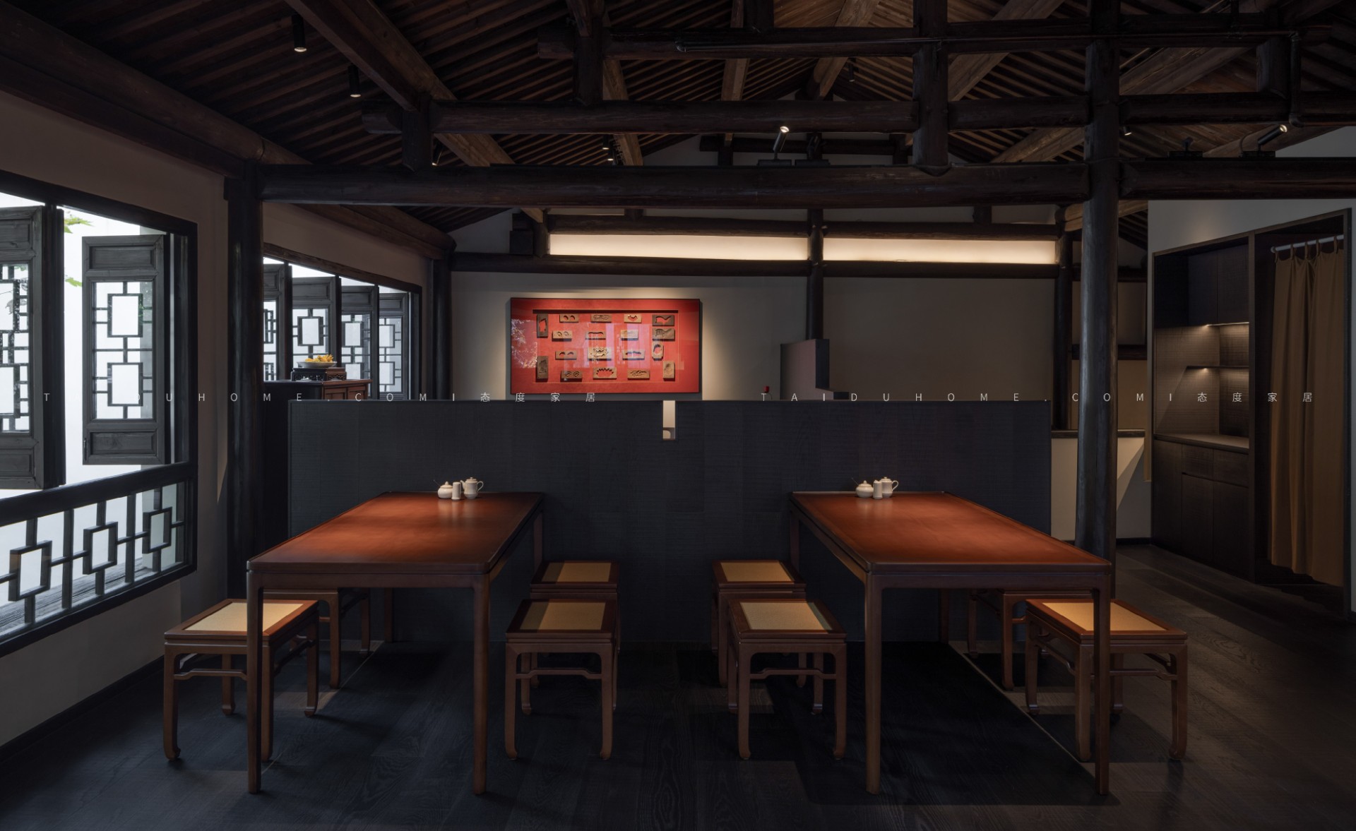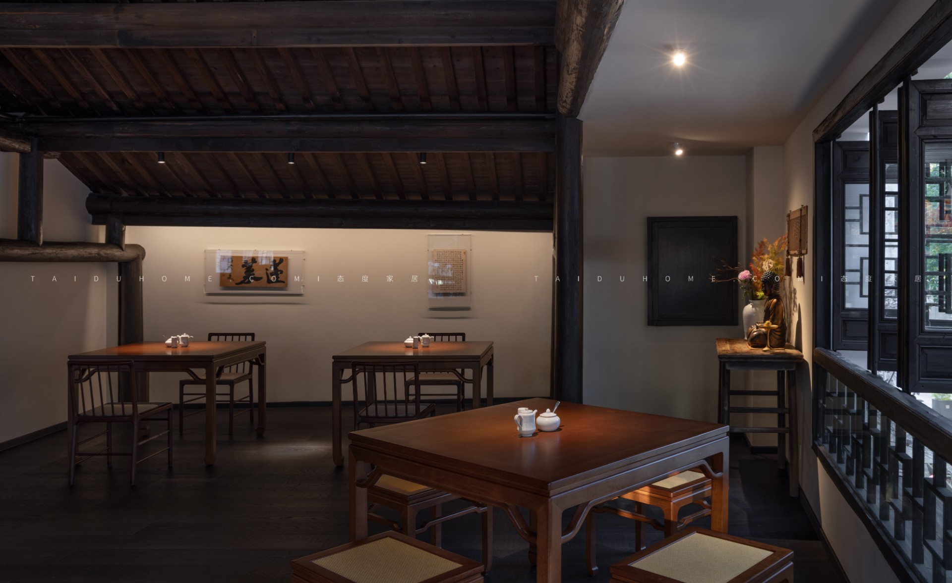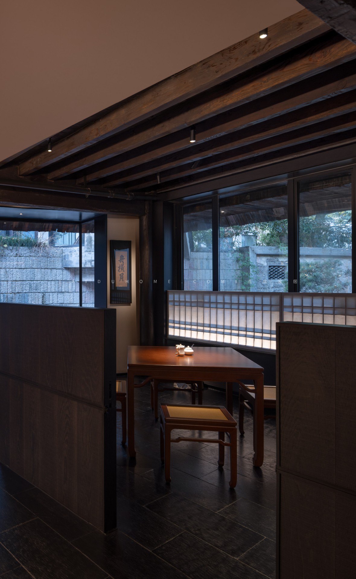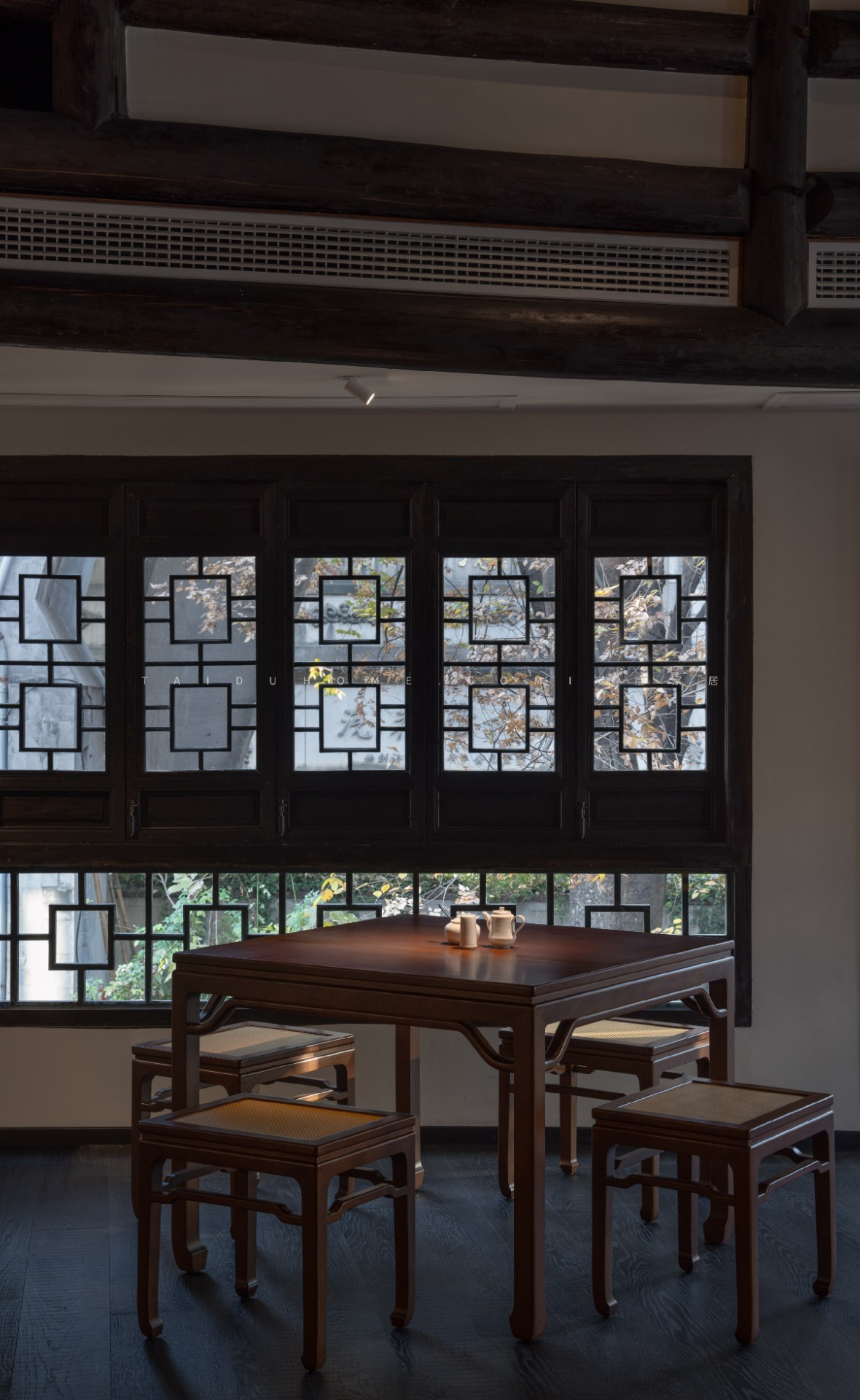 白墙黑瓦,木花窗,没有华丽的装饰,只有最质朴的原木温润。推窗而望,纸龙悬窗与石板街景交相辉映,仿佛时光倒流。坐下来,品尝一碗面,感受时光流转,回味这座城市的千年文化。