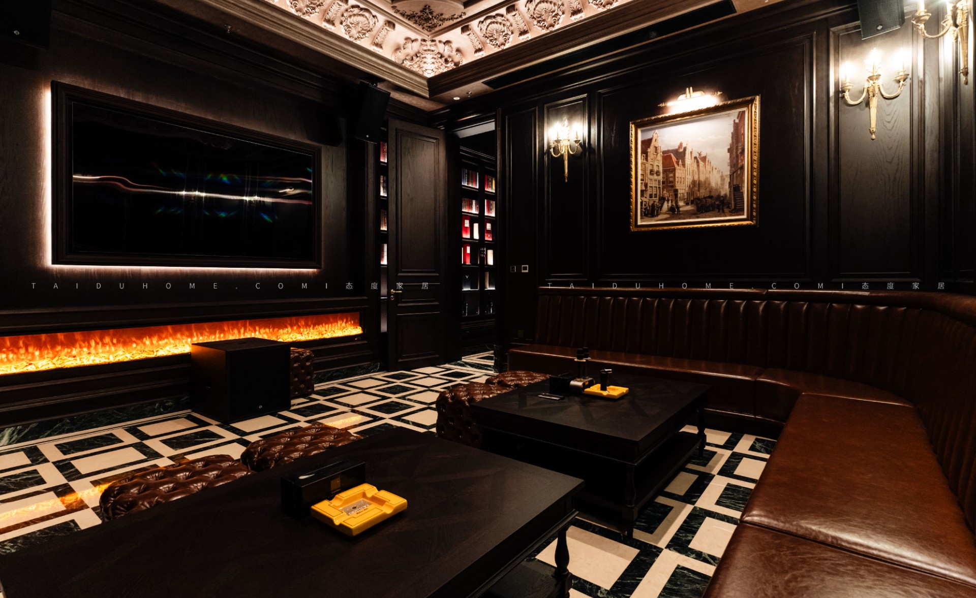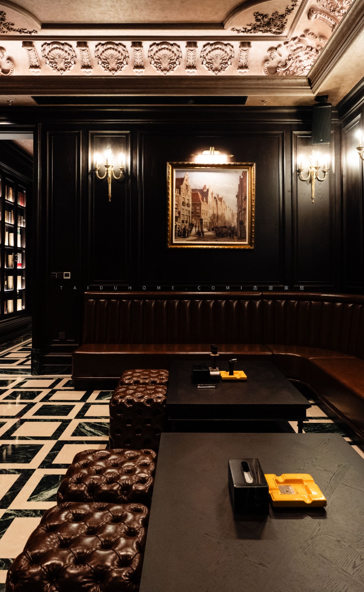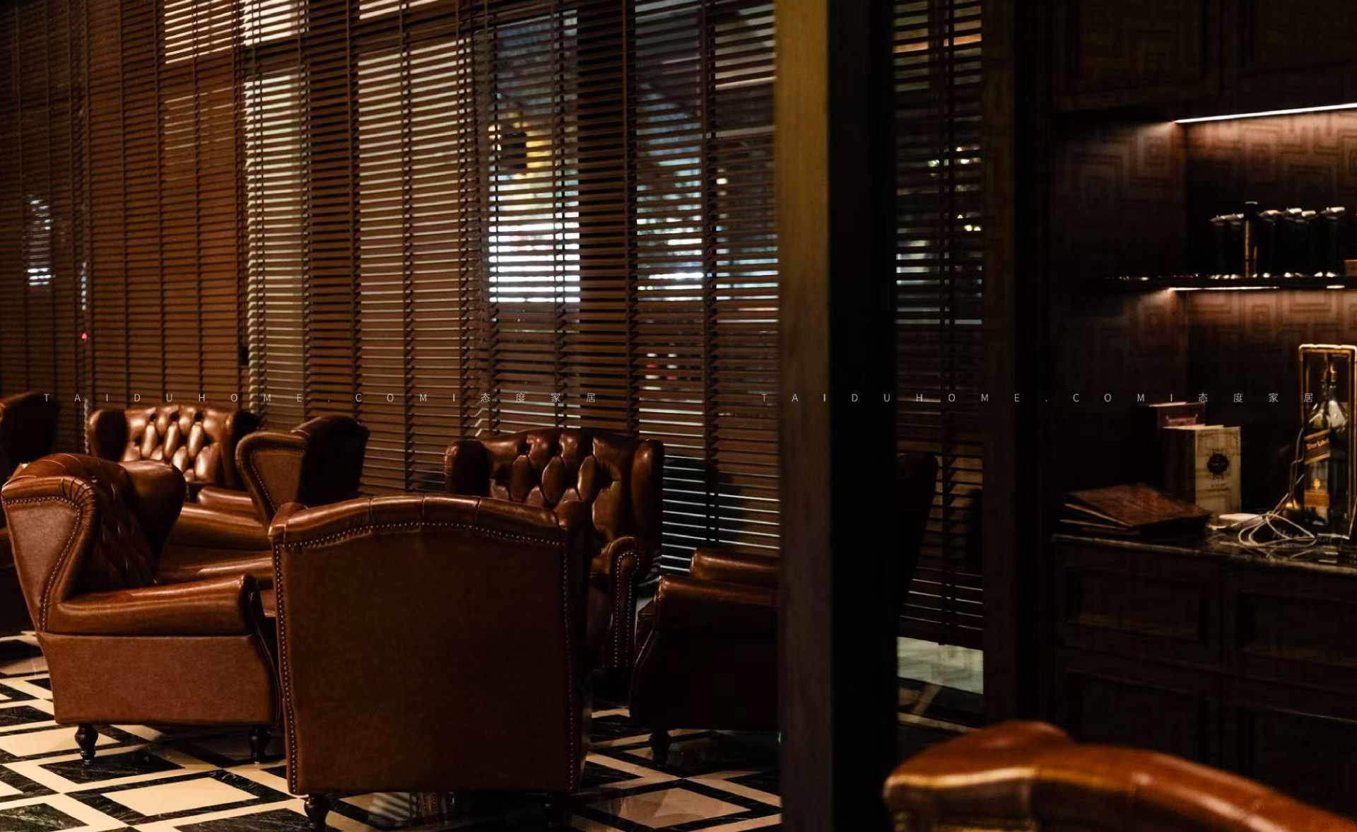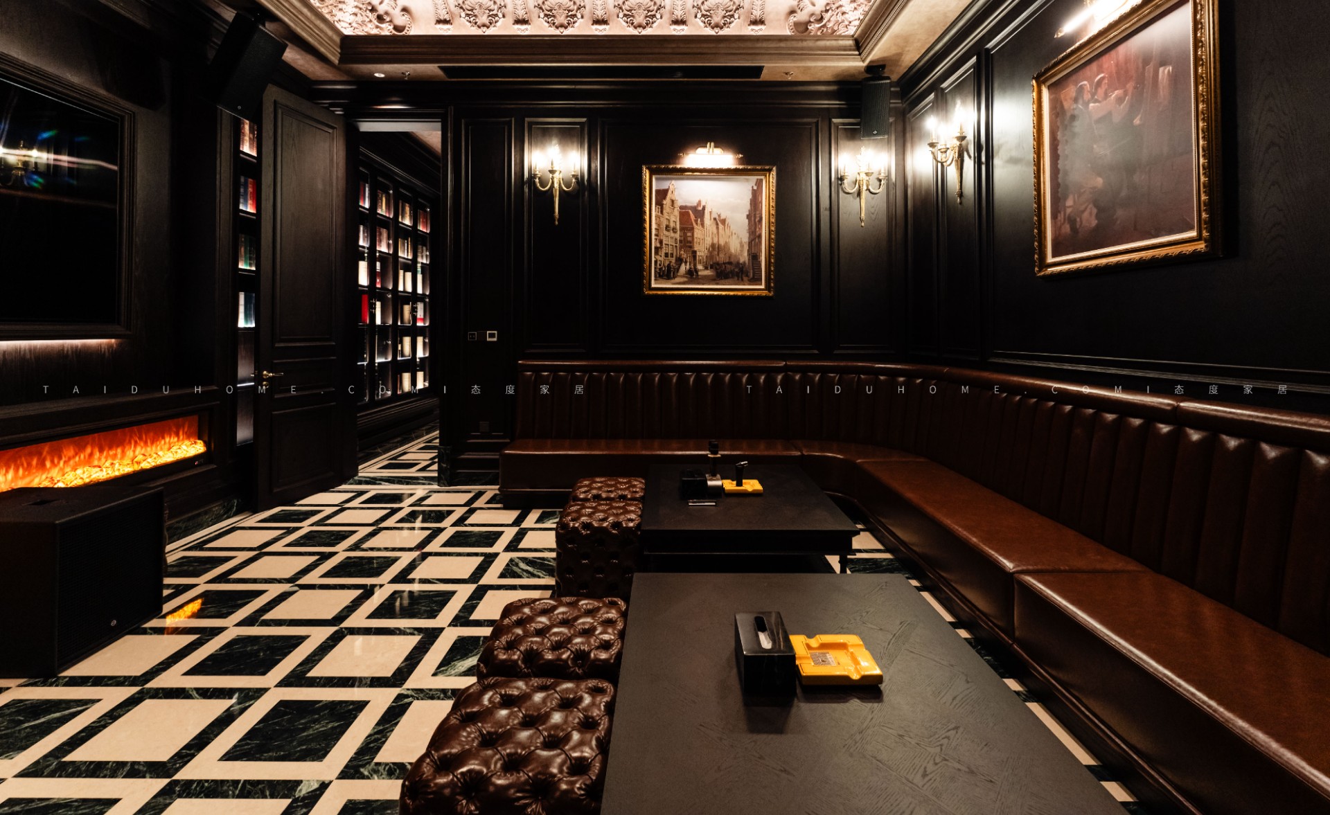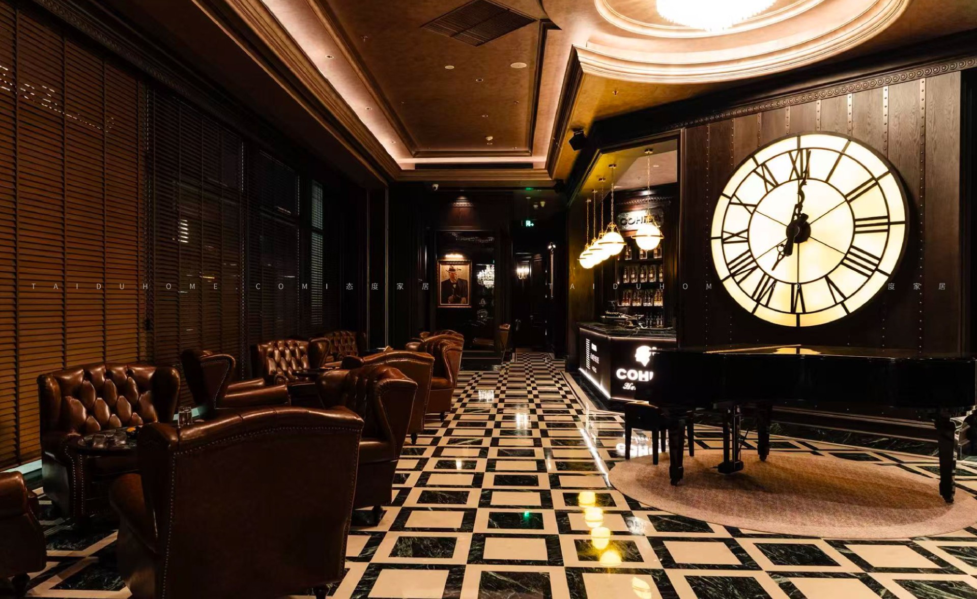 驾雾茄房将奢华与力量感完美结合,展现了意式轻奢风格的极致魅力,恍如《教父》中的经典场景重现,正如那句经典台词,“我会给你一个无法拒绝的提议”,在这里,每一位宾客都能感受到一种无法抗拒的诱惑。这里不仅是威士忌与雪茄爱好者的理想之地,更是一个放松享受的理想场所。