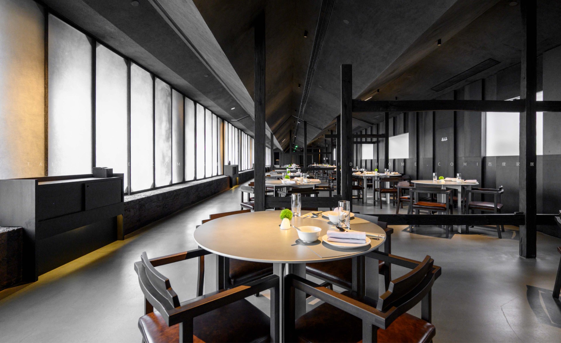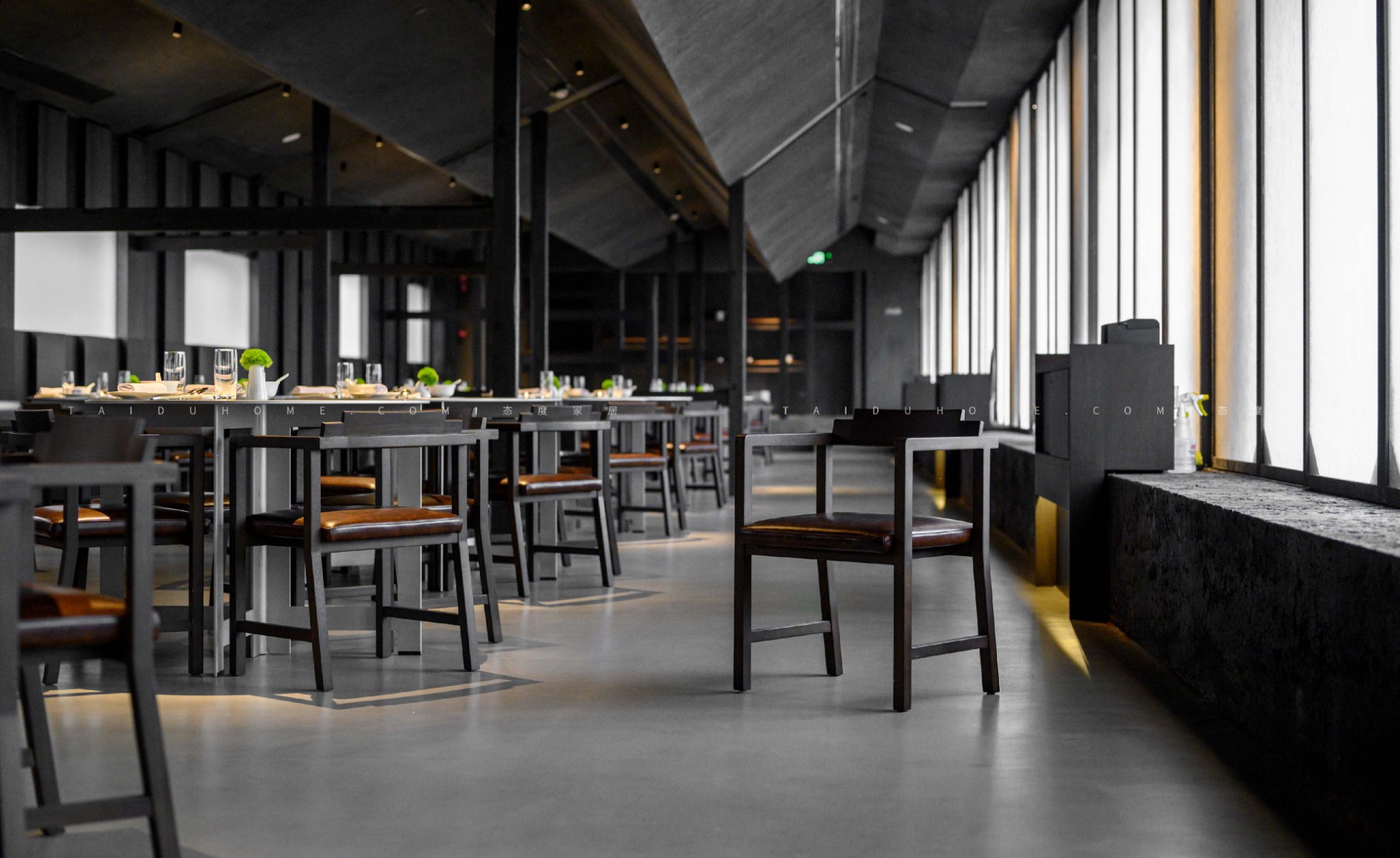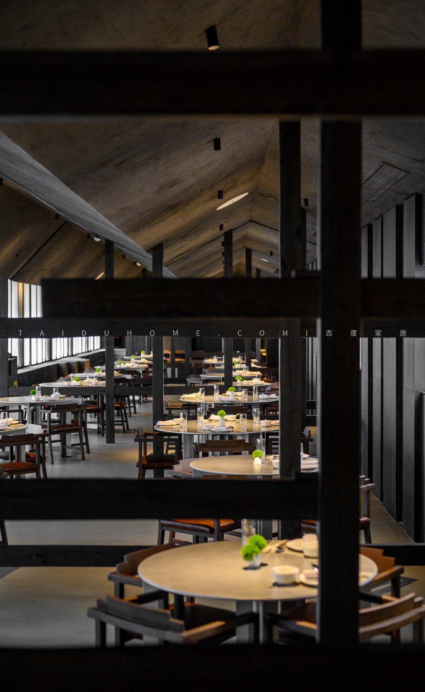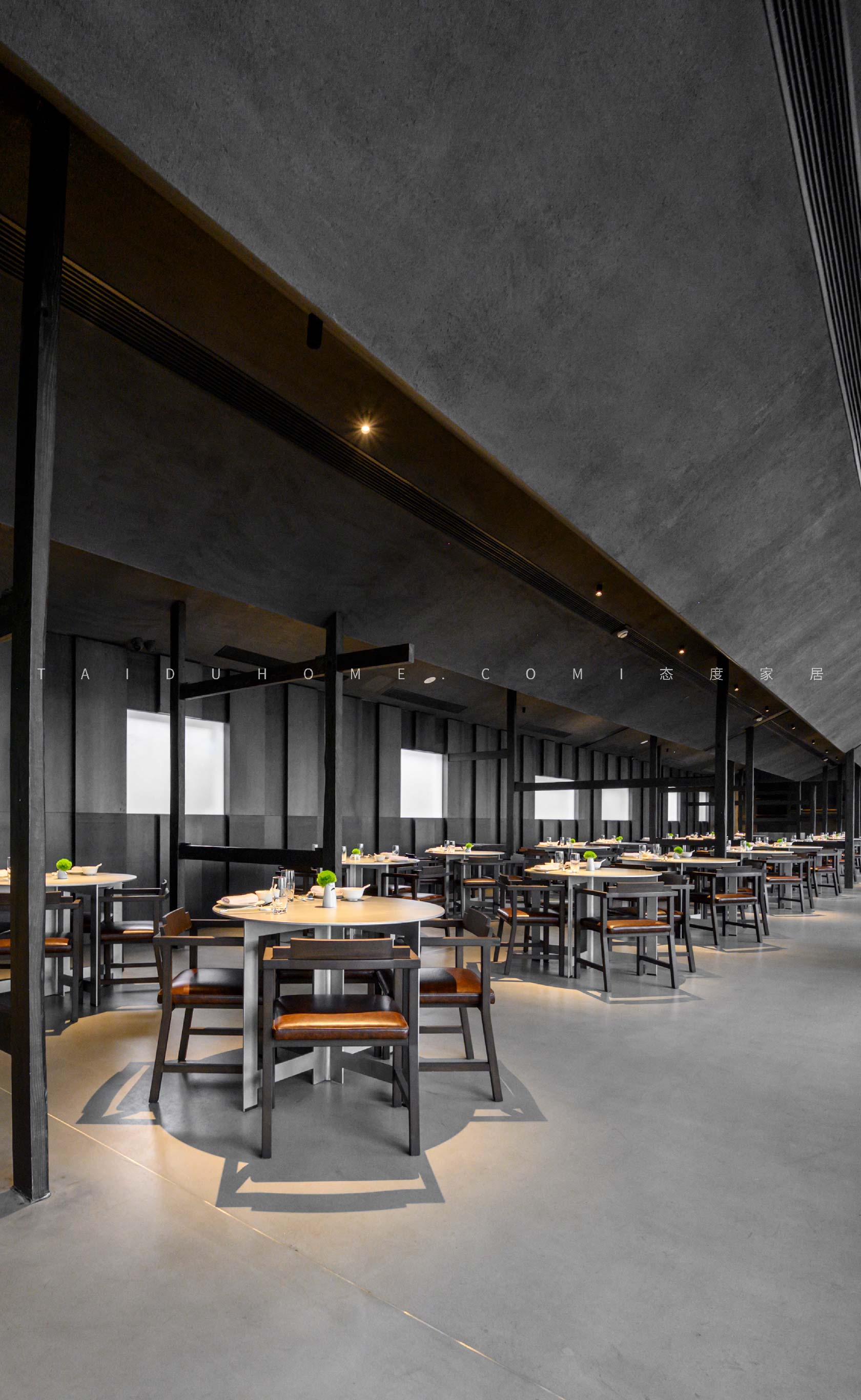 The structure of the entire space is basically made of old wooden beams and crossbeam frames recycled from local old houses. The eye-catching colors are all dark, and the walls and ceilings are made of cement materials. The semi transparent "window" on that side is even more refreshing. During the day, natural light gently reflects on the concrete floor, presenting a vast sense of interstellar space. At night, the dim yellow lights were like moonlight, with people passing by and silhouettes hazy and beautiful.