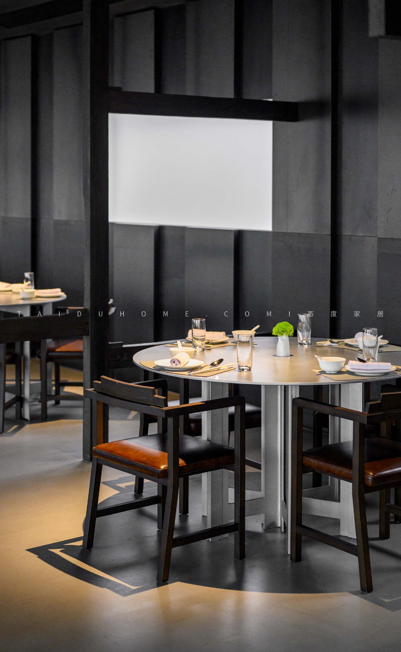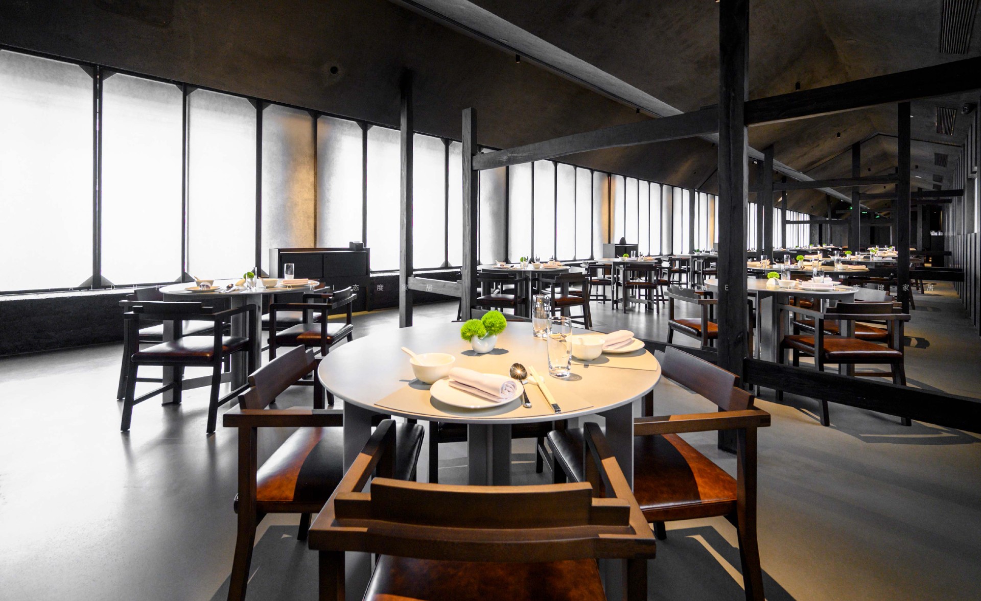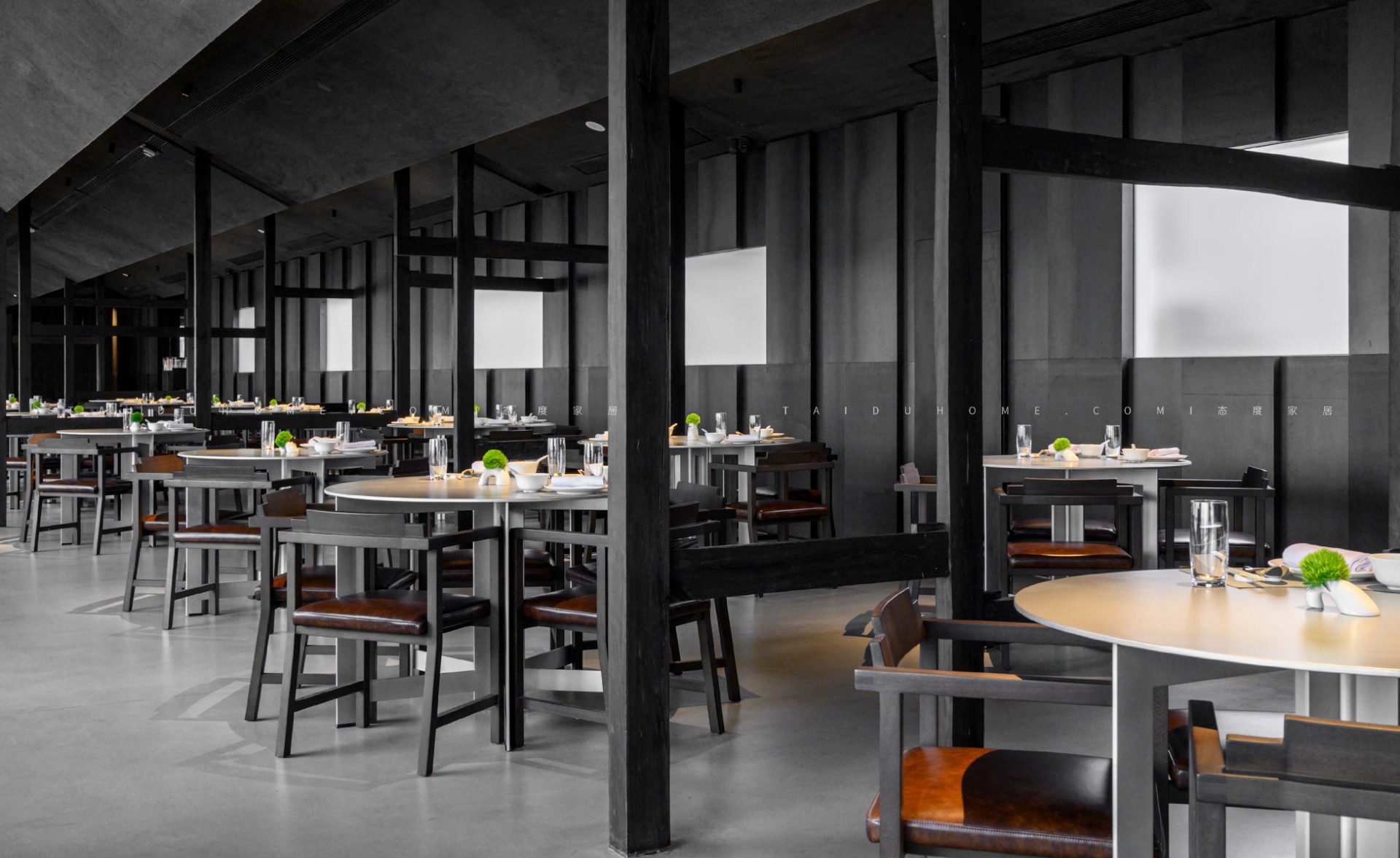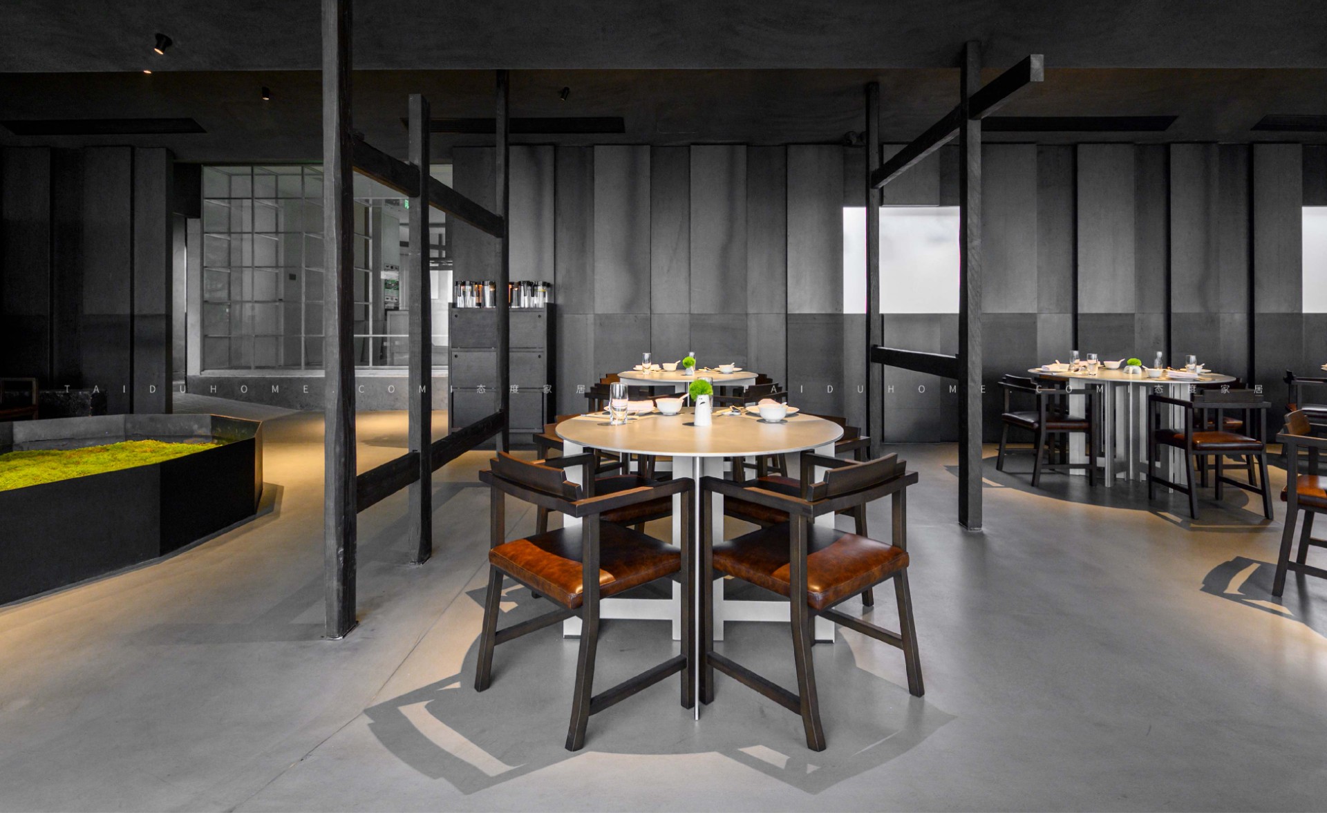The structure of the entire space is basically made of old wooden beams and crossbeam frames recycled from local old houses. The eye-catching colors are all dark, and the walls and ceilings are made of cement materials. The semi transparent "window" on that side is even more refreshing. During the day, natural light gently reflects on the concrete floor, presenting a vast sense of interstellar space. At night, the dim yellow lights were like moonlight, with people passing by and silhouettes hazy and beautiful.