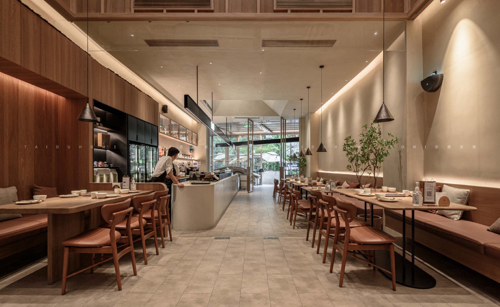 The New Yuyuan Letigang Store takes "Yu" as the design clue, and the overall tone adopts a warm rice coffee color scheme, combined with indoor green plant landscaping design techniques, to create a simple and relaxed dining atmosphere.