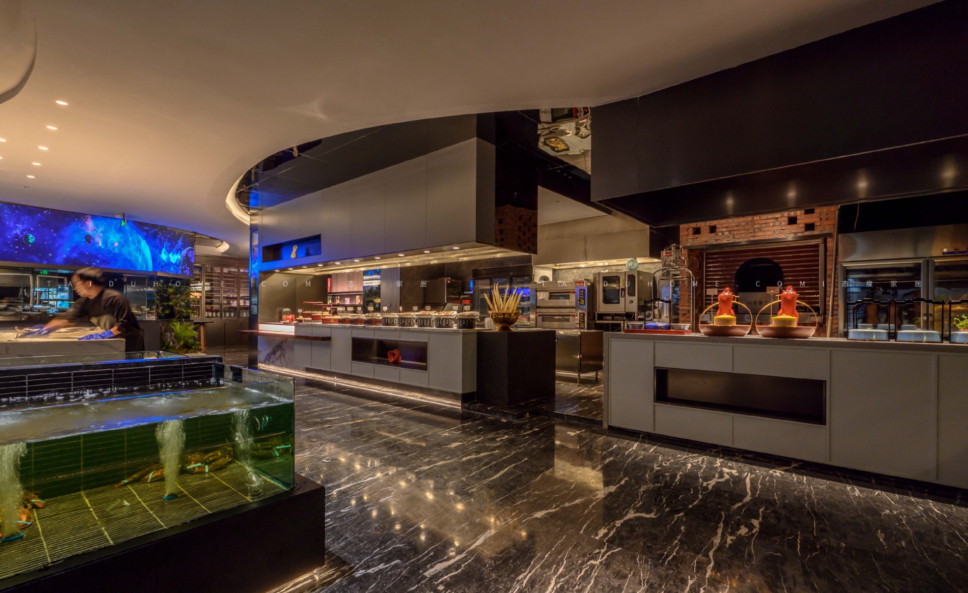 Those who love to eat small seafood in Hangzhou must know about Little Chef Catering. In this project case, Dongxiaoxian is an upgraded brand under Little Chef, located on the third floor of Xiaoshan Shanshui Times Building. The project covers an area of nearly 2000 square meters and has a total of 19 private rooms, making it the preferred restaurant for business banquets.