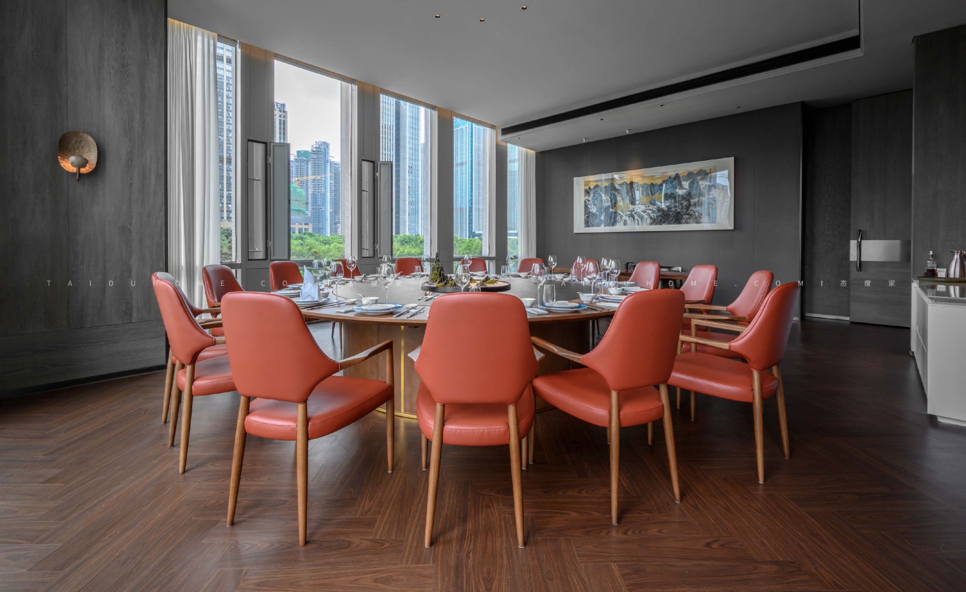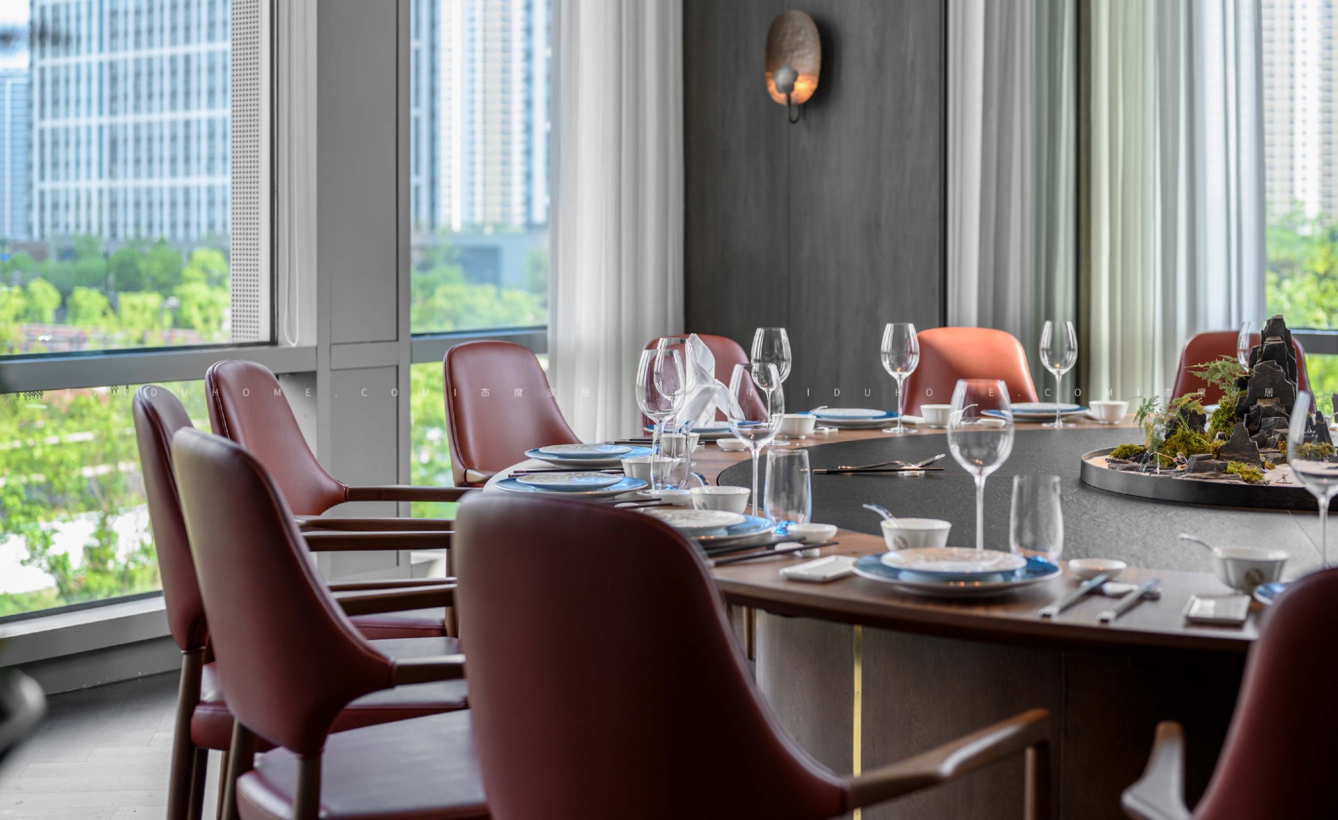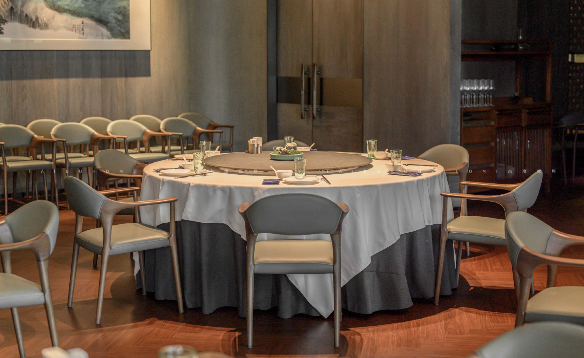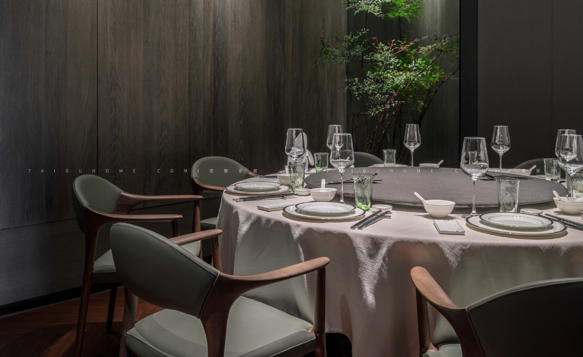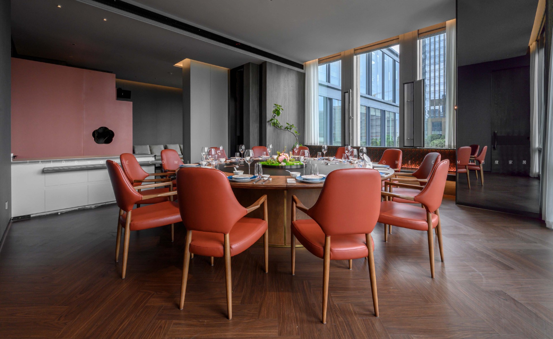 東小鲜共有小中大包厢共19个,每个包厢里都配备不同的会客休憩区,设计师赋予空间以优雅、娴静、自然的舒适感。
