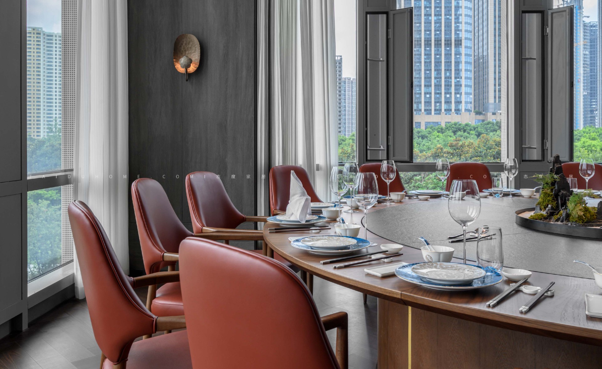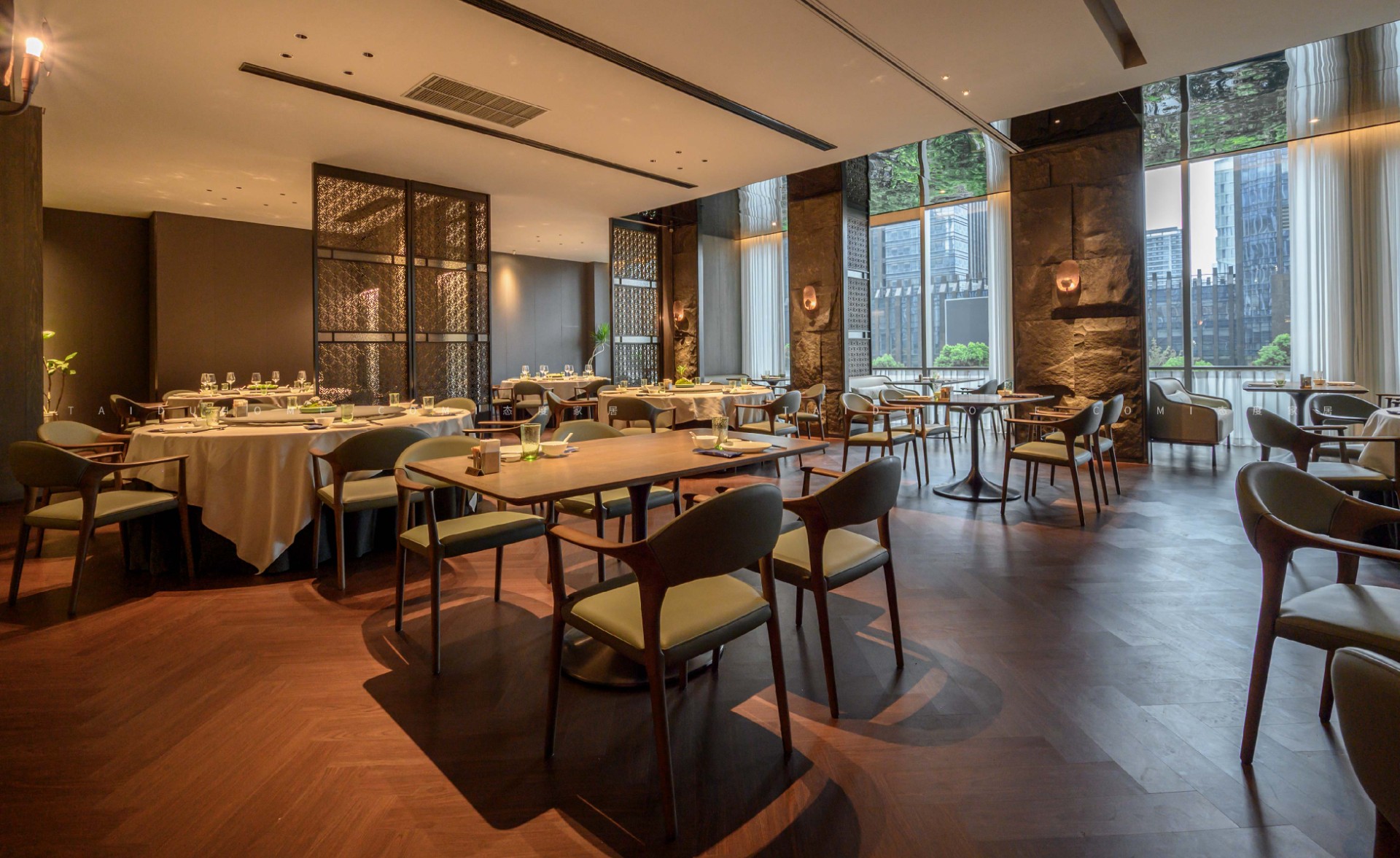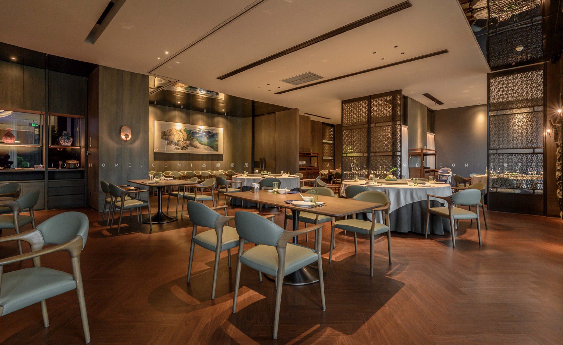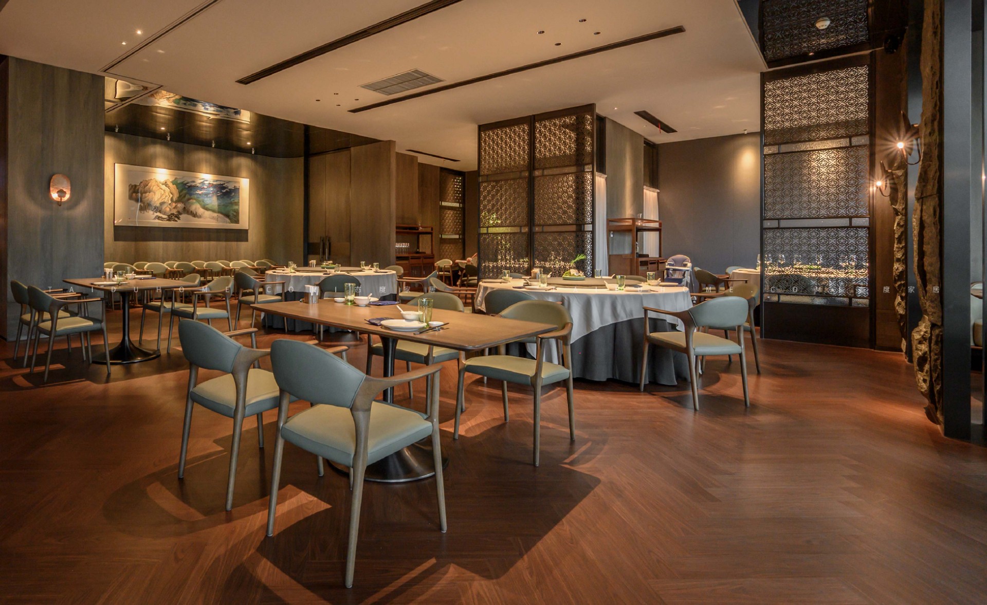 Dongxiaoxian has a total of 19 small, medium, and large private rooms, each equipped with a different reception and rest area. The designer endows the space with an elegant, tranquil, and natural sense of comfort.