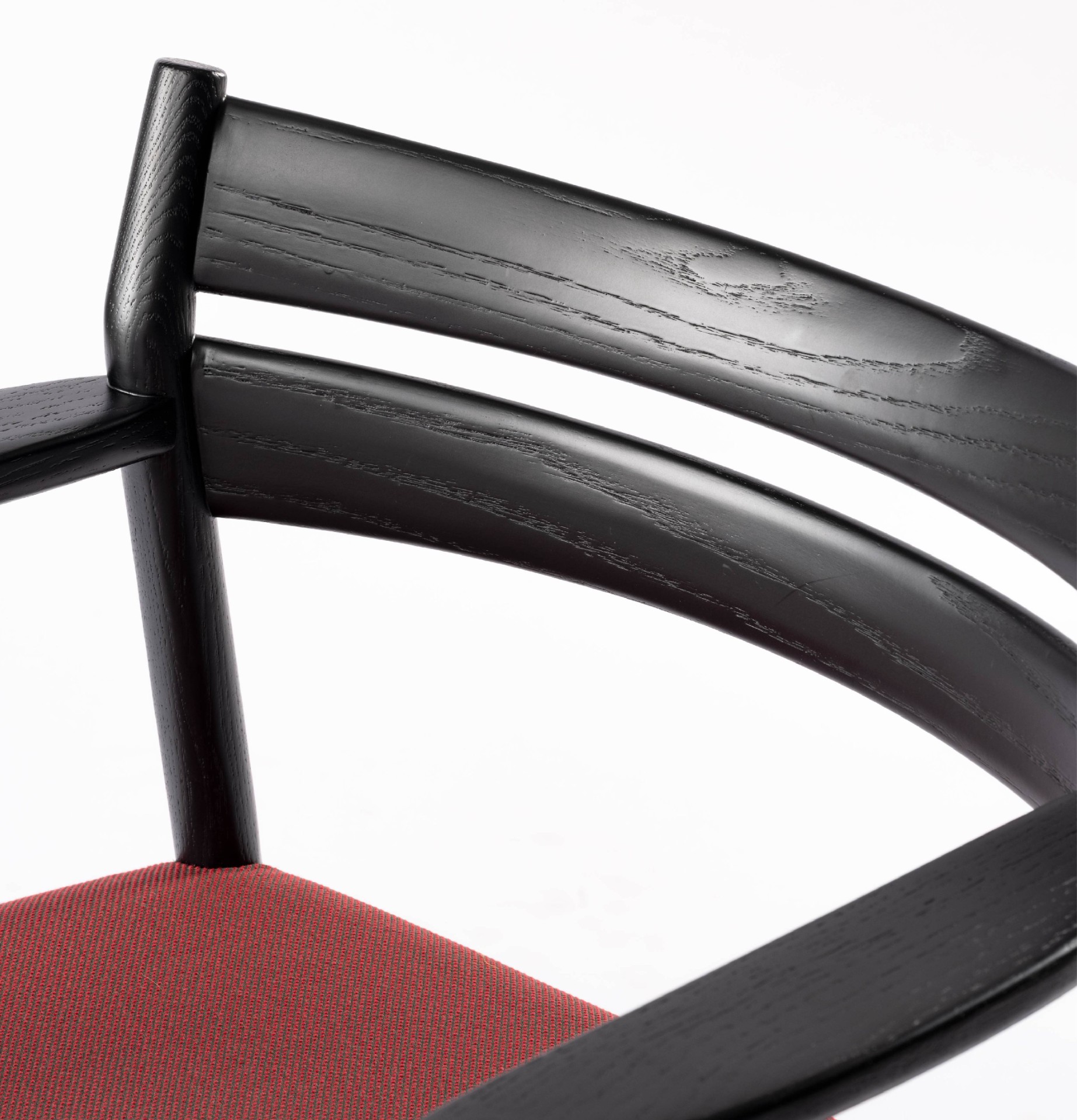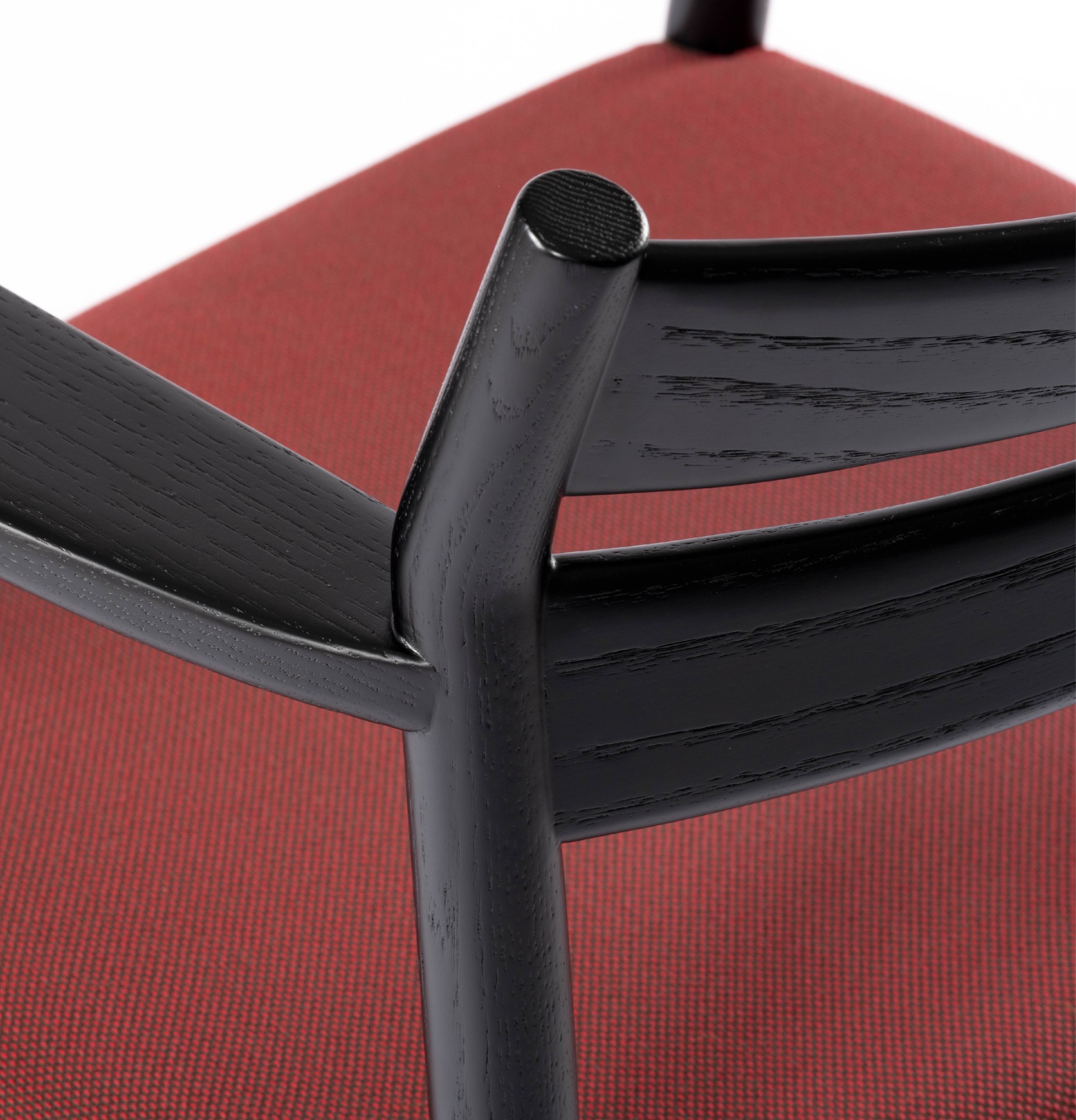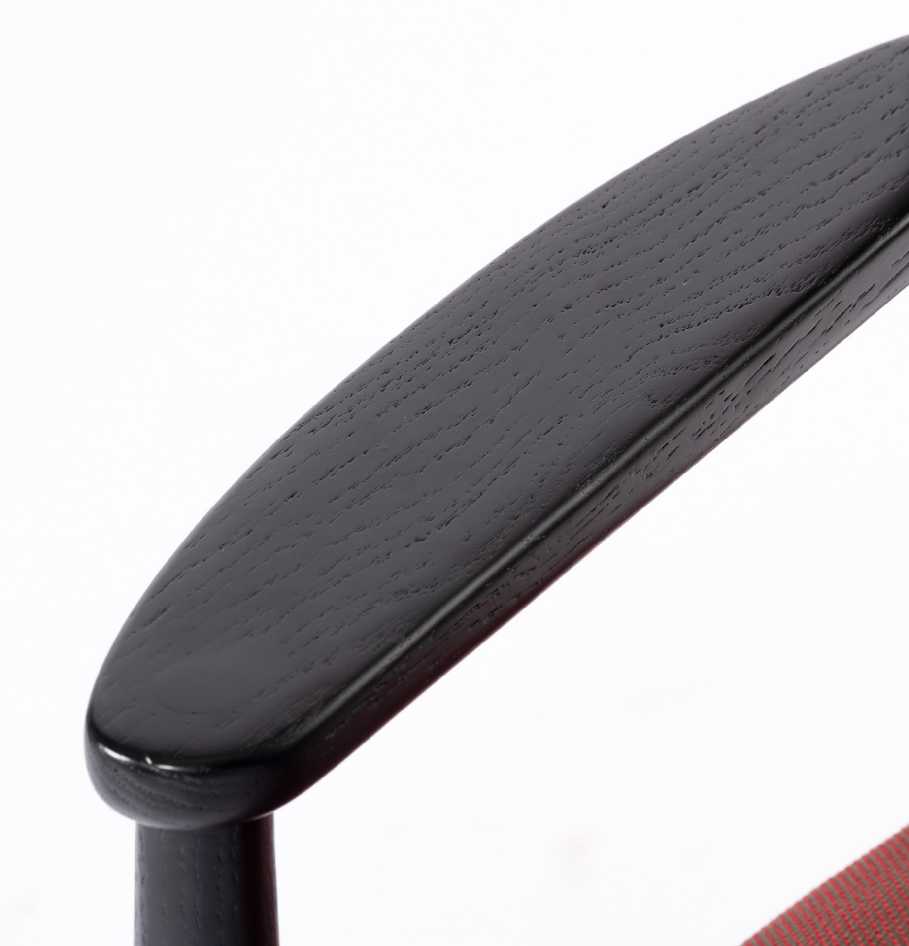 产品介绍 | Product Introduction波澜不兴心自静,宁静致远悟无忧。优雅设计和卓越舒适度的完美结合,是永不过时的常青款,耐用稳定,在任何场所中都可灵活适应。这款倌扶手餐椅由黄鸡翅木制成,红与黑的搭配,散发出低调优雅的气息The perfect combination of elegant design and exceptional comfort creates a timeless classic that is durable and stable, adaptable to any setting. This Guan armchair is crafted from yellow chicken wing wood, with a red and black combination that exudes a subtle and elegant charm.