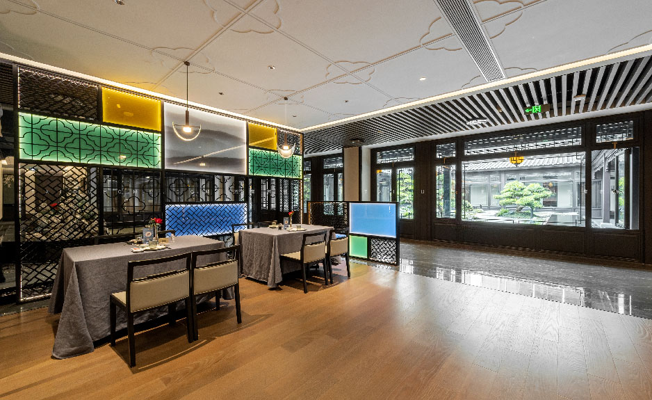 这次定海区的新店选择了苏式庭院风格,装修分为内檐装修和外檐装修,都是技术与艺术的结合,具有实用和观赏的双重功能。