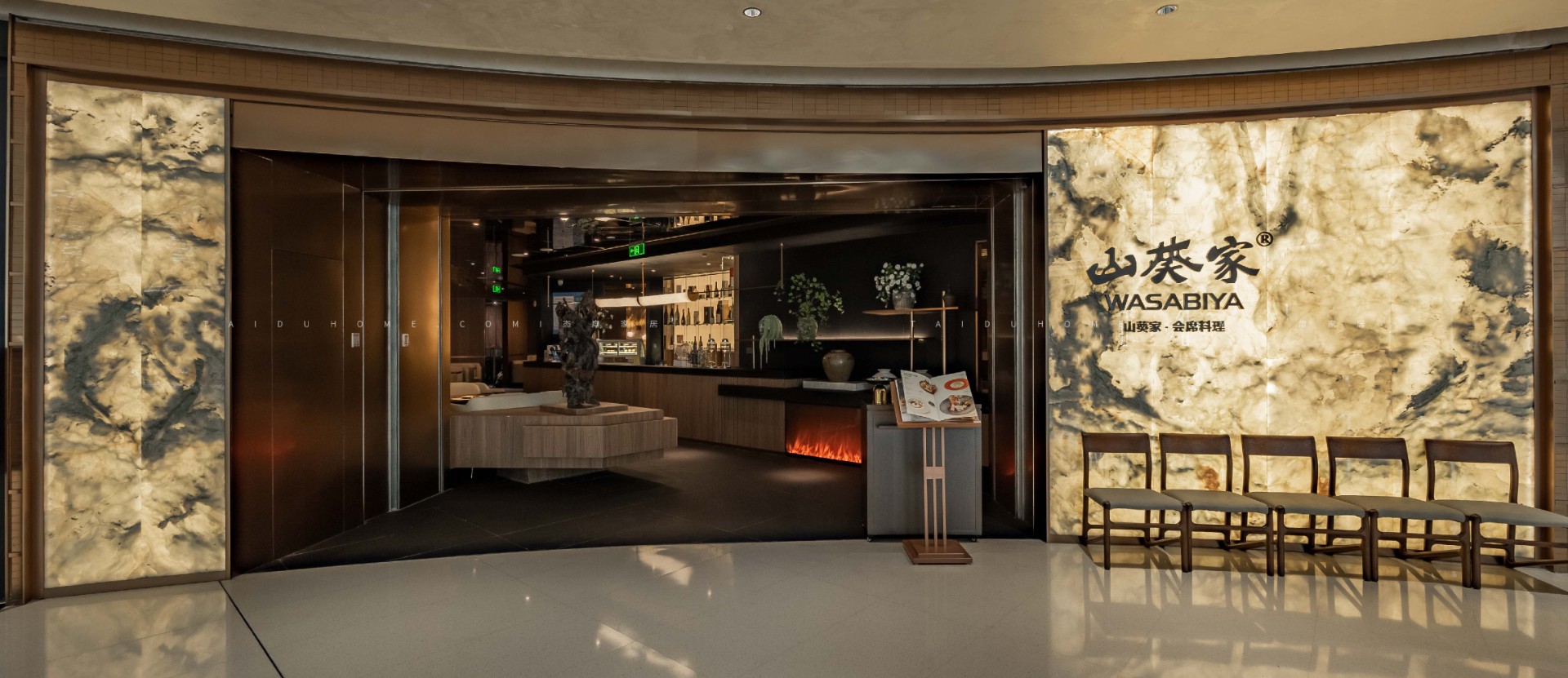 山葵家是家非常专业的日本料理餐厅,杭州的日本料理头号品牌,山葵家核心传达日料“为食之道”的理念,设计灵活运用新式材料和传统和式元素融入环境。