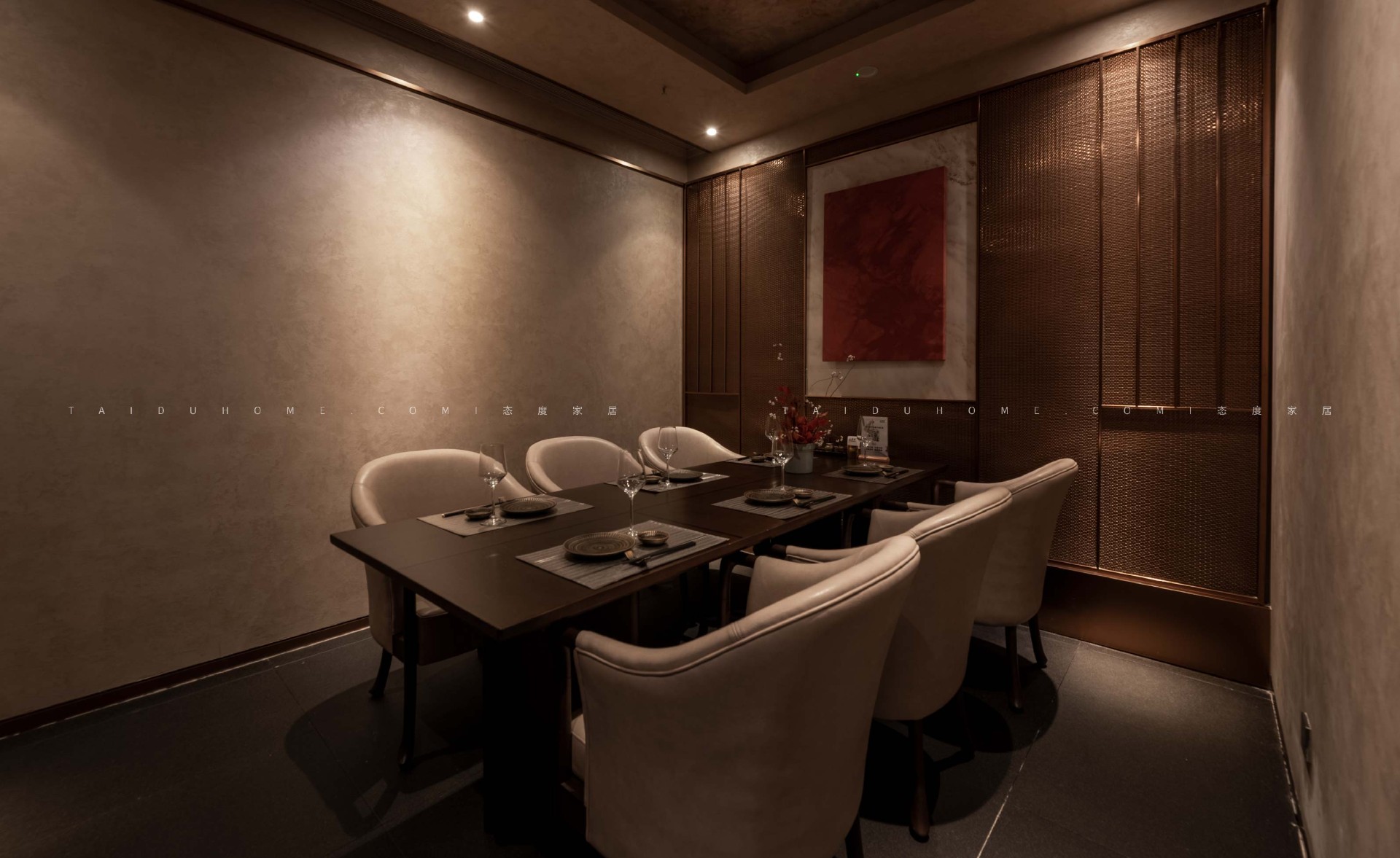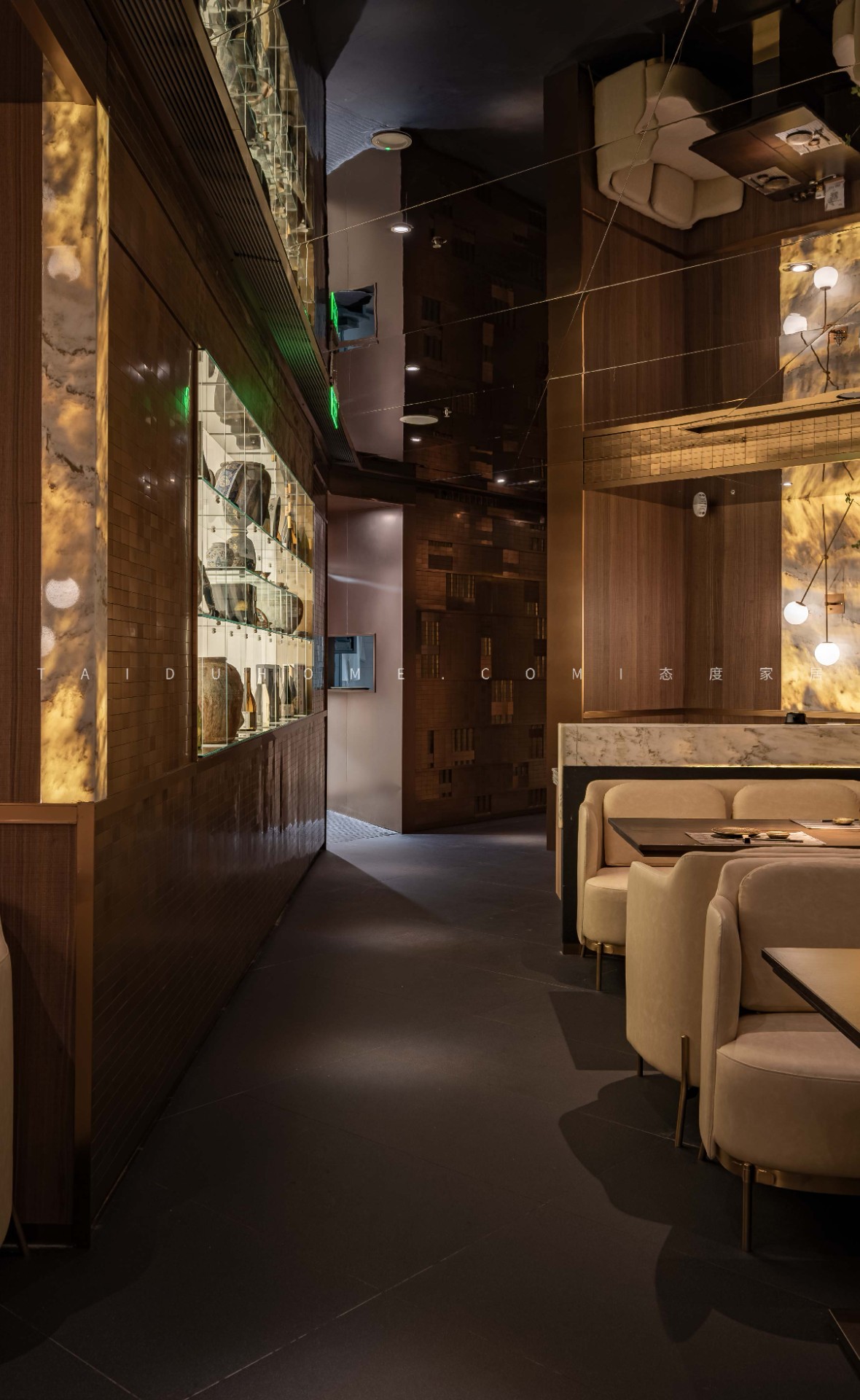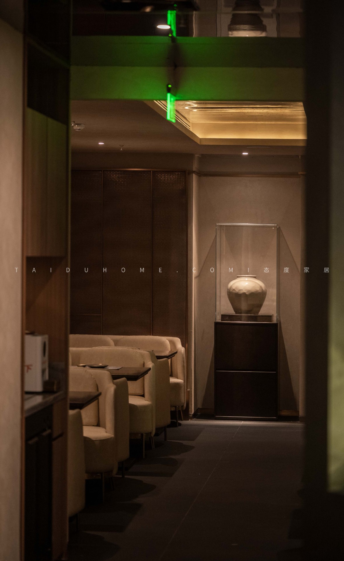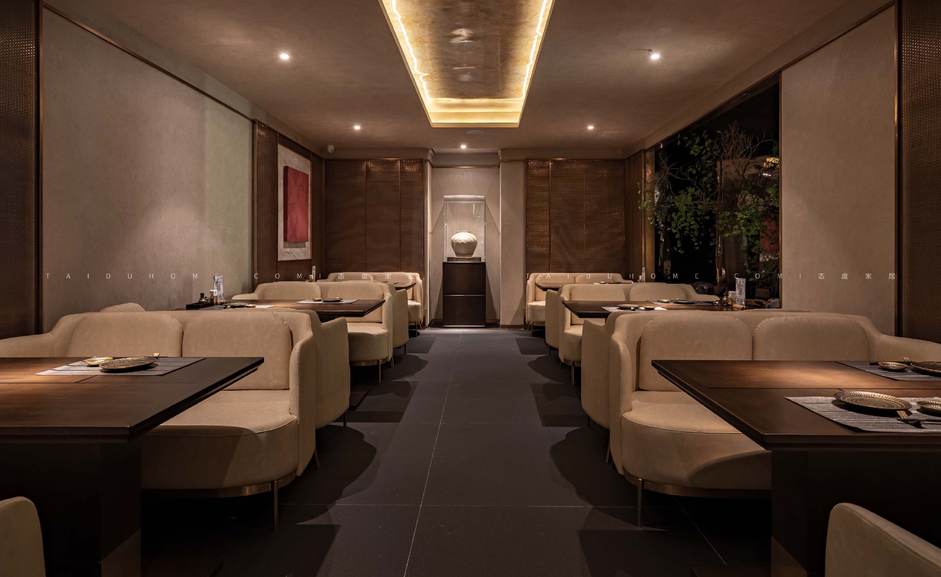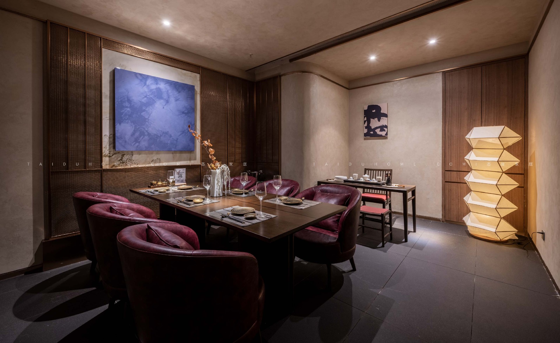 The Shankui Home, with the theme of "museum concept", gives people a sense of mystery, and the soft lighting reflects on the wall, creating a deep and peaceful atmosphere. Integrate artworks with dining atmosphere. Highlighting the creation of an immersive artistic atmosphere themed restaurant, subtly integrating cuisine, culture, and design to create a unique spatial experience.