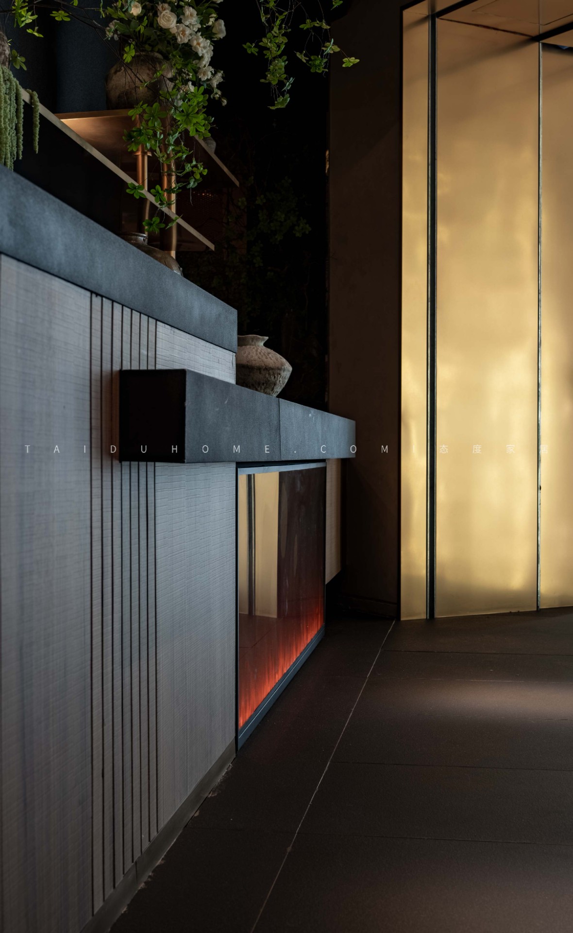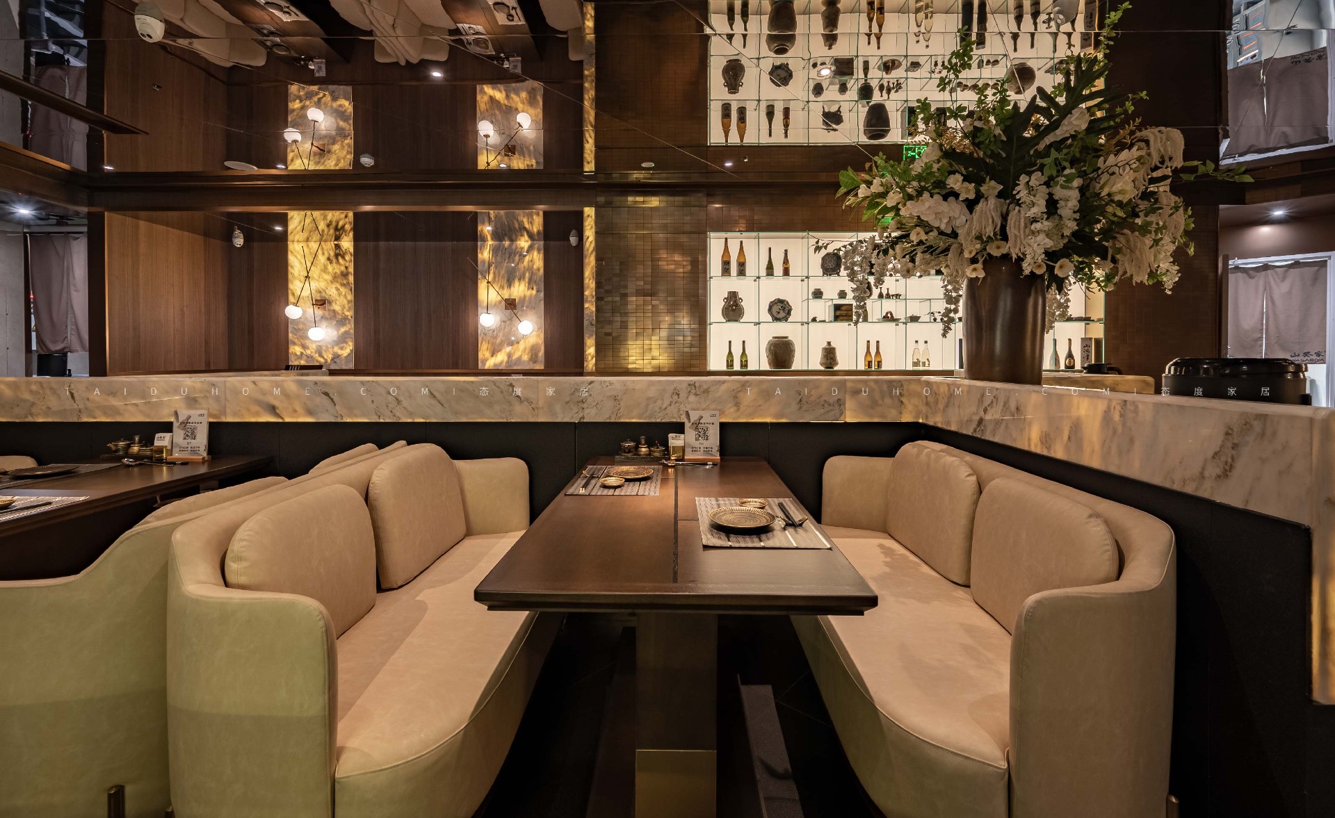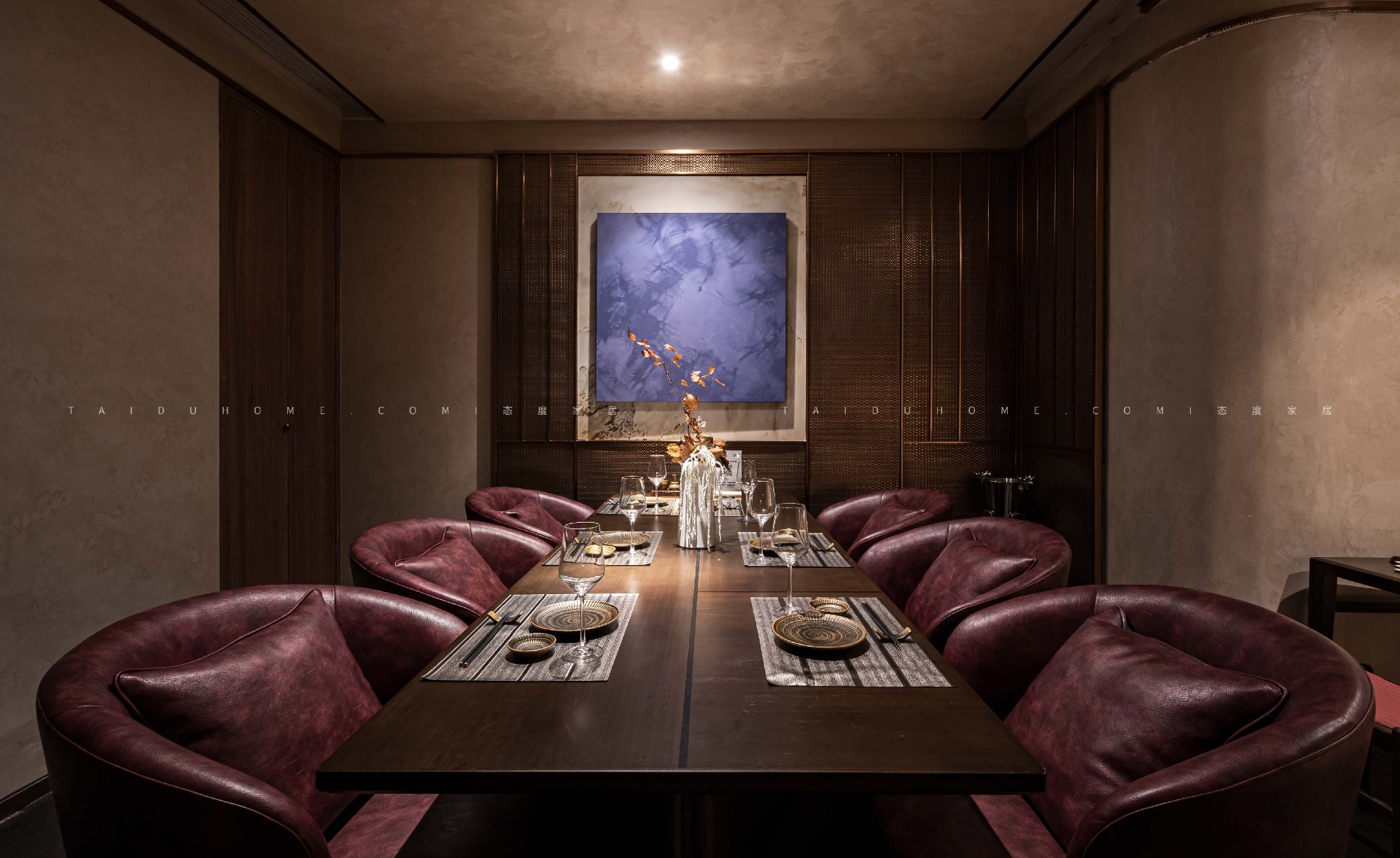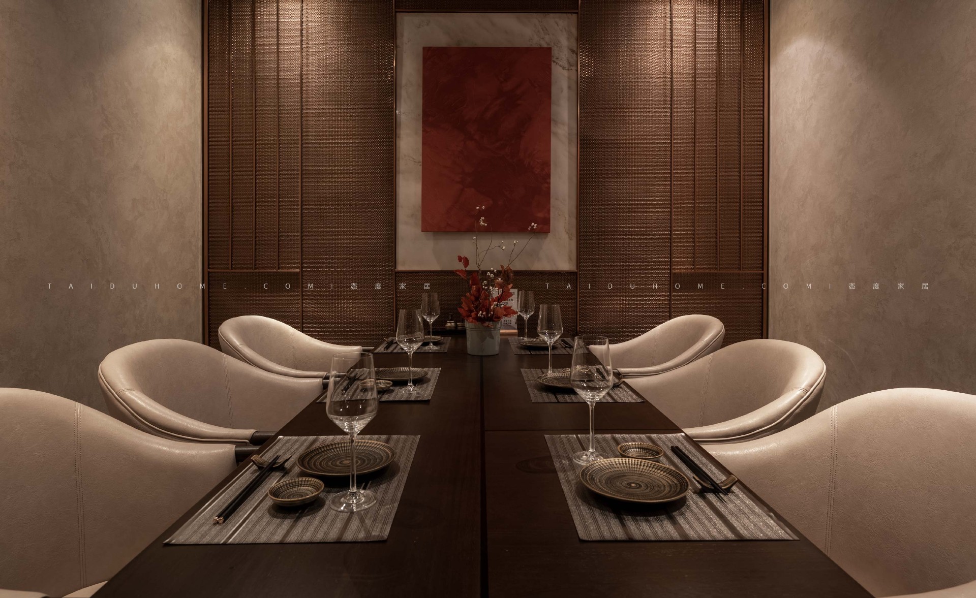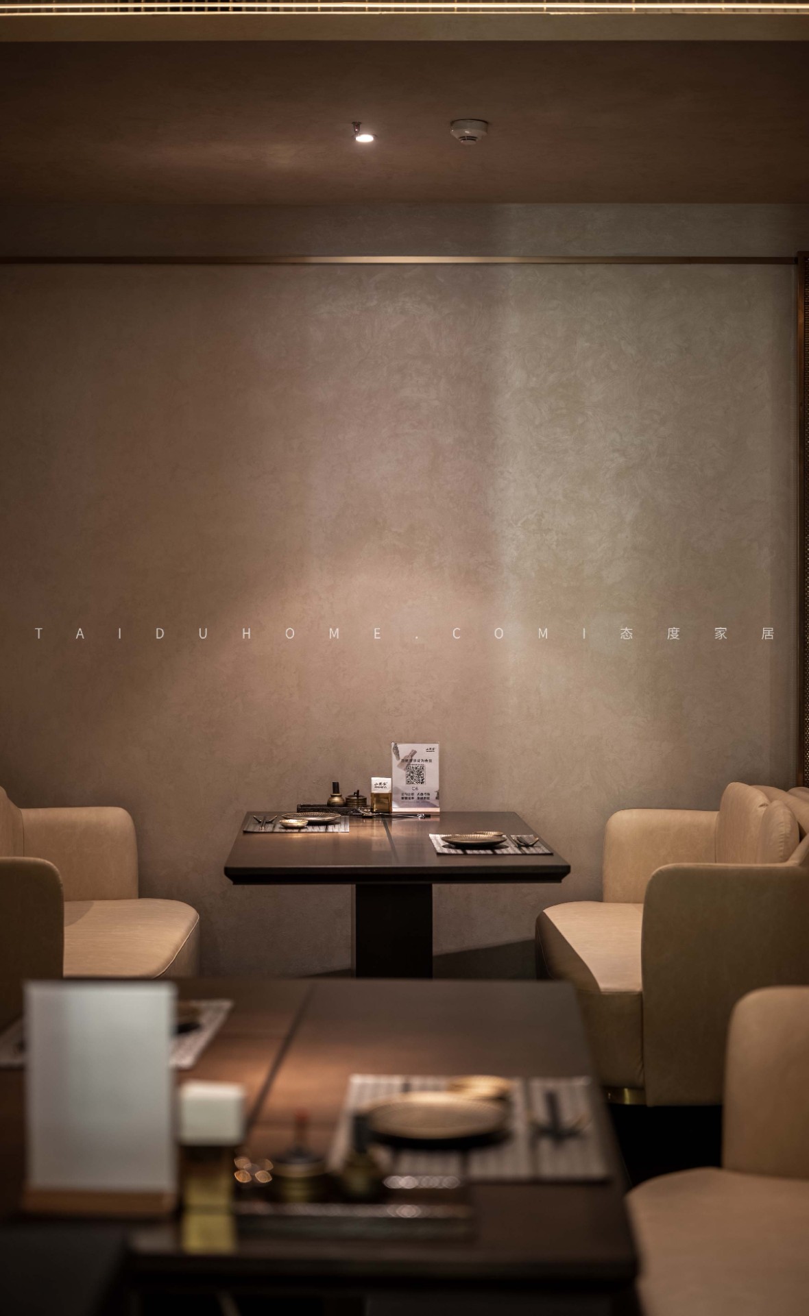 The Shankui Home, with the theme of "museum concept", gives people a sense of mystery, and the soft lighting reflects on the wall, creating a deep and peaceful atmosphere. Integrate artworks with dining atmosphere. Highlighting the creation of an immersive artistic atmosphere themed restaurant, subtly integrating cuisine, culture, and design to create a unique spatial experience.
