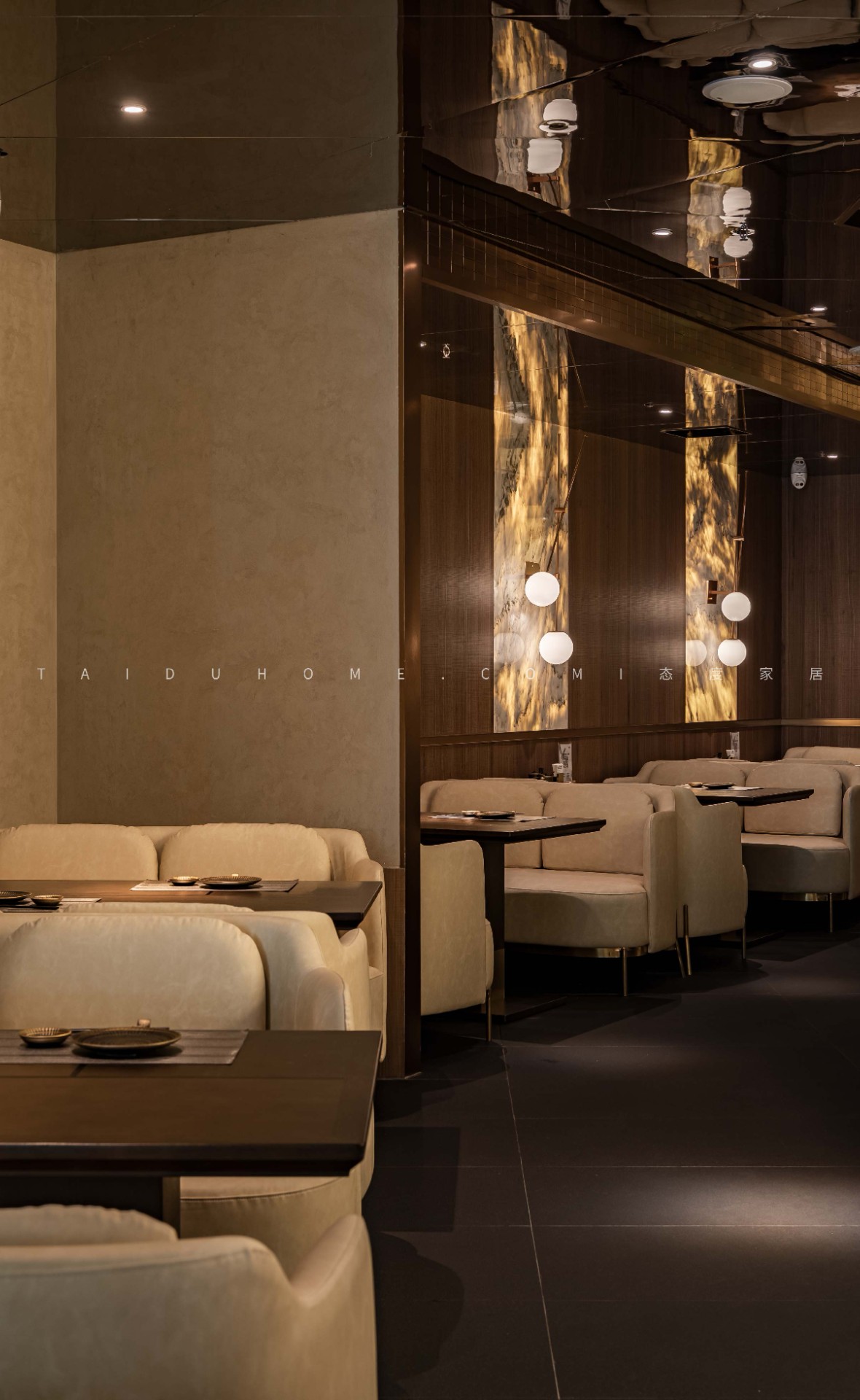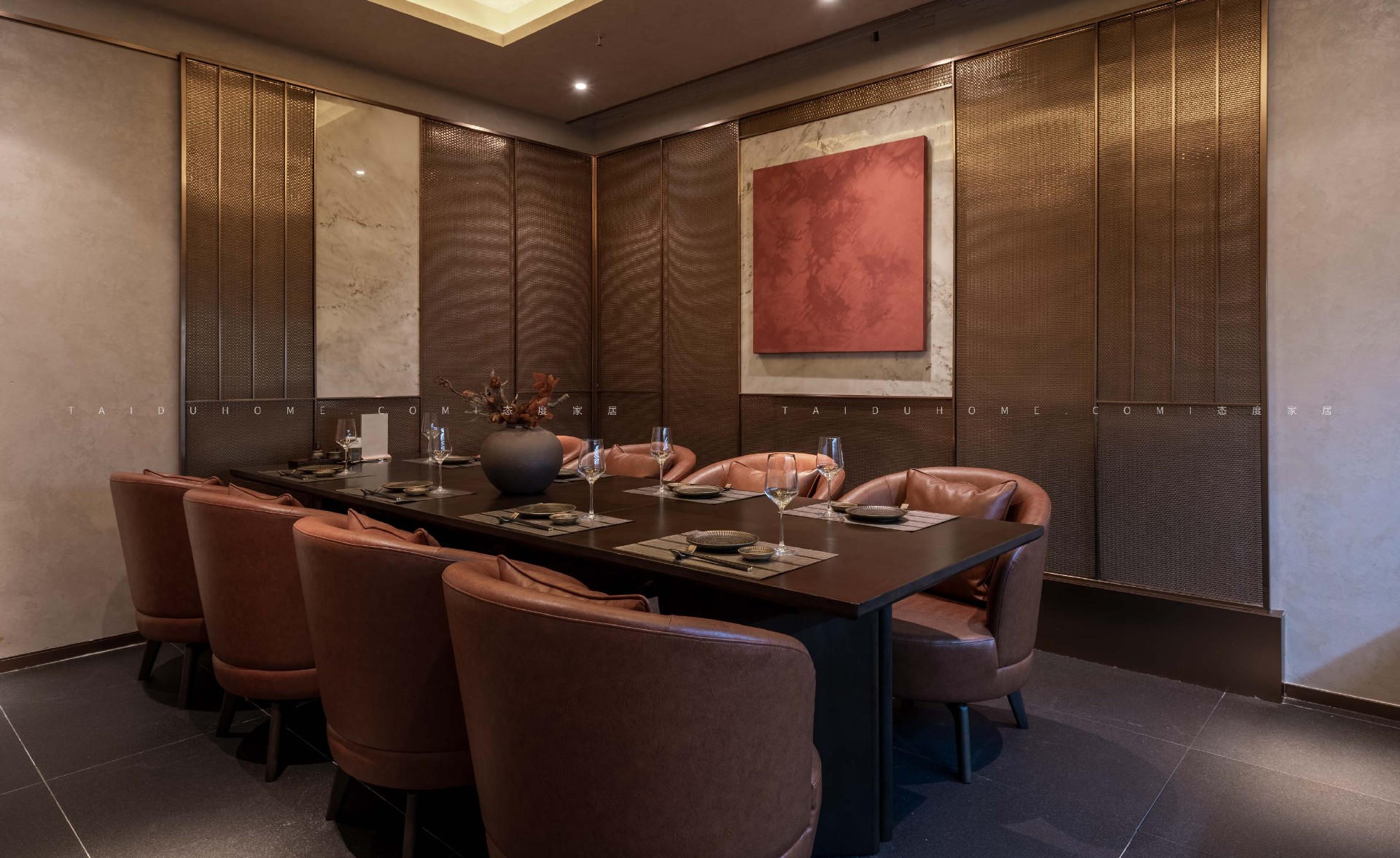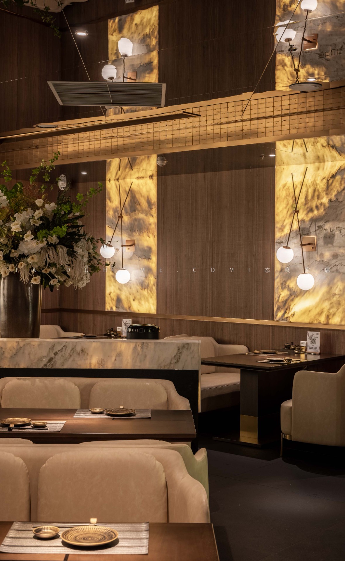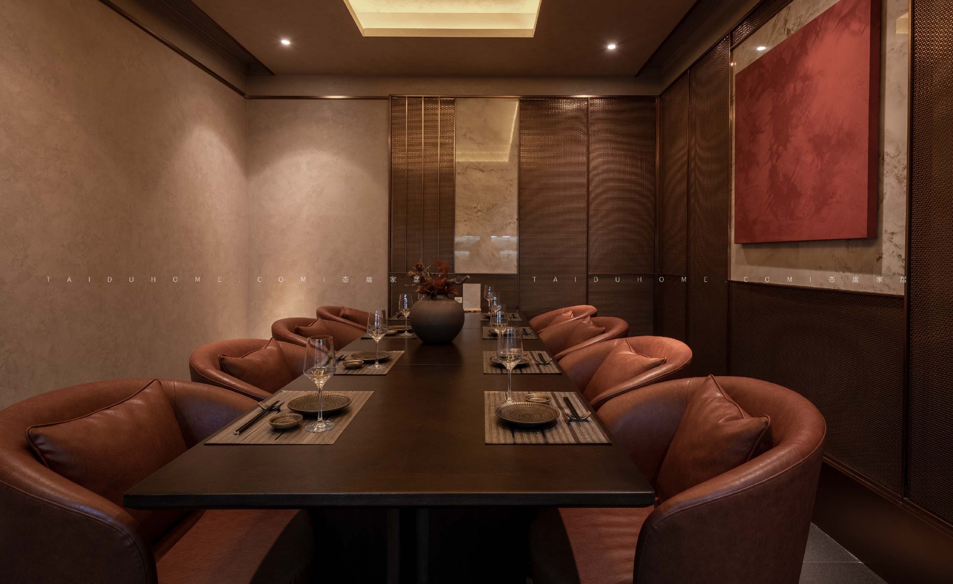 The Shankui Home, with the theme of "museum concept", gives people a sense of mystery, and the soft lighting reflects on the wall, creating a deep and peaceful atmosphere. Integrate artworks with dining atmosphere. Highlighting the creation of an immersive artistic atmosphere themed restaurant, subtly integrating cuisine, culture, and design to create a unique spatial experience.