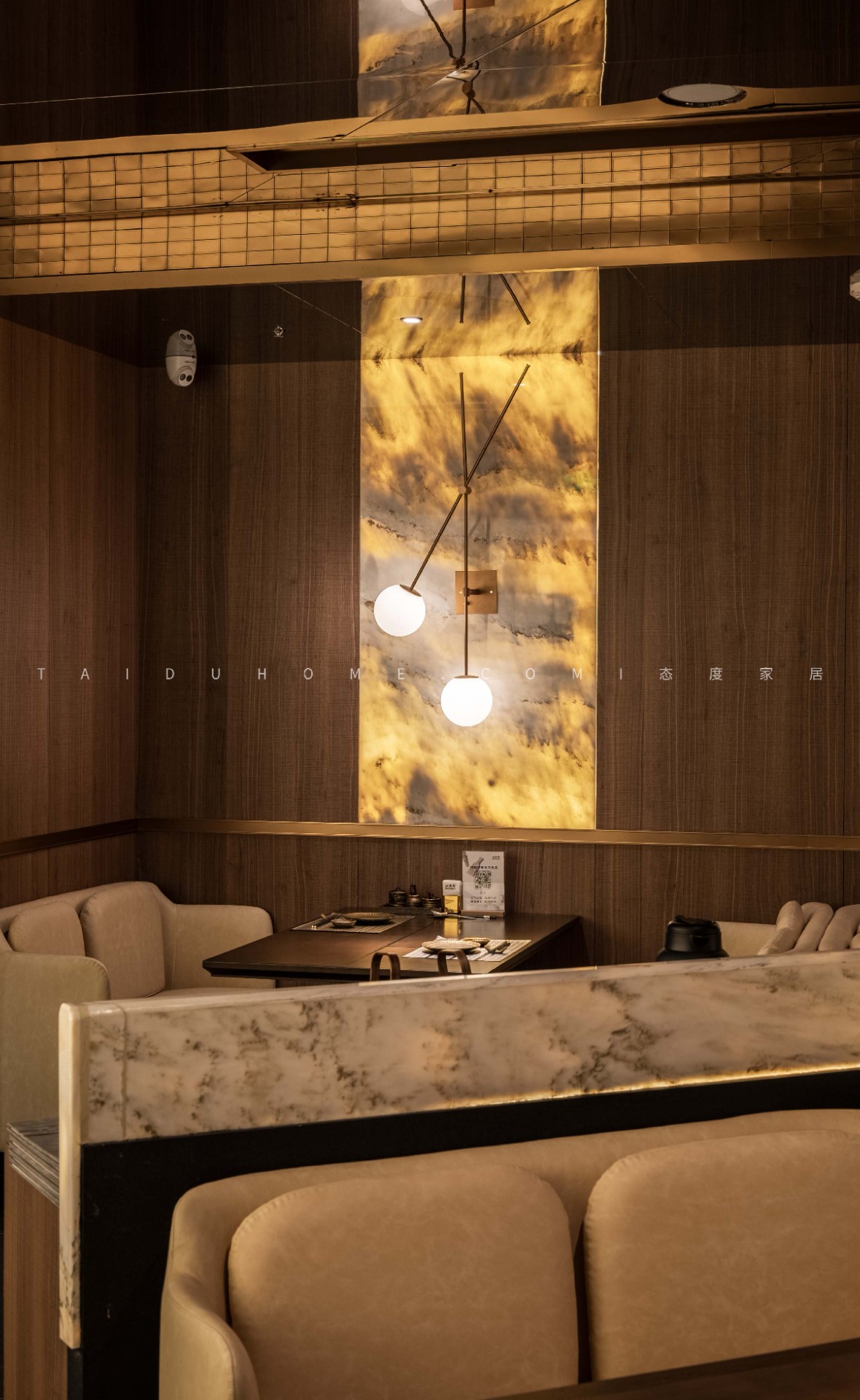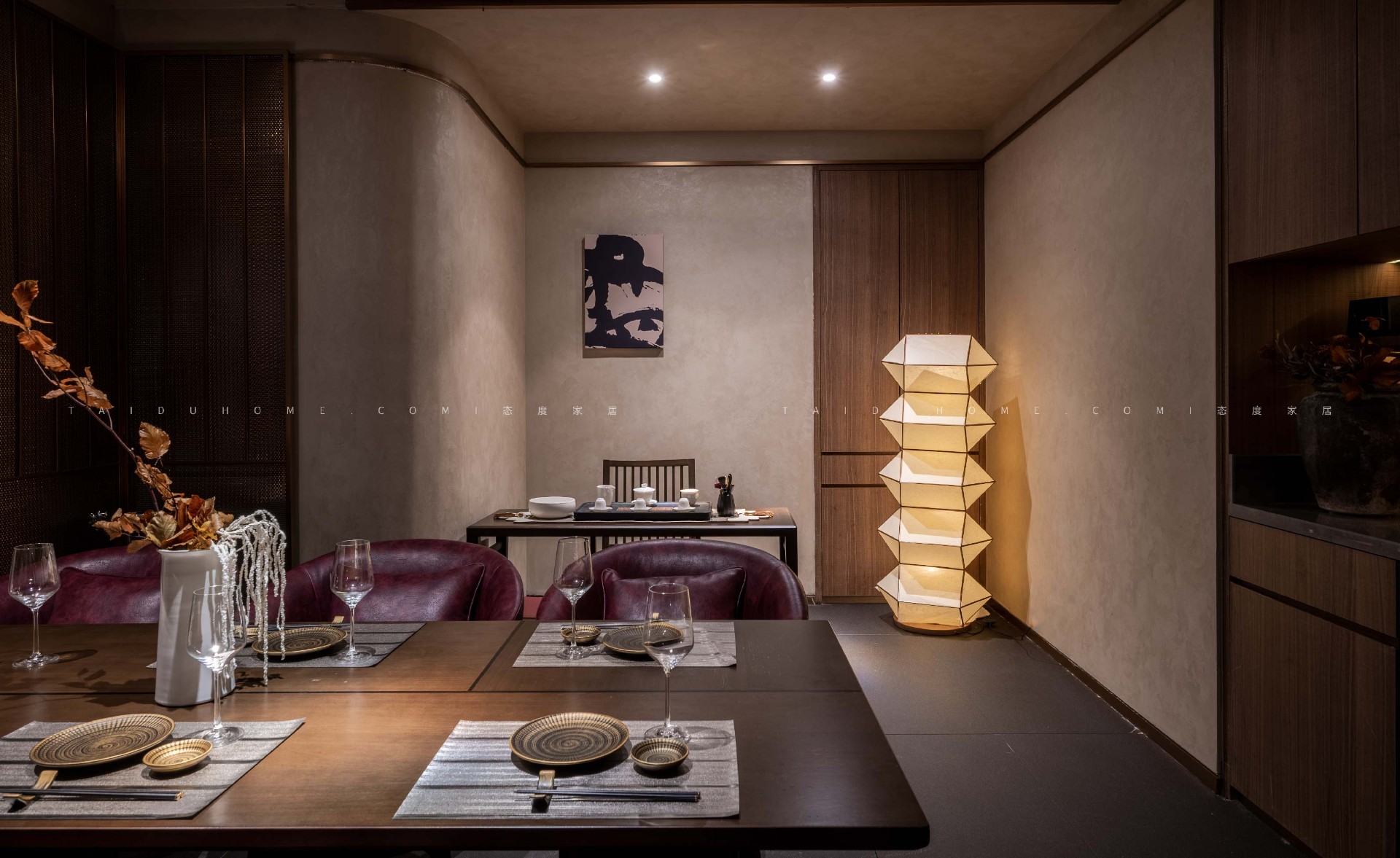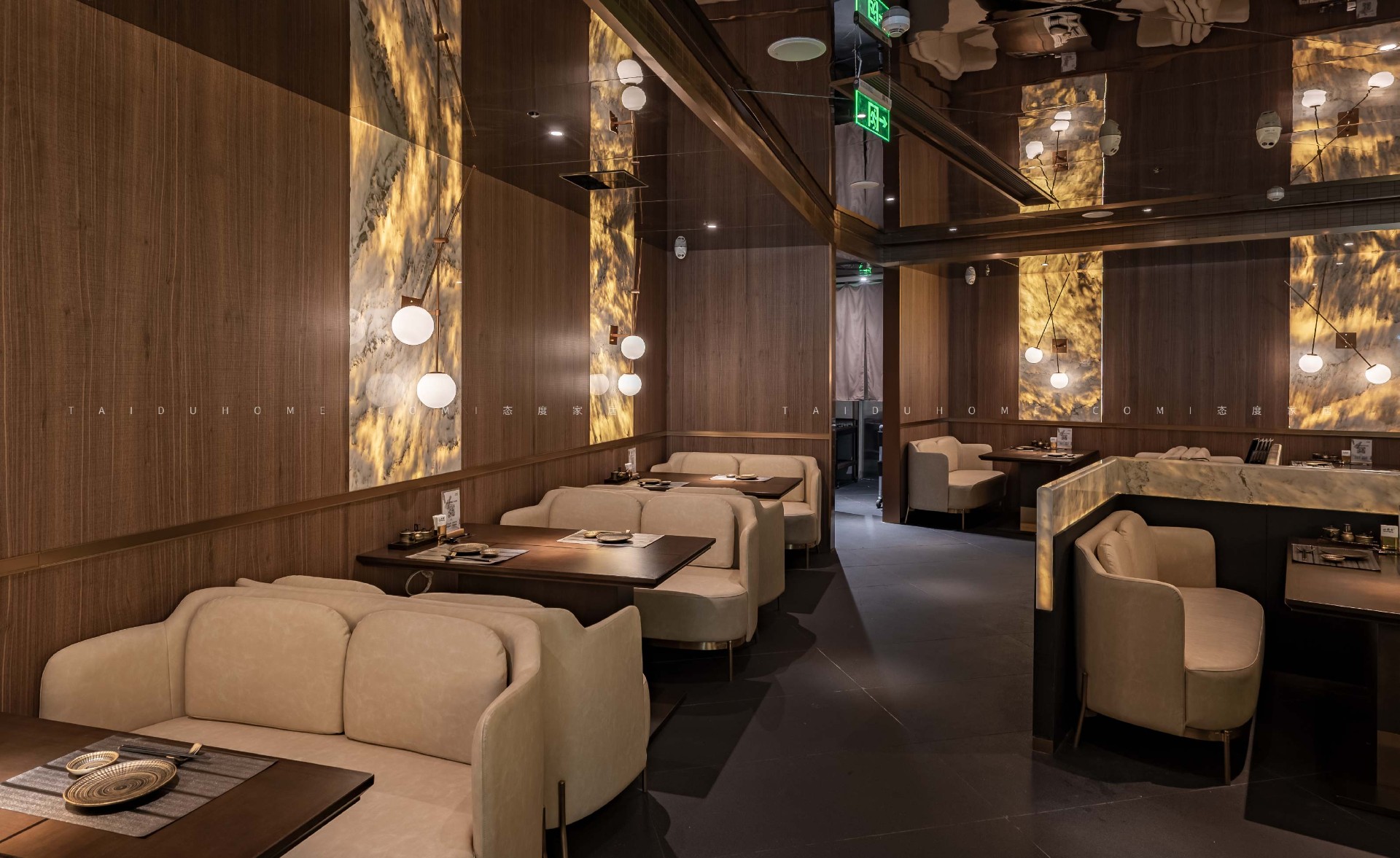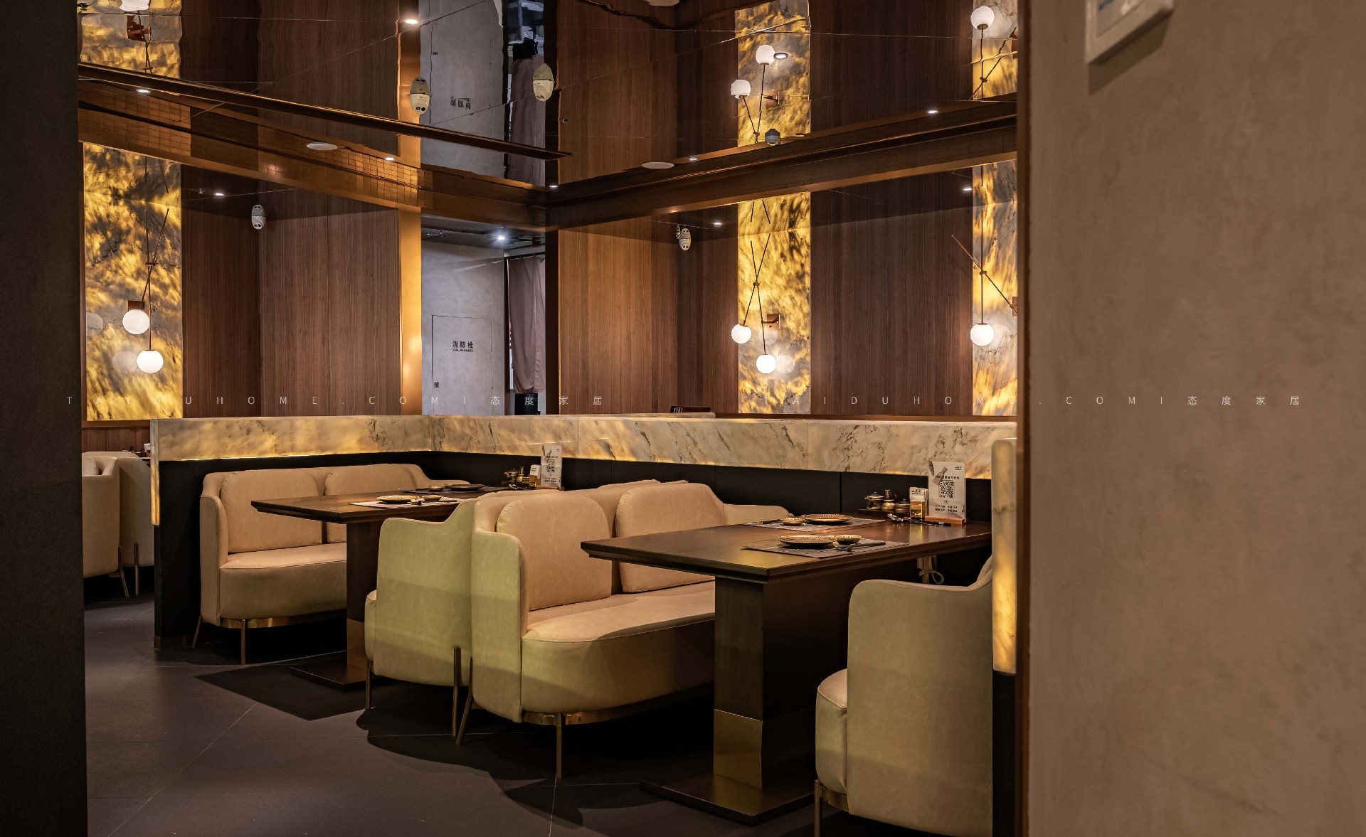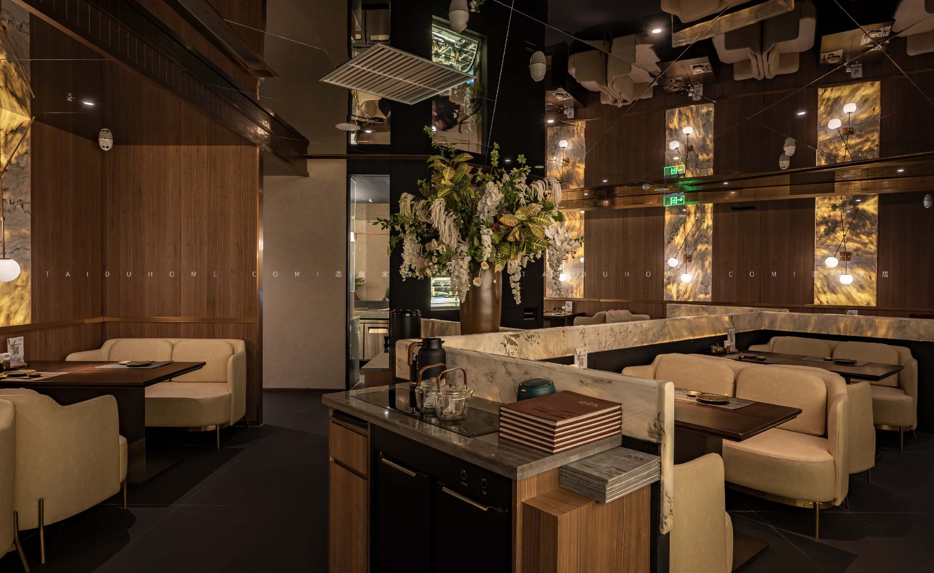 The Shankui Home, with the theme of "museum concept", gives people a sense of mystery, and the soft lighting reflects on the wall, creating a deep and peaceful atmosphere. Integrate artworks with dining atmosphere. Highlighting the creation of an immersive artistic atmosphere themed restaurant, subtly integrating cuisine, culture, and design to create a unique spatial experience.