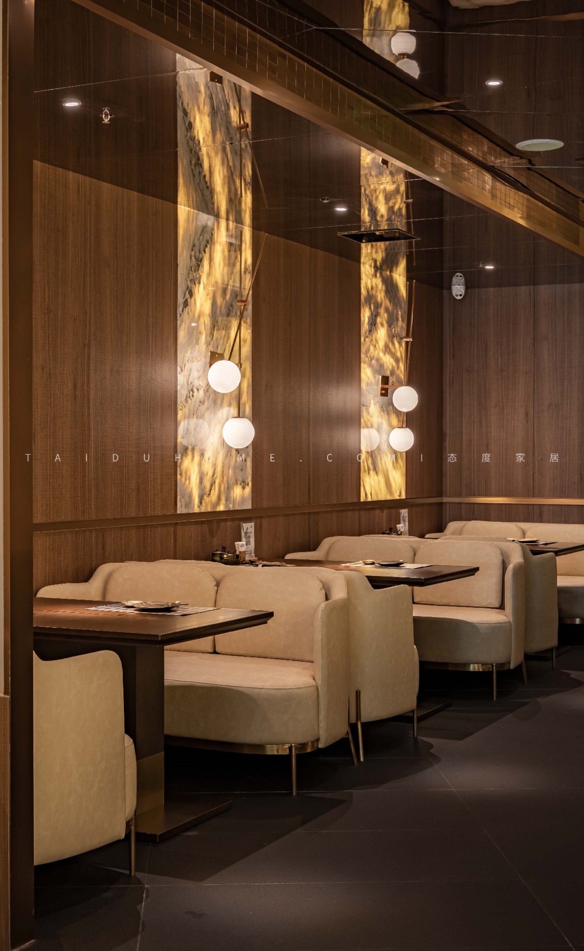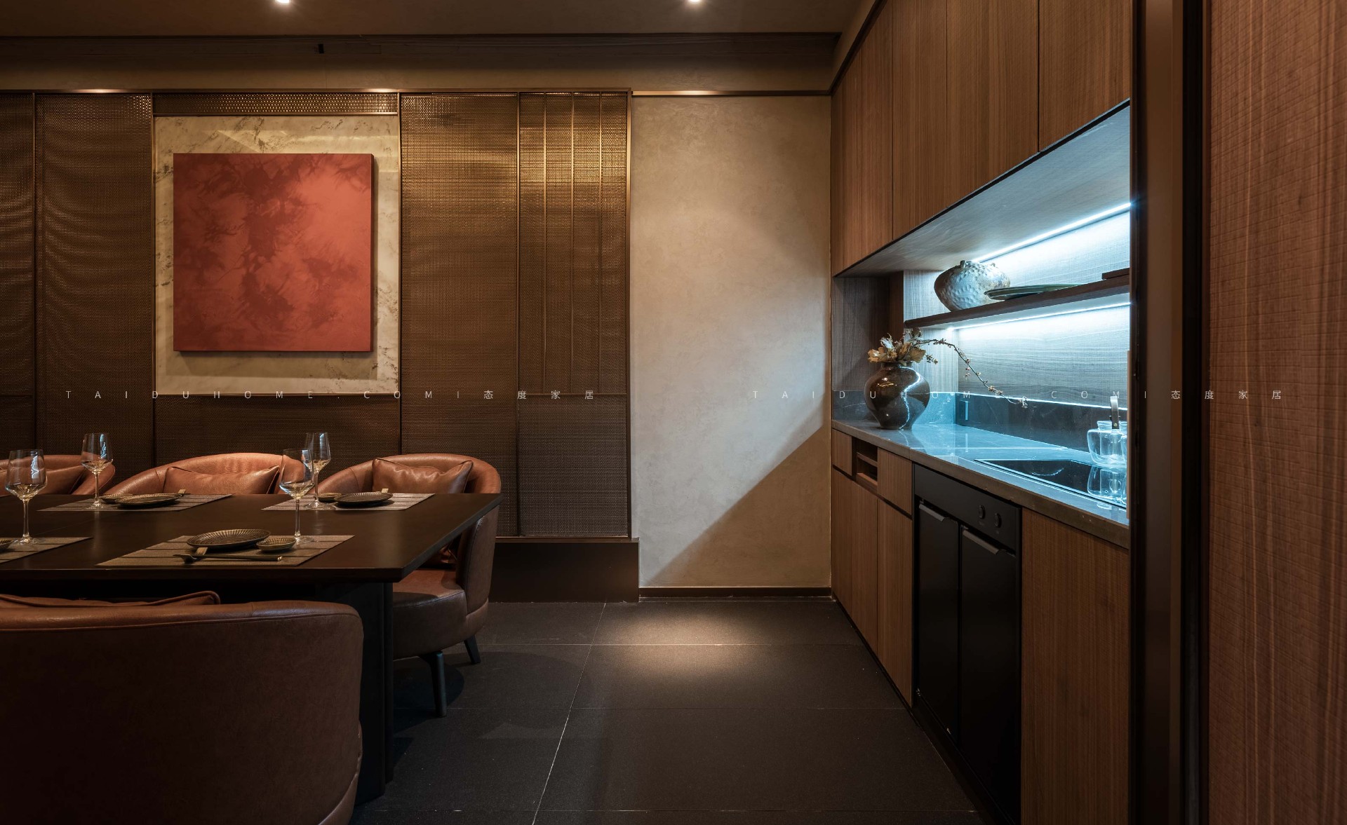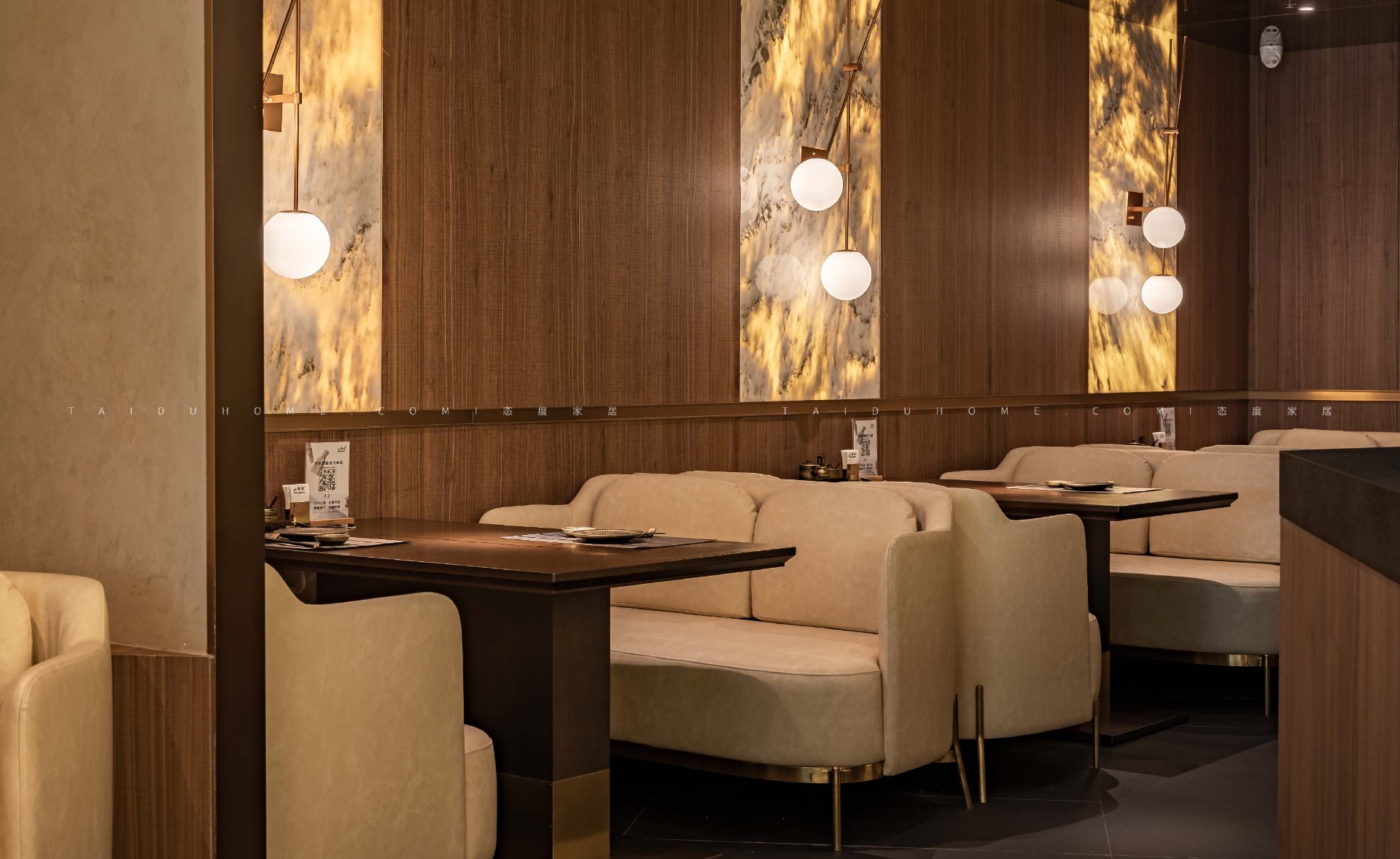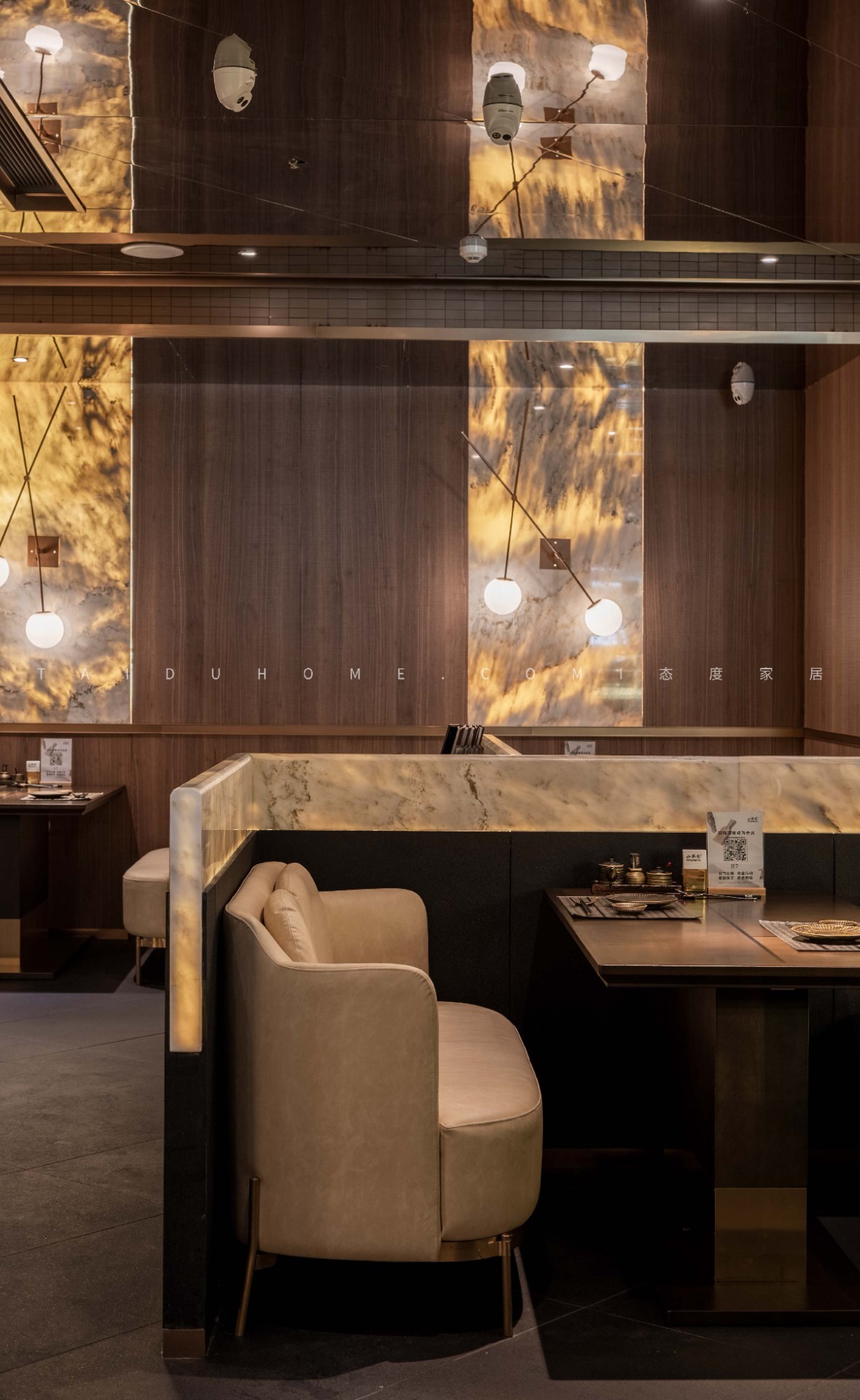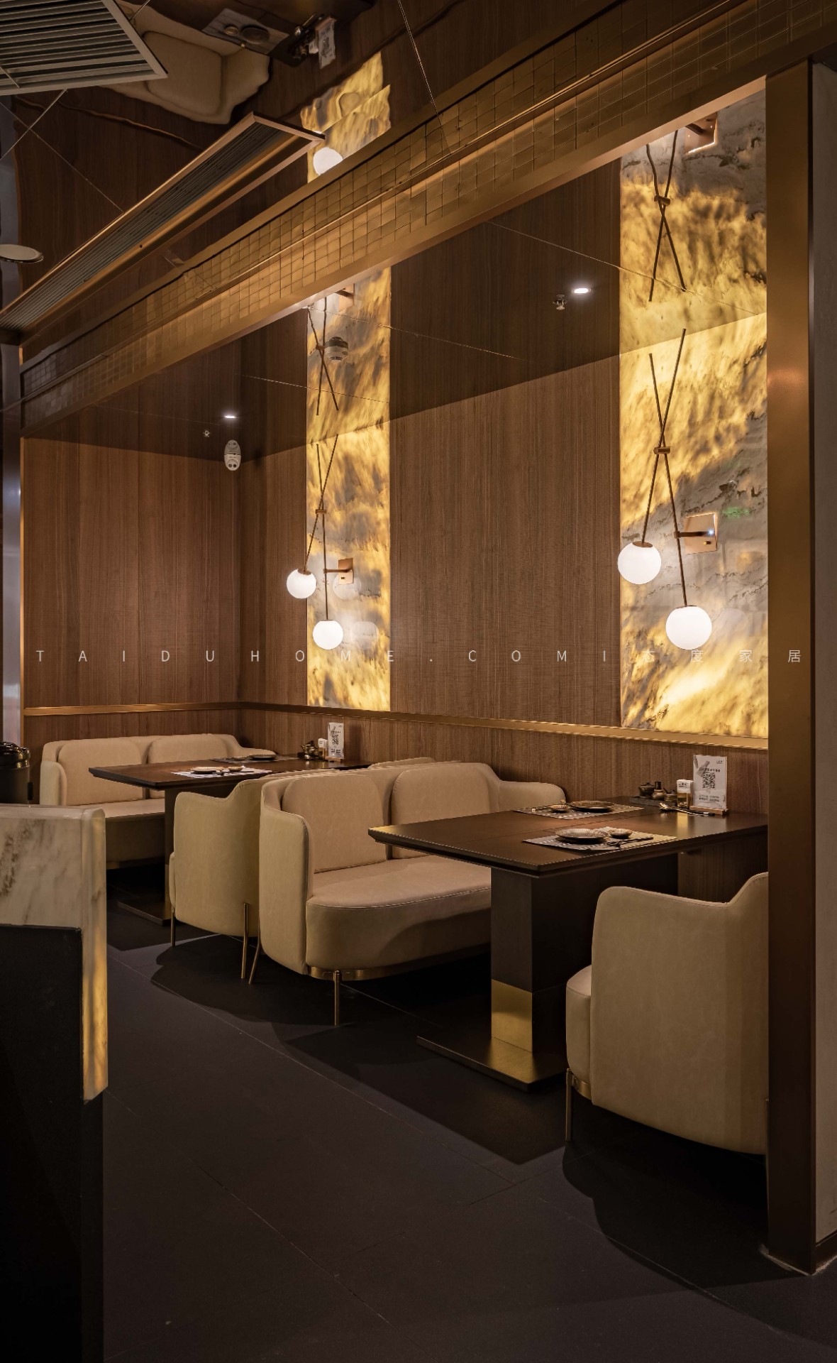 The Shankui Home, with the theme of "museum concept", gives people a sense of mystery, and the soft lighting reflects on the wall, creating a deep and peaceful atmosphere. Integrate artworks with dining atmosphere. Highlighting the creation of an immersive artistic atmosphere themed restaurant, subtly integrating cuisine, culture, and design to create a unique spatial experience.