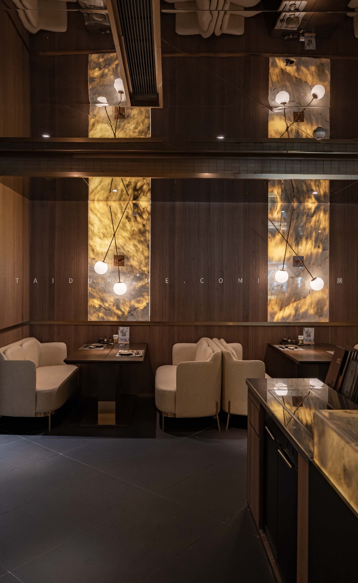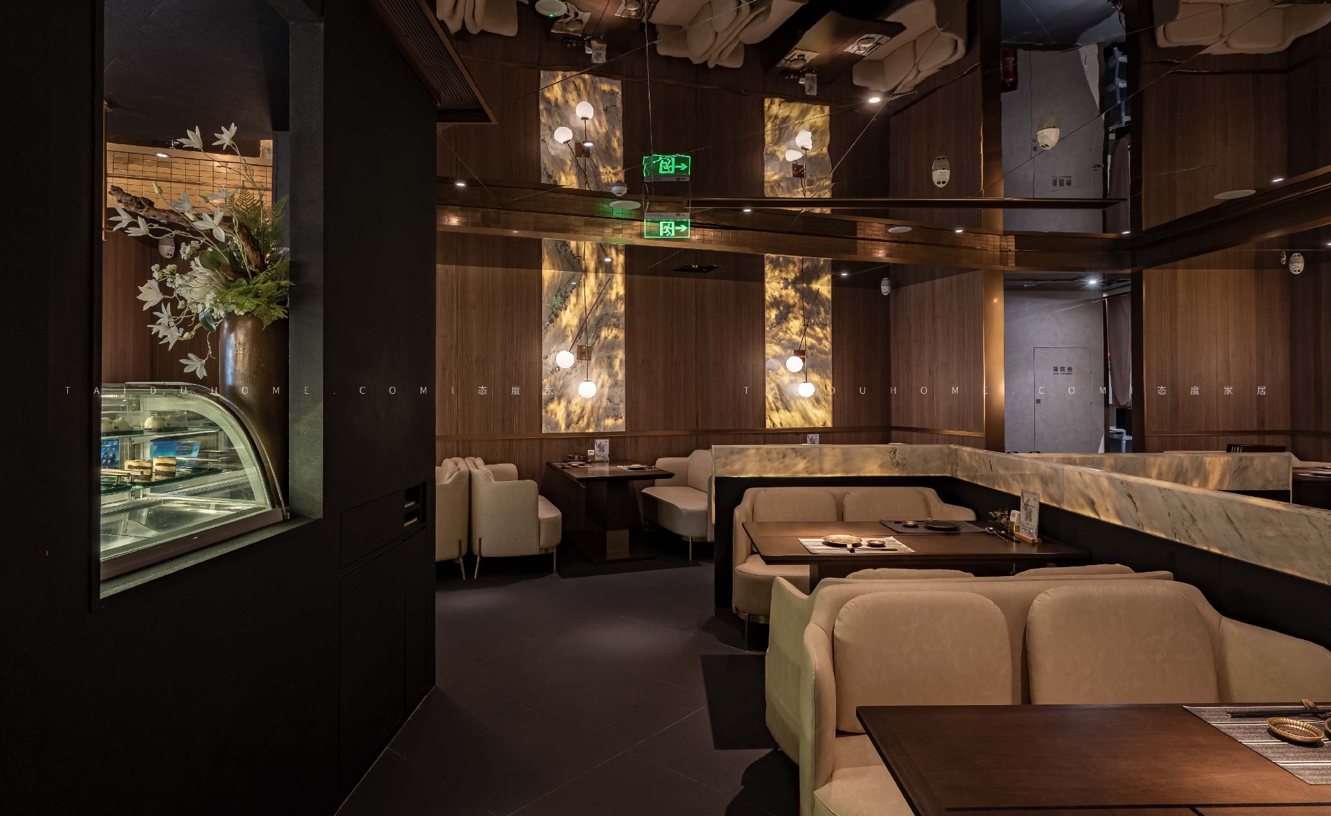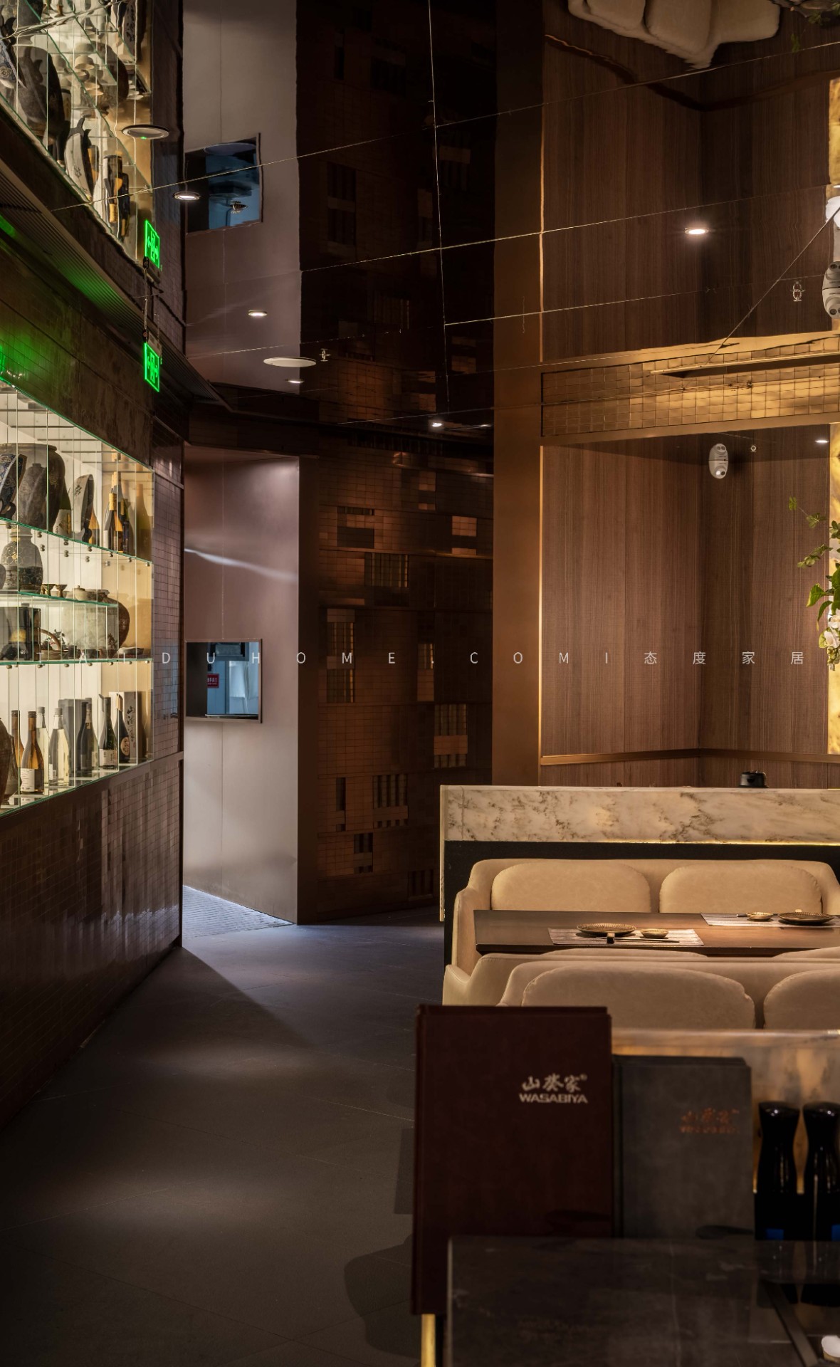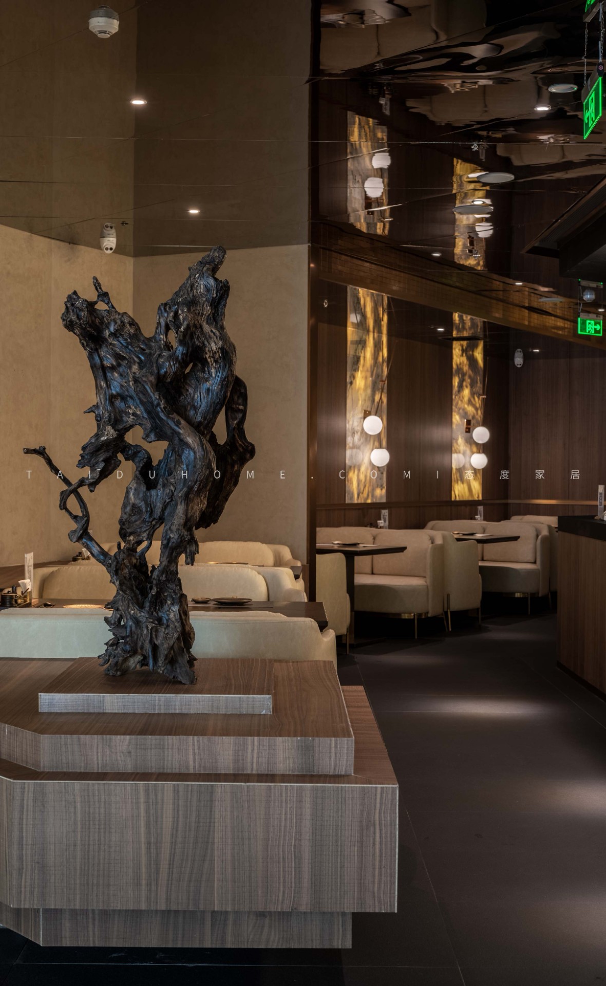 以“博物馆概念”为主题的山葵家给人一种神秘感。将艺术品与用餐氛围融合。突出沉浸式艺术氛围主题餐厅的营造,将美食、文化、设计微妙融合,形成独有的空间体验。